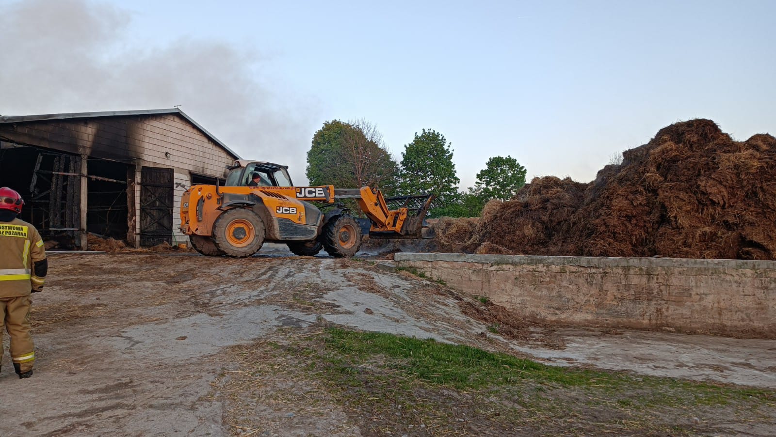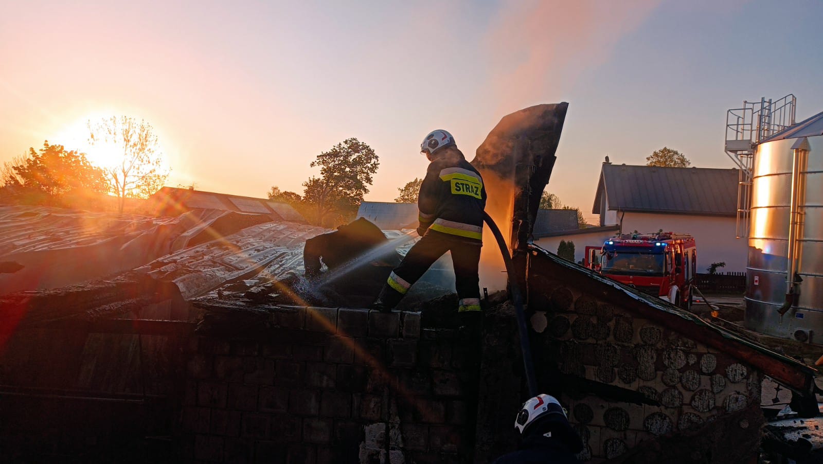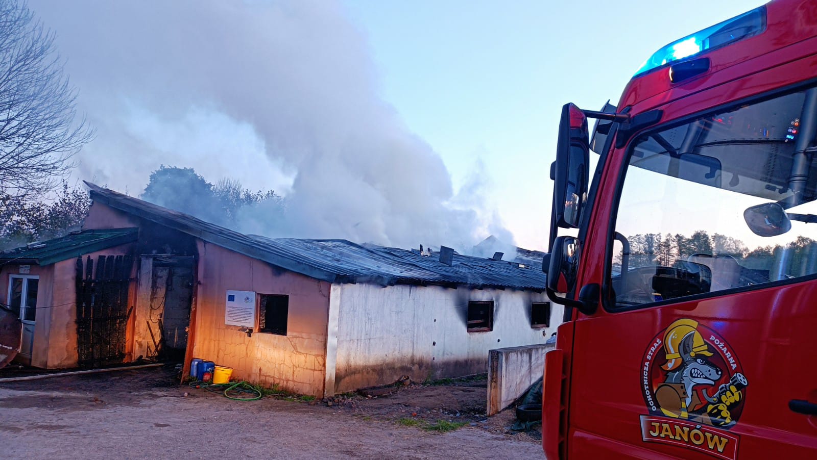 Duży pożar budynku inwentarskiego w miejscowości Kizielany, gmina Janów.