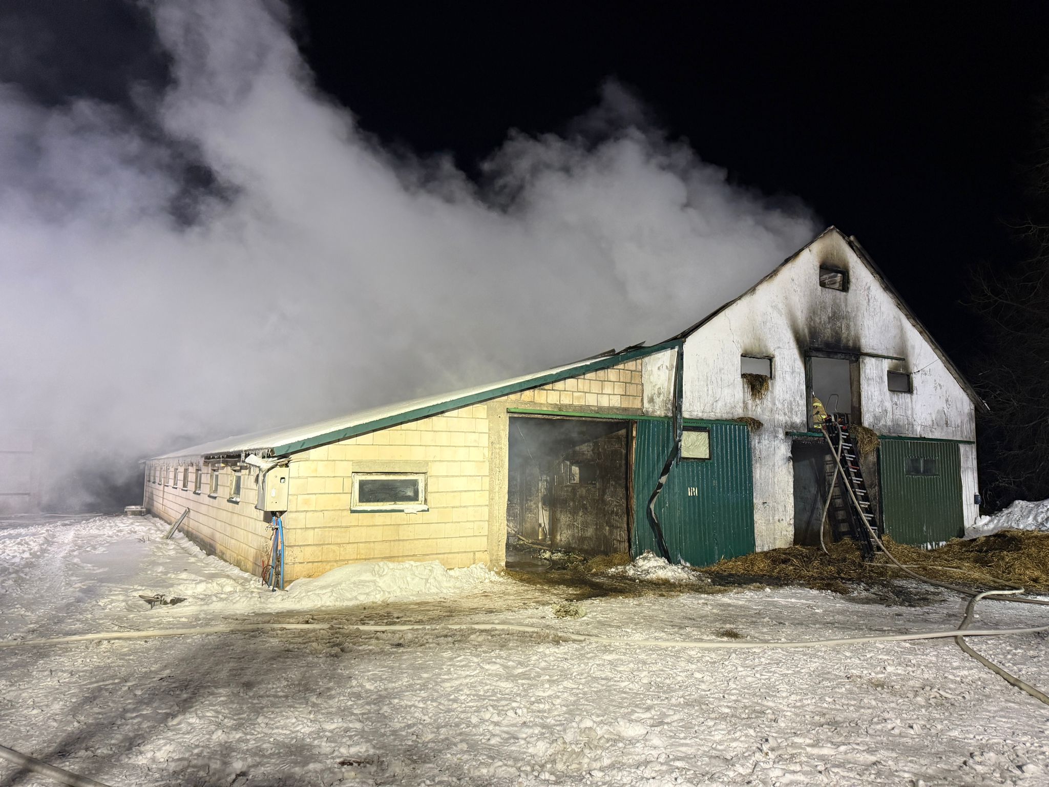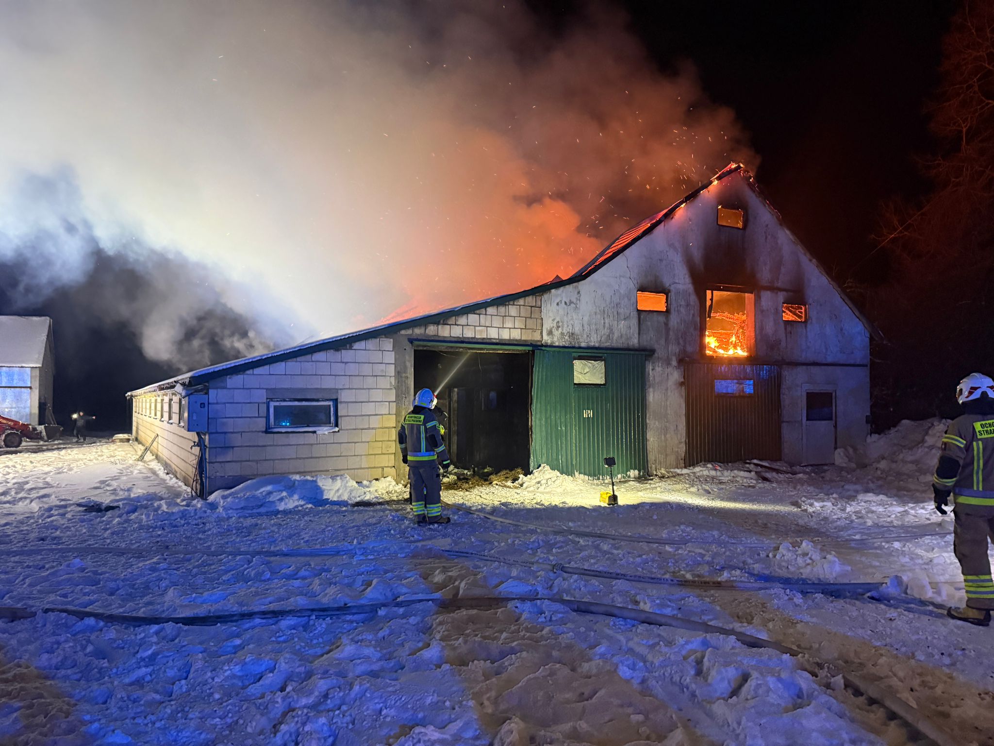 17 stycznia 2026 roku o godz. 16:45 Stanowisko Kierowania Komendanta Powiatowego PSP w Sokółce otrzymało zgłoszenie o pożarze obory w miejscowości Romanówka, gm. Sidra.