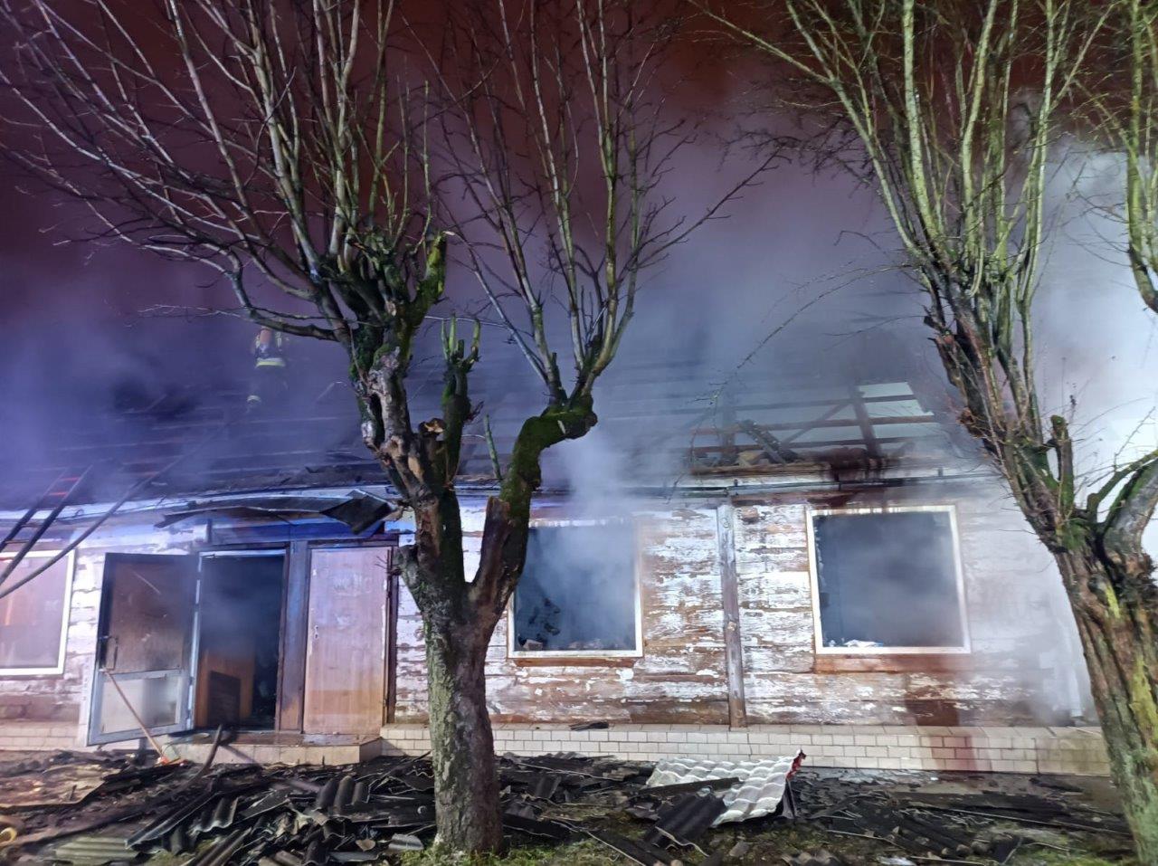 Działania straży polegały na zabezpieczeniu miejsca zdarzenia i podaniu dwóch prądów wody w natarciu na palący się budynek z jednoczesną obroną zagrożonych obiektów. Po przybyciu kolejnych zastępów wprowadzono 3 prądy wody w natarciu do wnętrza budynku oraz 1 prąd wody w obronie budynku mieszkalnego zlokalizowanego w odległości 3 m. Podczas działań do pracy na wysokości wykorzystano podnośnik hydrauliczny. Pracę ratowników utrudniała gęsta zabudowa, bardzo duże zadymienie oraz skomplikowany rozkład pomieszczeń palącego się obiektu. Ratownicy pracowali w aparatach ochrony układu oddechowego - w trakcie działań zapewniono dowóz i podmianę butli powietrznych do aparatów OUO. Dokonano przeszukania wnętrza obiektu pod kątem przebywania osób poszkodowanych - nikogo nie znaleziono. Po zlokalizowaniu pożaru dokonano niezbędnych prac rozbiórkowych konstrukcji stropu oraz dachu i dogaszano pojawiające się zarzewia ognia. W trakcie działań wykorzystano wentylację mechaniczną do oddymiania obiektu, kamerę termowizyjną oraz oświetlono teren działań. Ewakuowano również na zewnątrz część mienia. Wszystkie pomieszczenia sąsiedniego najbliższego budynku mieszkalnego sprawdzono przy użyciu detektora wielogazowego oraz kamery termowizyjnej – brak zagrożeń. Przybyłe na miejsce zdarzenia Pogotowie Energetyczne odłączyło zasilanie budynku w energię elektryczną, a Policja zabezpieczyła teren działań i zamknęła ruch w obrębie miejsca zdarzenia. Władze samorządowe gminy Sokółka zapewniły natomiast dla mieszkańca obiektu tymczasowy lokal zastępczy. Zaopatrzenie wodne stanowiły hydranty przy ul. Putry i Plac Kościuszki.