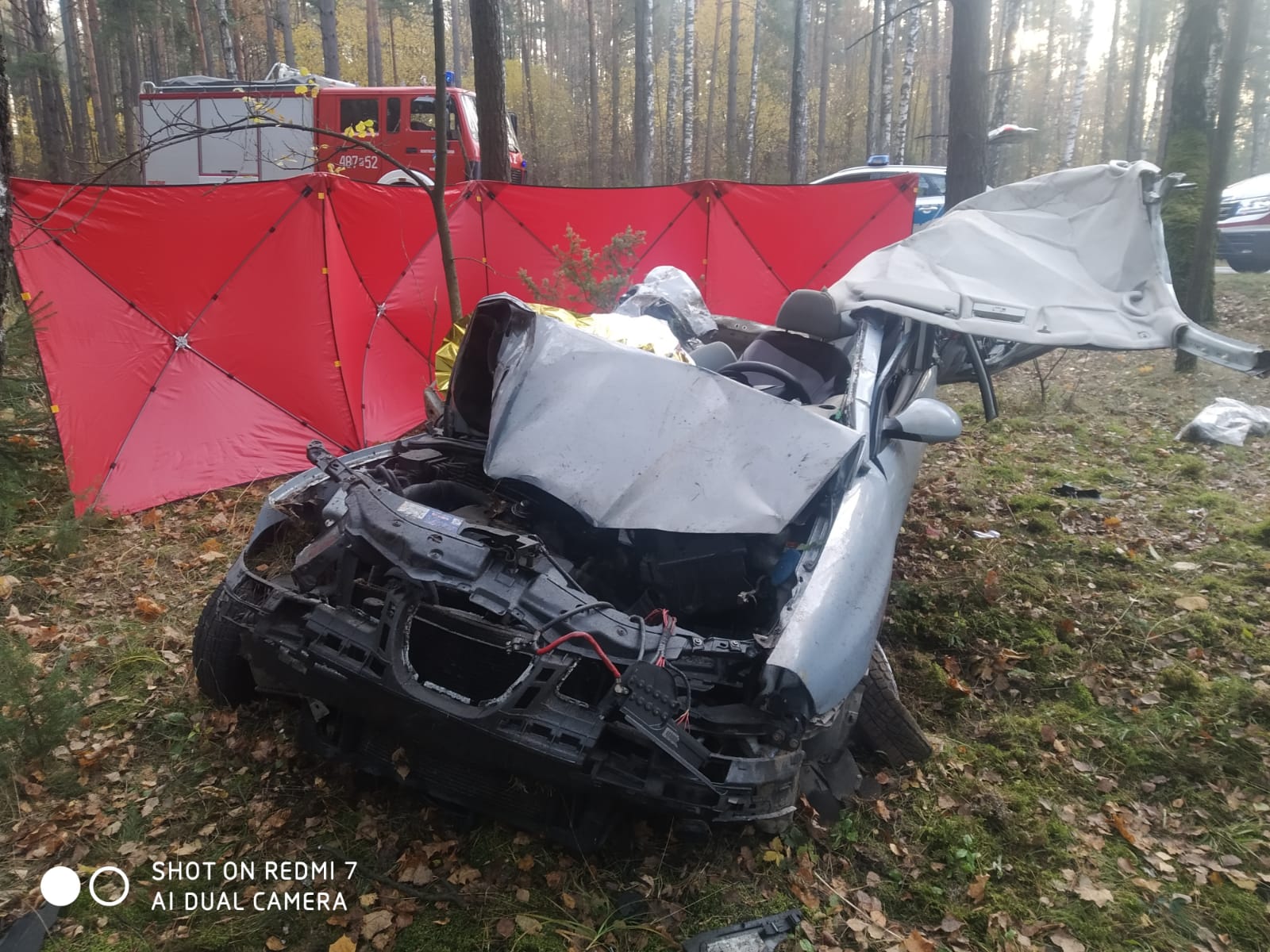 Po dojechaniu na miejsce zdarzenia pierwszego zastępu z OSP Horodnianka stwierdzono, że na poboczu DK 8 pomiędzy drzewami znajduje się całkowicie zniszczony samochód osobowy Seat Ibiza stojący na kołach. Ze śladów widocznych na miejscu wynikało, że pojazd na zakręcie zjechał z drogi, a następnie staranował przydrożne drzewo i kilkukrotnie dachował. W trakcie rozpoznania ustalono, że wewnątrz samochodu znajdują się dwie uwięzione osoby. Jedna z nich zginęła na miejscu, natomiast druga osoba była nieprzytomna.