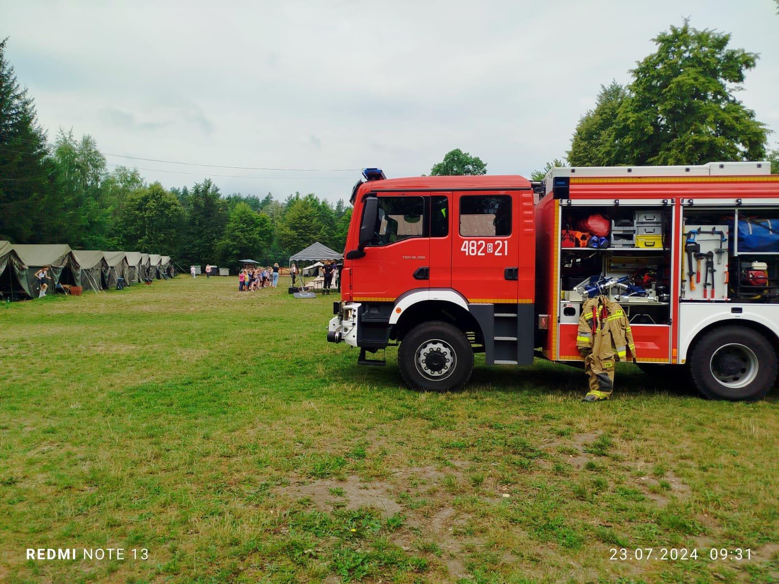 To już czwarta w tym roku wizyta strażaków u harcerzy wypoczywających na terenie powiatu sokólskiego. Tym razem na obozowisku wakacje spędza ponad 130 osób.