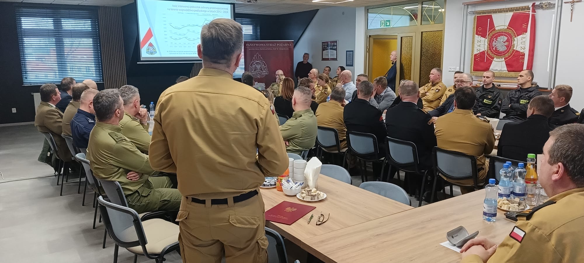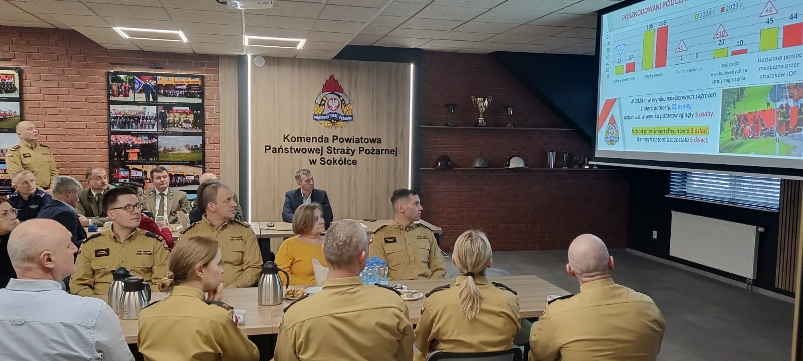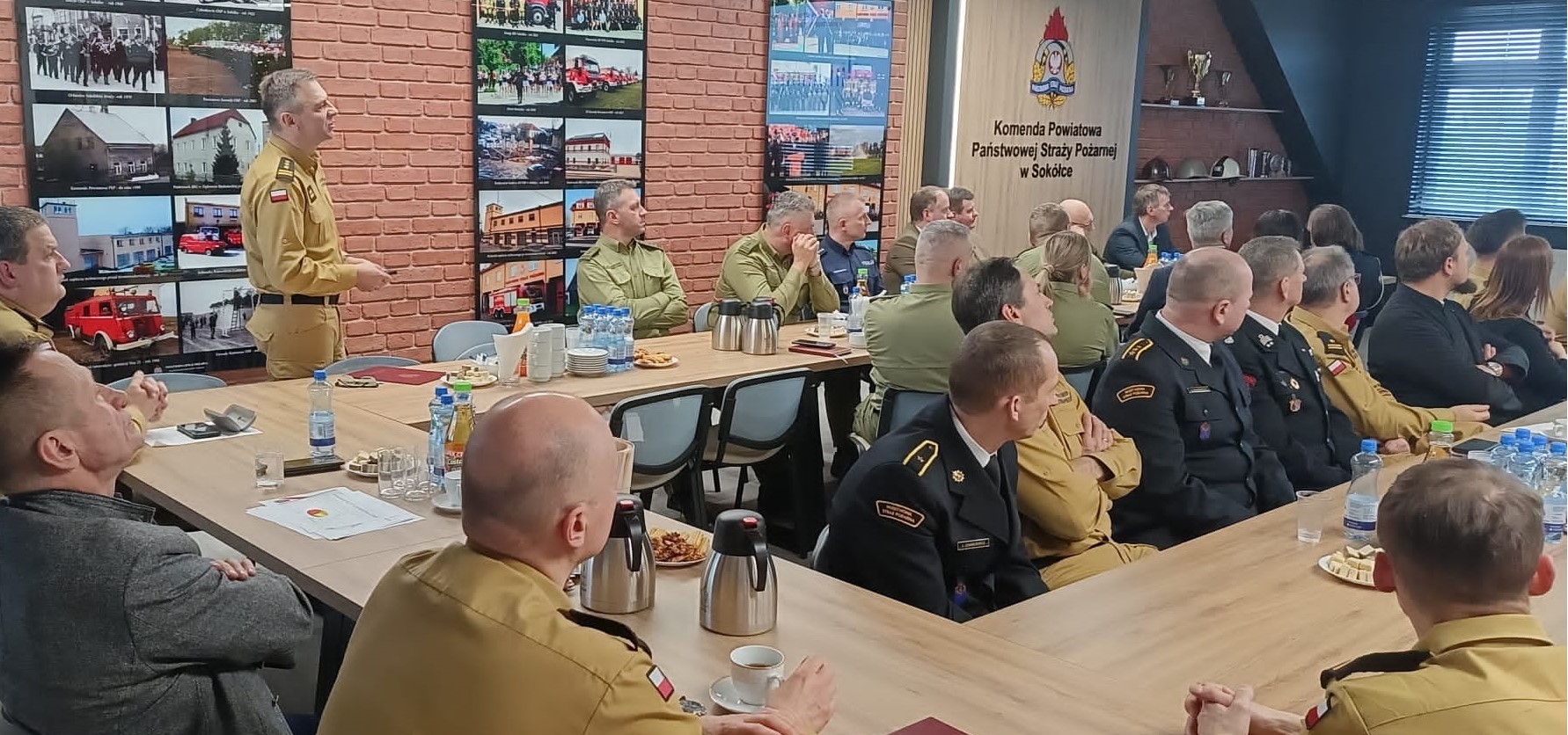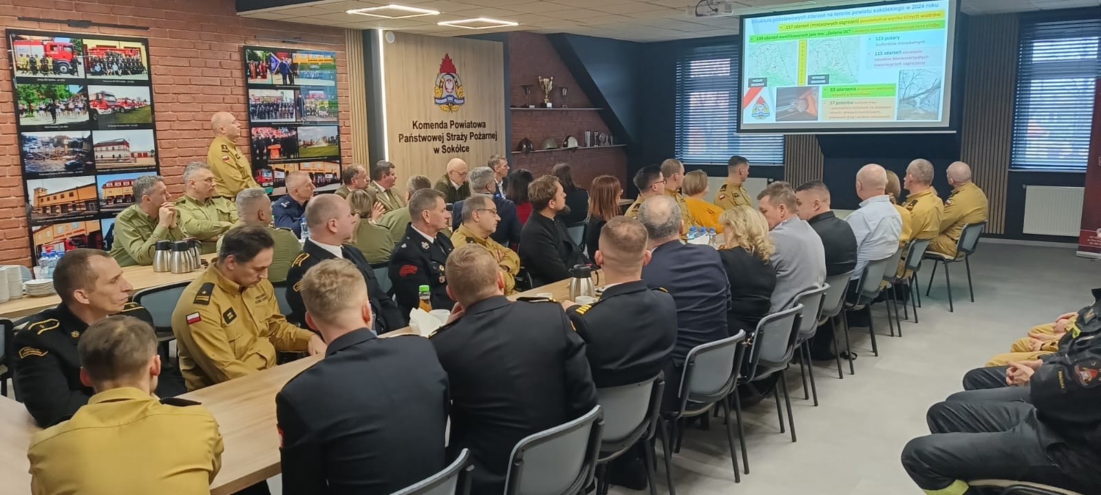 14 lutego 2025 roku w siedzibie Komendy Powiatowej PSP w Sokółce odbyła się odprawa roczna podsumowująca działalności jednostek ochrony przeciwpożarowej powiatu sokólskiego w 2024 roku.