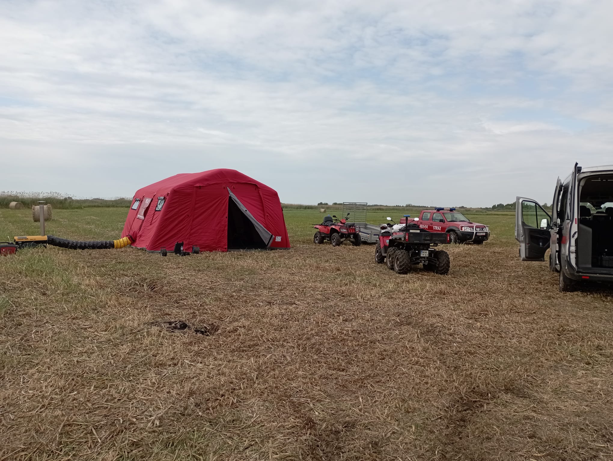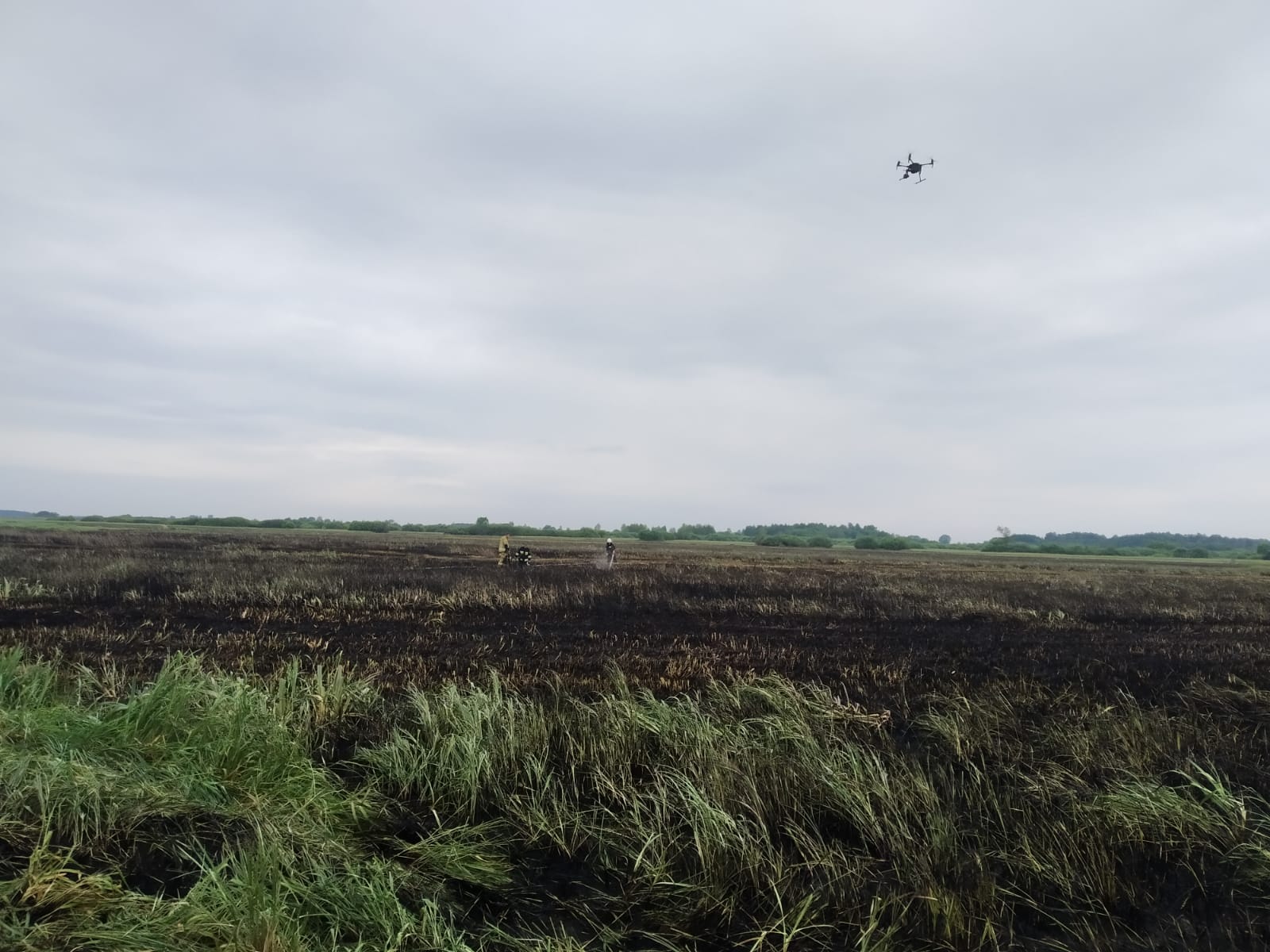W godzinach porannych dnia następnego na teren działań zadysponowano ponownie Zespół Dronowy z KW PSP Białystok, który sprawdził pogorzelisko - w trzech przypadkach stwierdzono podwyższoną temperaturę przy gruncie. Wskazane miejsca przelano prądem wody. Na miejsce zdarzenia udał się również Komendant Powiatowy PSP w Sokółce oraz Grupa Operacyjna Podlaskiego Komendanta Wojewódzkiego PSP. Teren działań zabezpieczono i przekazano do dozoru pracownikom BPN.