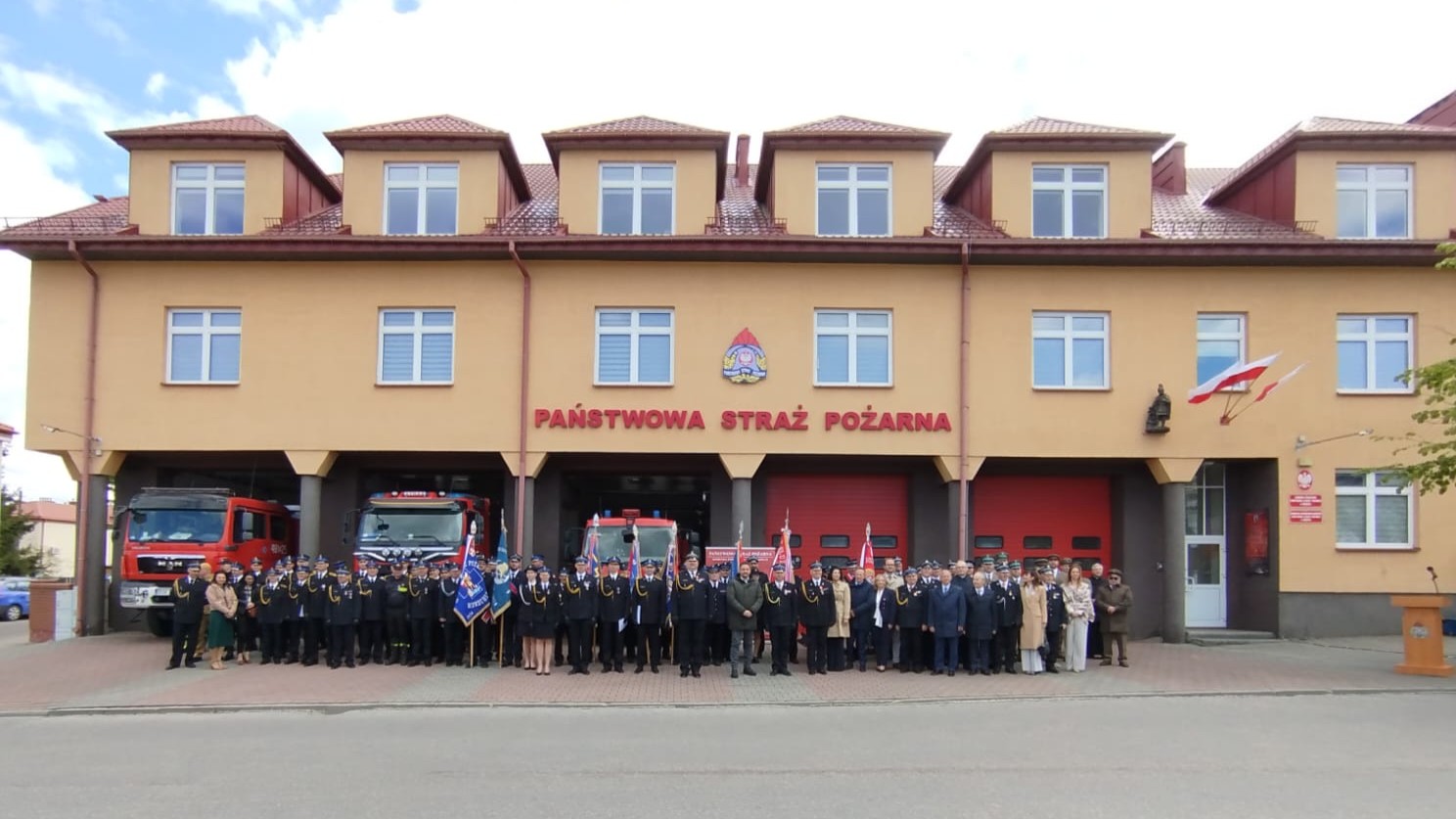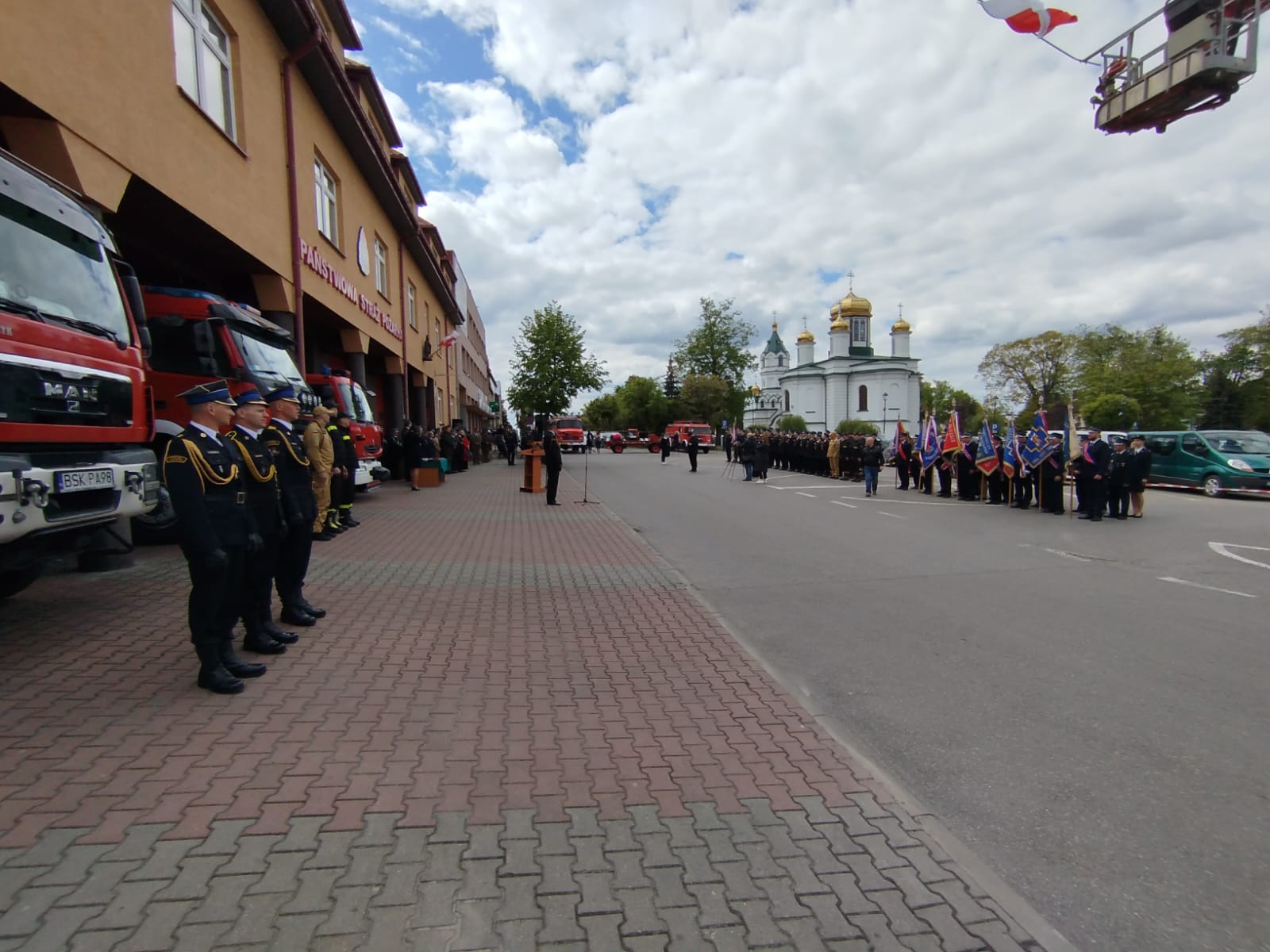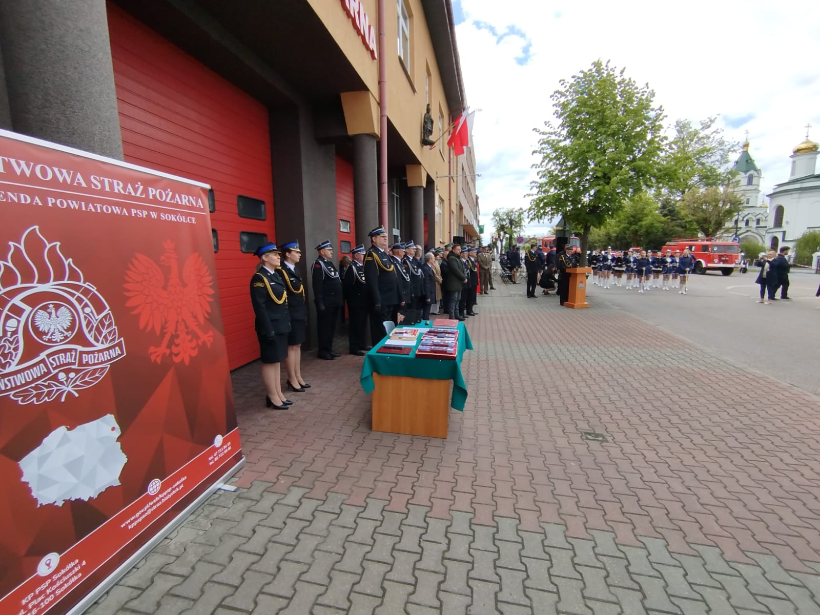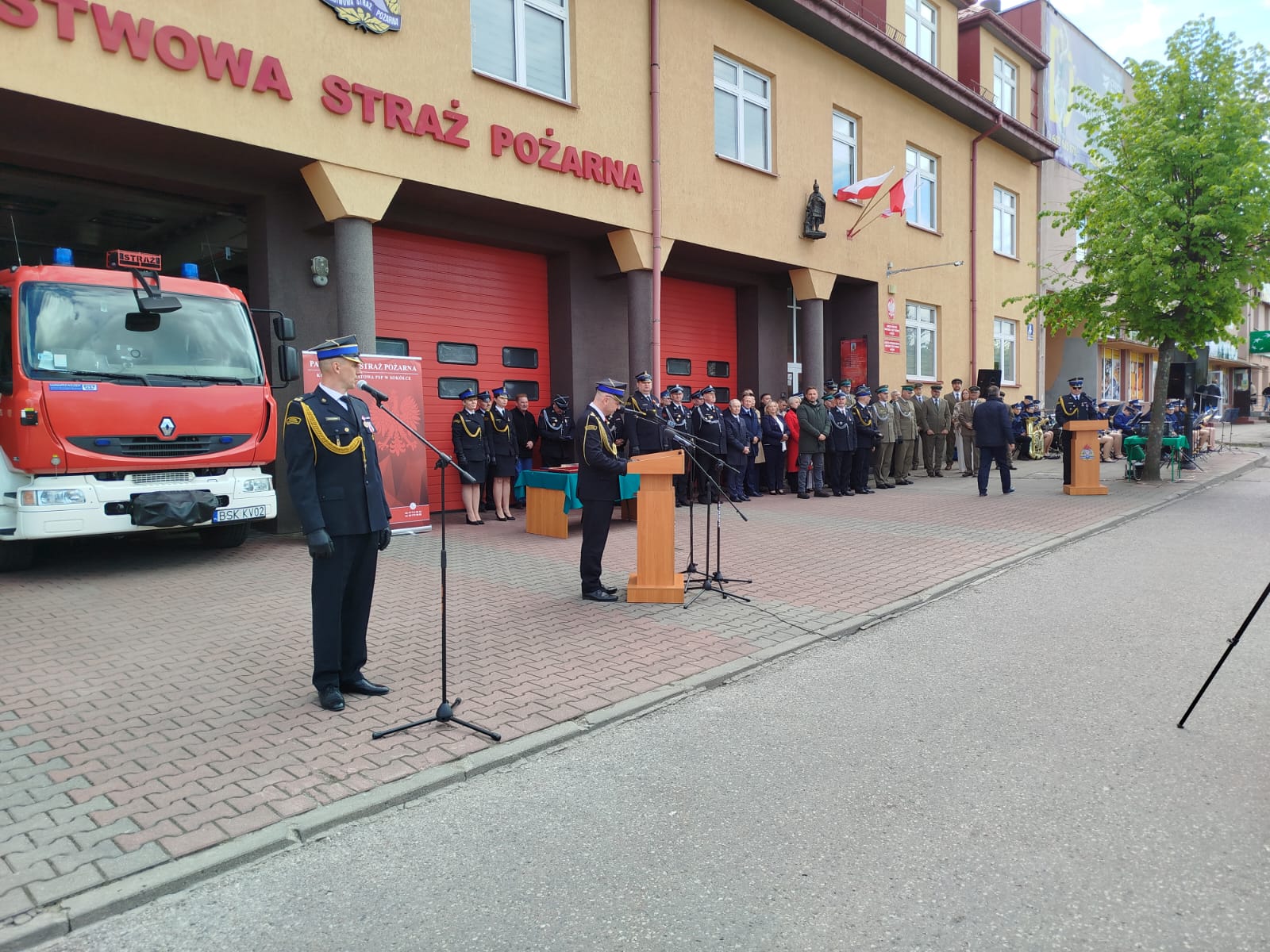 Przed siedzibą Komendy Powiatowej PSP w Sokółce zgromadzili się zaproszeni goście, wśród których nie zabrakło Pana Pawła Krutula – wicewojewody podlaskiego, st. bryg. Janusza Kondrata – podlaskiego komendanta wojewódzkiego Państwowej Straży Pożarnej, Pani Wiesławy Burnos – wicemarszałka Województwa Podlaskiego, druha Jana Gradkowskiego – członka zarządu głównego Związku Ochotniczych Straży Pożarnych RP i jednocześnie wiceprezesa zarządu Oddziału Wojewódzkiego Związku Ochotniczych Straży Pożarnych RP w Białymstoku, Pana Jerzego Białomyzego – członka zarządu powiatu sokólskiego, Pana Krzysztofa Krasińskiego – przewodniczącego rady powiatu sokólskiego, ks. mł. bryg. Wojciecha Ejsmonta – kapelana wojewódzkiego strażaków, o. Piotra Hanczaruka – powiatowego prawosławnego kapelana strażaków, weteranów pożarnictwa na czele ze st. bryg. w st. spocz. Wacławem Gresiem – prezesem Zarządu Koła Emerytów i Rencistów, przedstawicieli administracji samorządowej szczebla gminnego z terenu powiatu sokólskiego - na czele z Burmistrzami i Wójtami, komendantów służb mundurowych i podmiotów współpracujących z jednostkami ochrony przeciwpożarowej, a także przedstawicieli zarządów oddziałów gminnych związku Ochotniczych Straży Pożarnych RP z terenu powiatu sokólskiego.