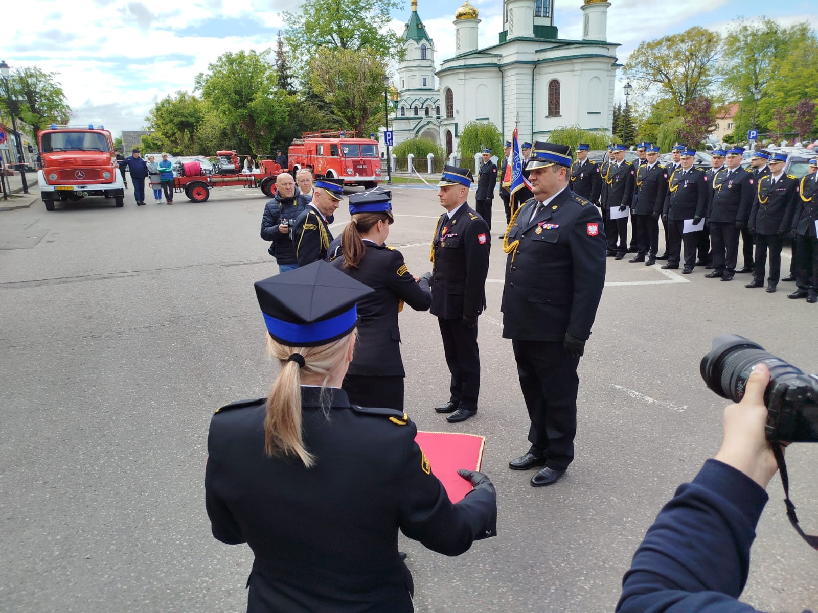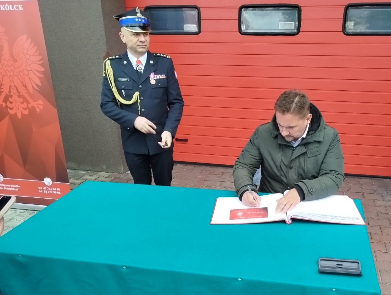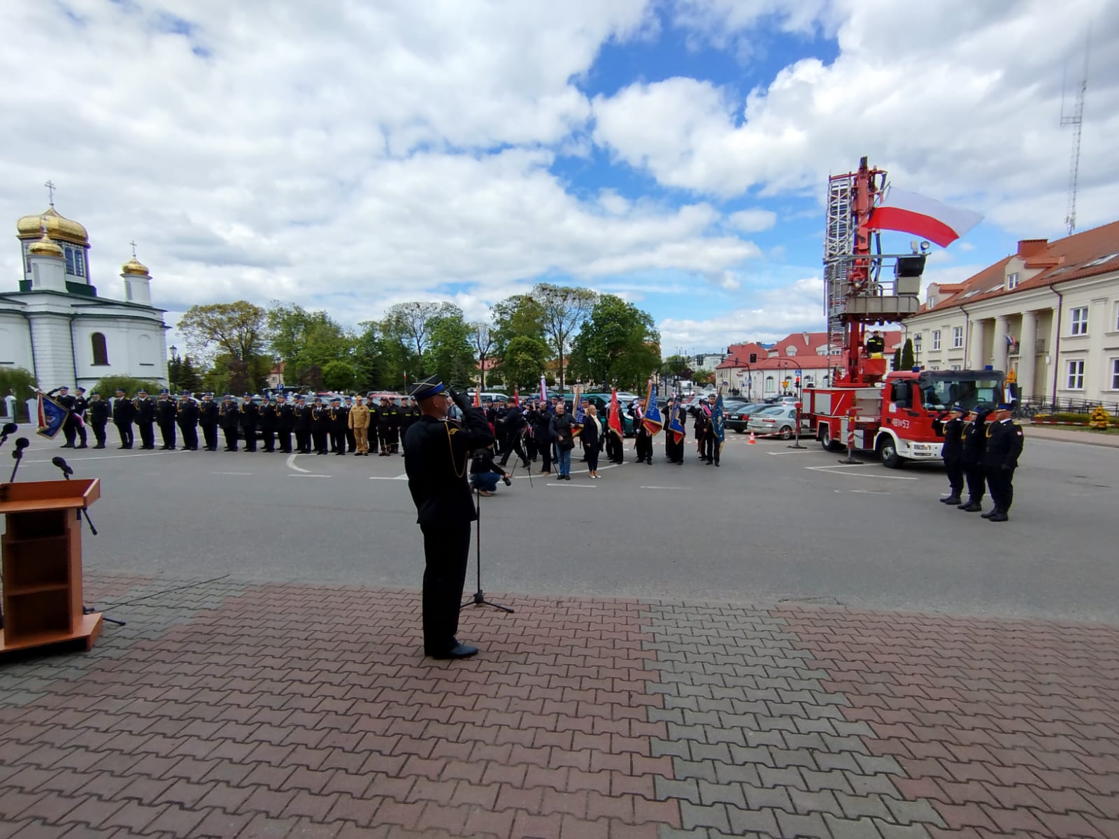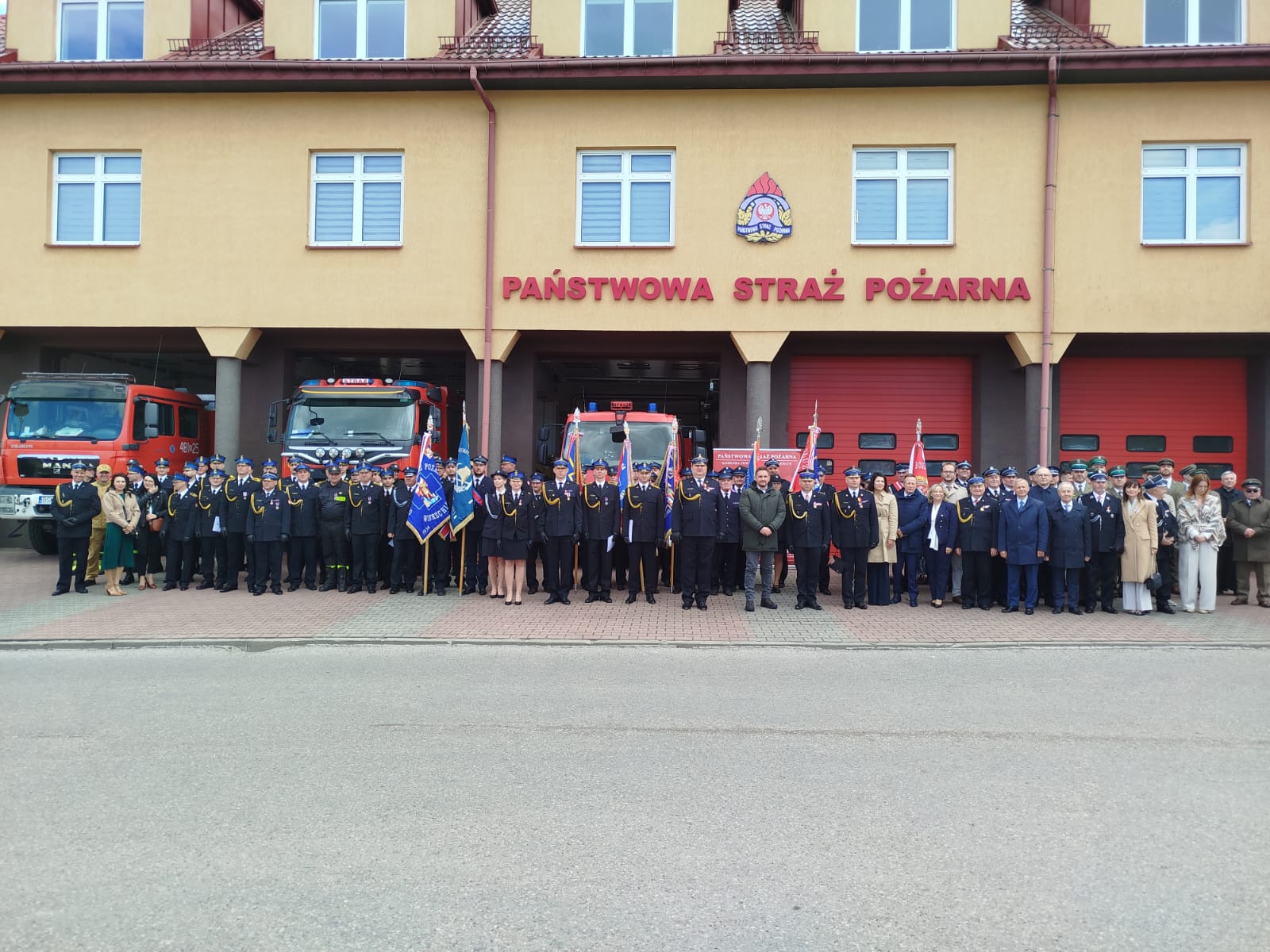 Przed siedzibą Komendy Powiatowej PSP w Sokółce zgromadzili się zaproszeni goście, wśród których nie zabrakło Pana Pawła Krutula – wicewojewody podlaskiego, st. bryg. Janusza Kondrata – podlaskiego komendanta wojewódzkiego Państwowej Straży Pożarnej, Pani Wiesławy Burnos – wicemarszałka Województwa Podlaskiego, druha Jana Gradkowskiego – członka zarządu głównego Związku Ochotniczych Straży Pożarnych RP i jednocześnie wiceprezesa zarządu Oddziału Wojewódzkiego Związku Ochotniczych Straży Pożarnych RP w Białymstoku, Pana Jerzego Białomyzego – członka zarządu powiatu sokólskiego, Pana Krzysztofa Krasińskiego – przewodniczącego rady powiatu sokólskiego, ks. mł. bryg. Wojciecha Ejsmonta – kapelana wojewódzkiego strażaków, o. Piotra Hanczaruka – powiatowego prawosławnego kapelana strażaków, weteranów pożarnictwa na czele ze st. bryg. w st. spocz. Wacławem Gresiem – prezesem Zarządu Koła Emerytów i Rencistów, przedstawicieli administracji samorządowej szczebla gminnego z terenu powiatu sokólskiego - na czele z Burmistrzami i Wójtami, komendantów służb mundurowych i podmiotów współpracujących z jednostkami ochrony przeciwpożarowej, a także przedstawicieli zarządów oddziałów gminnych związku Ochotniczych Straży Pożarnych RP z terenu powiatu sokólskiego.