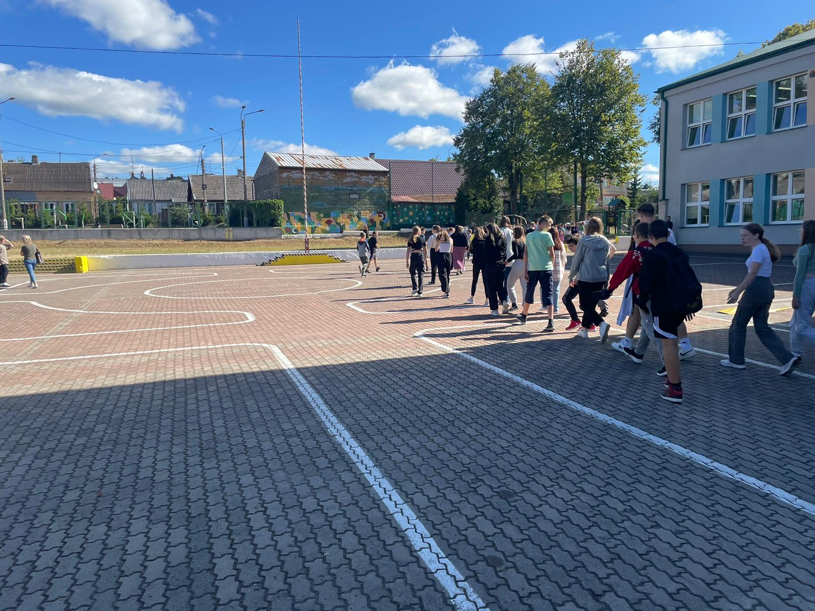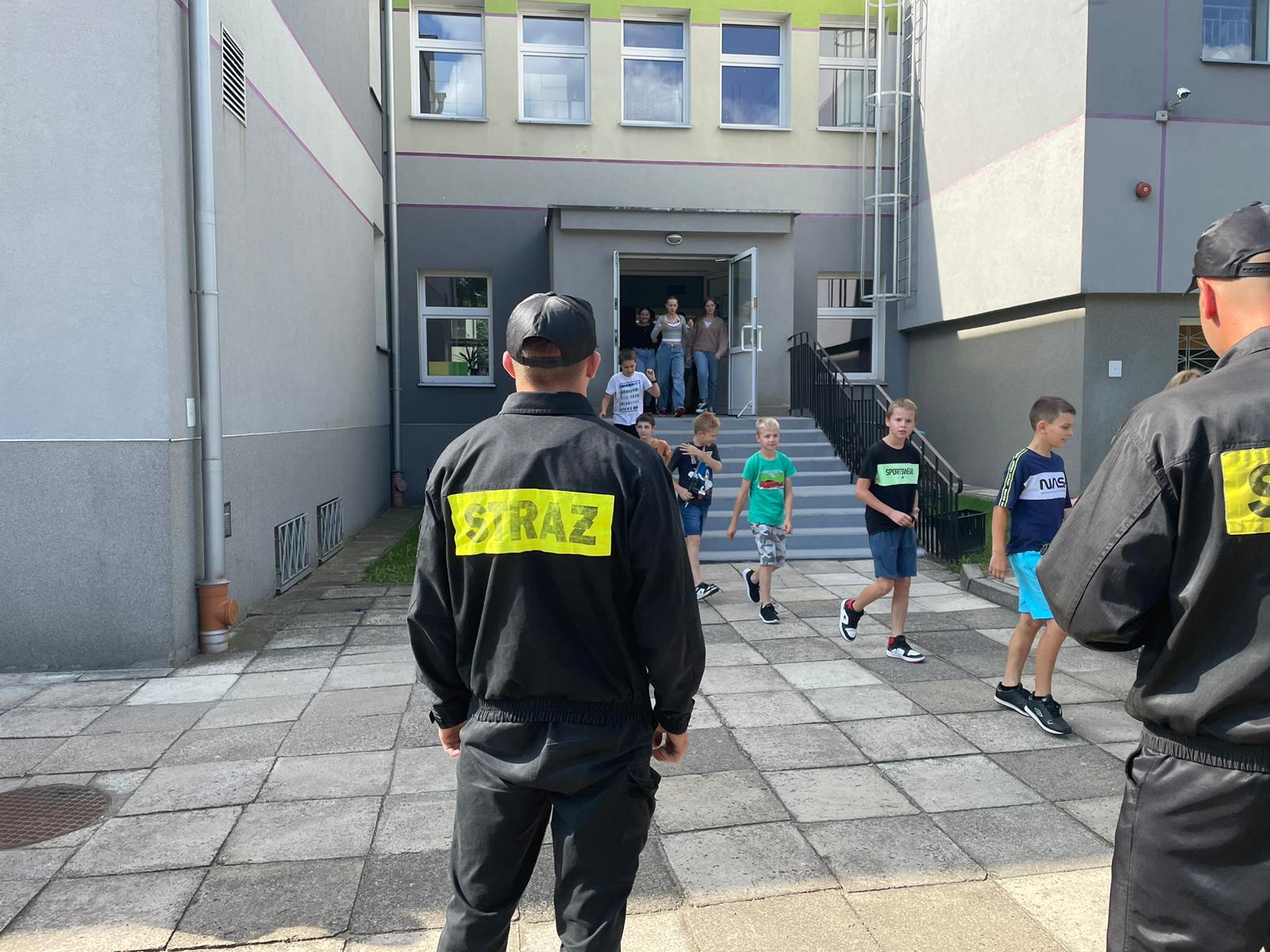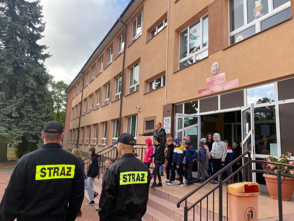 Próbne ewakuacje w placówkach oświatowych na terenie powiatu sokólskiego w 2023 roku.