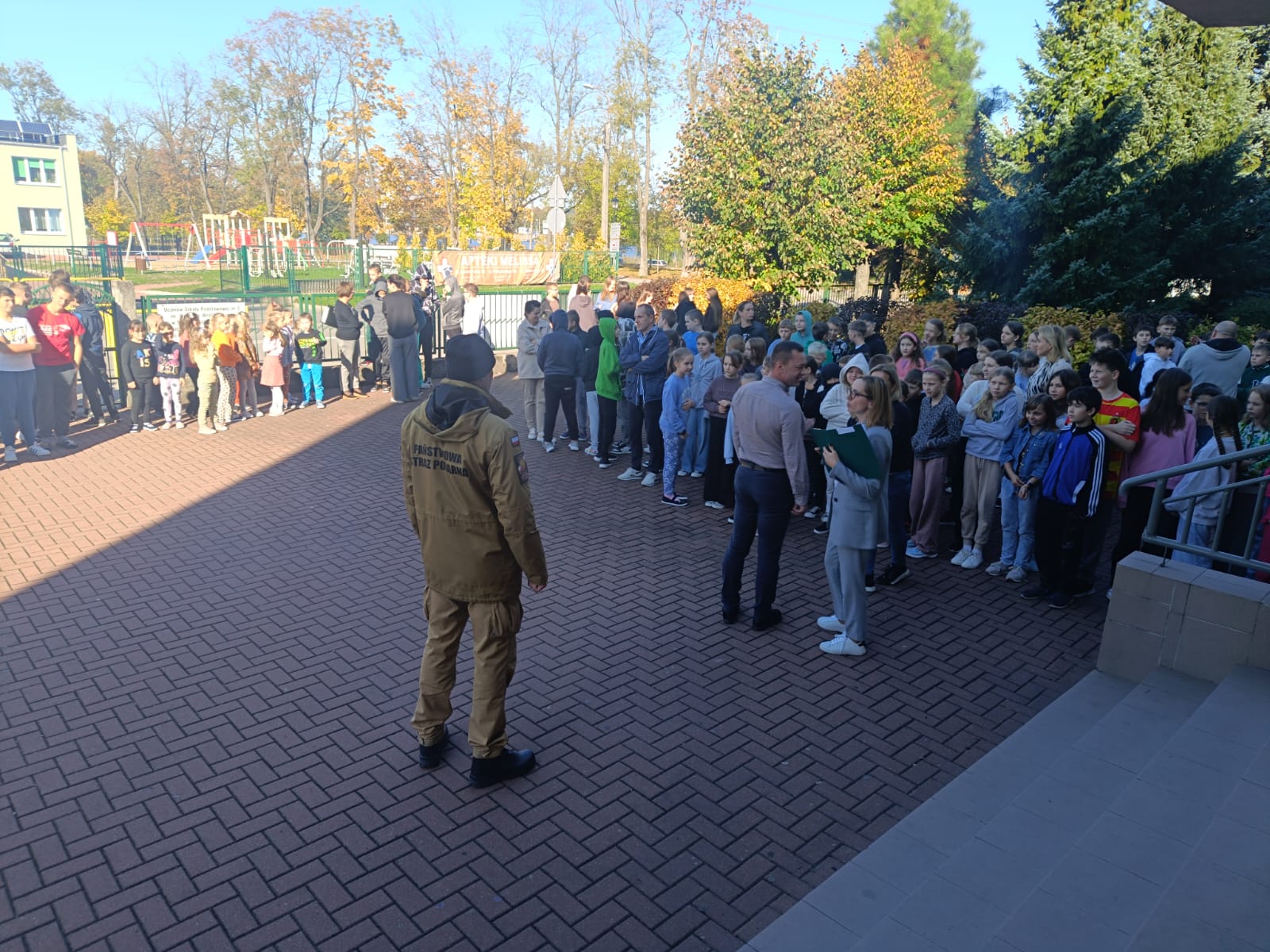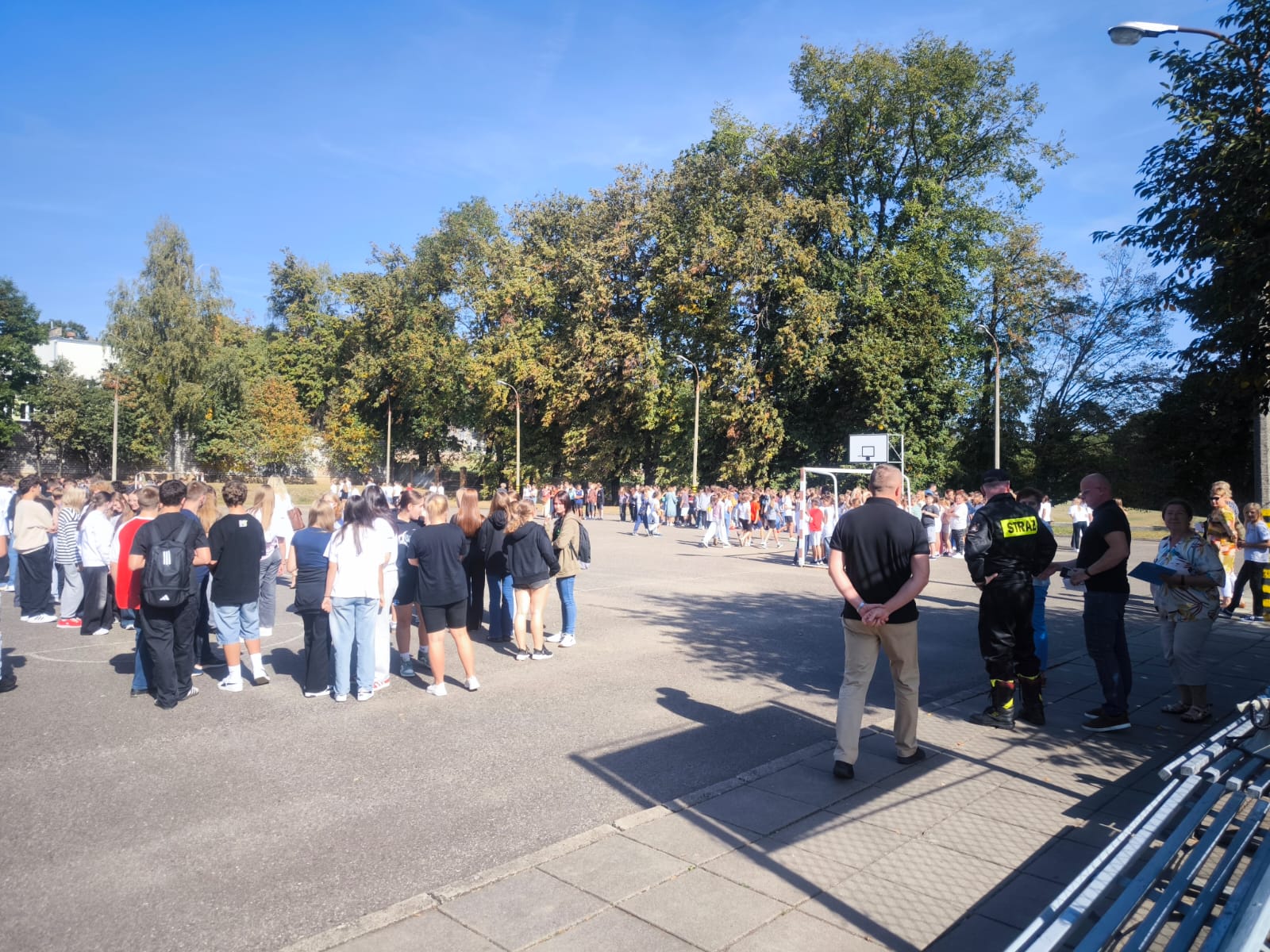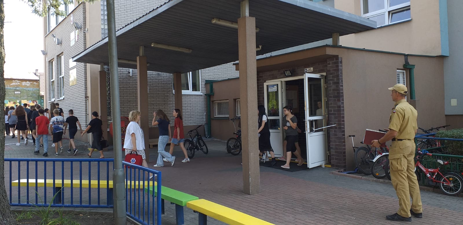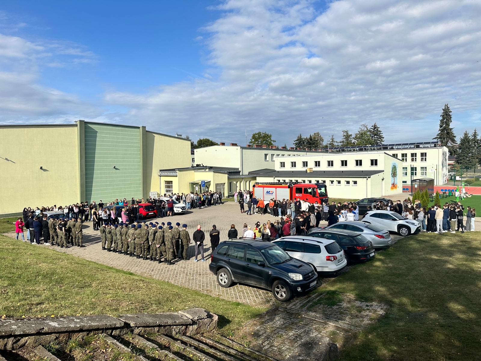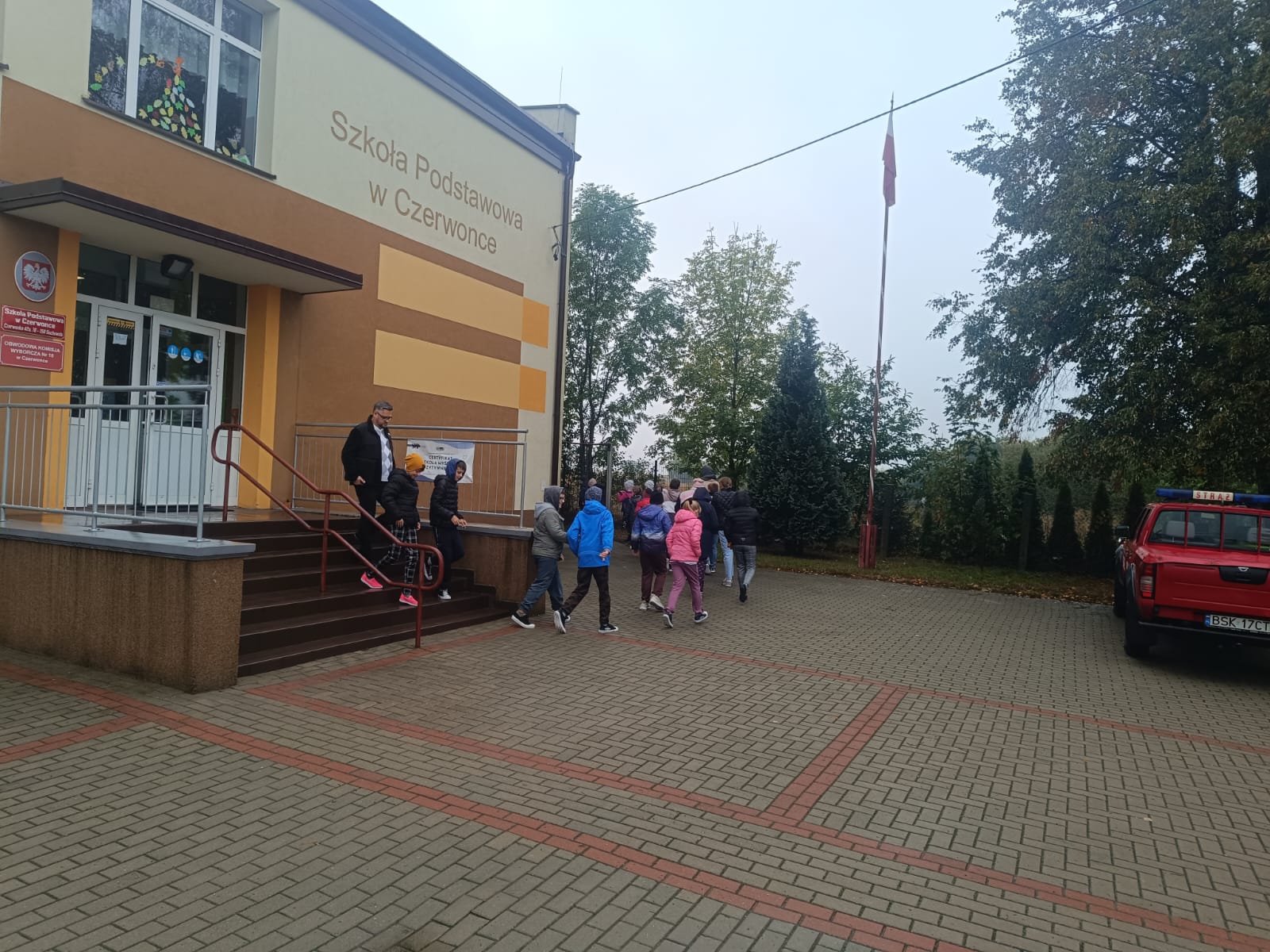 Próbne ewakuacje w placówkach oświatowych na terenie powiatu sokólskiego w 2024 roku.