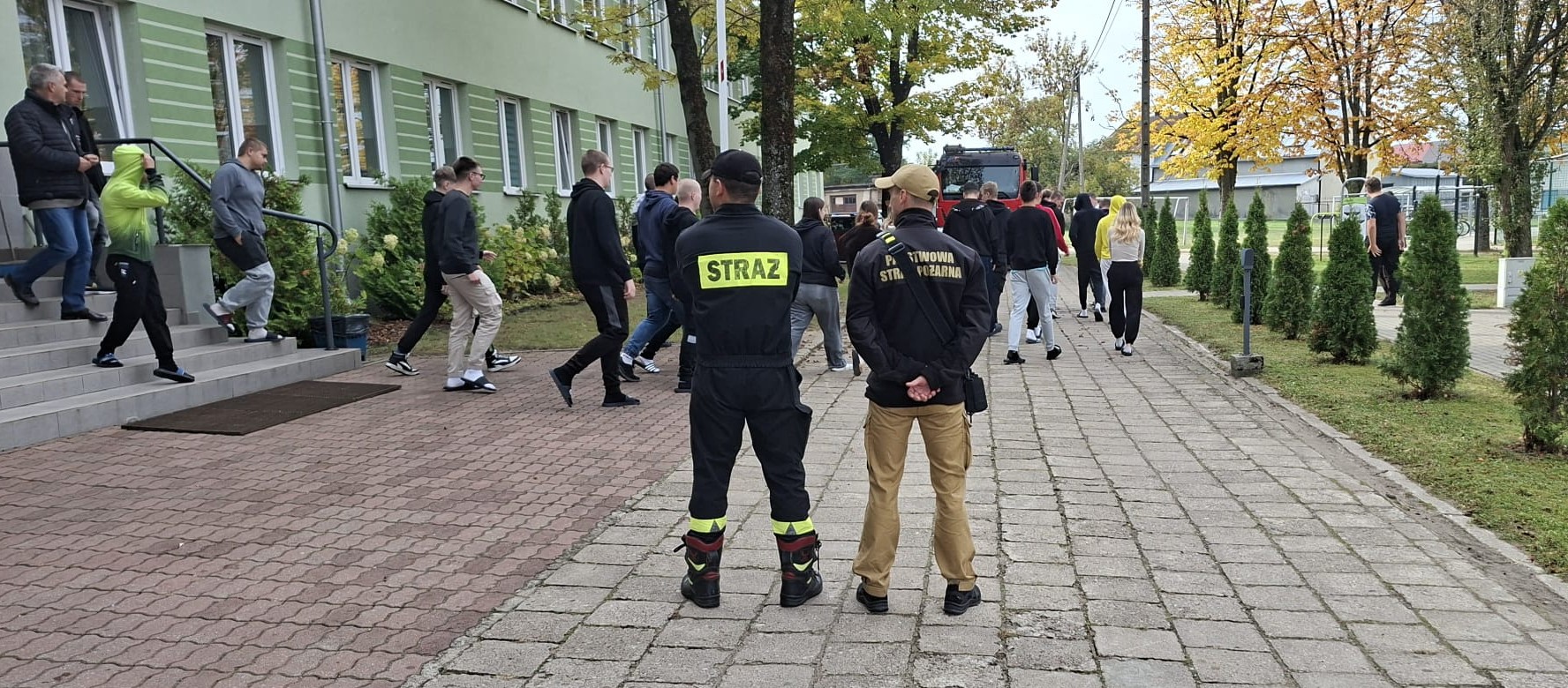 Próbne ewakuacje w placówkach oświatowych na terenie powiatu sokólskiego w 2025 roku.