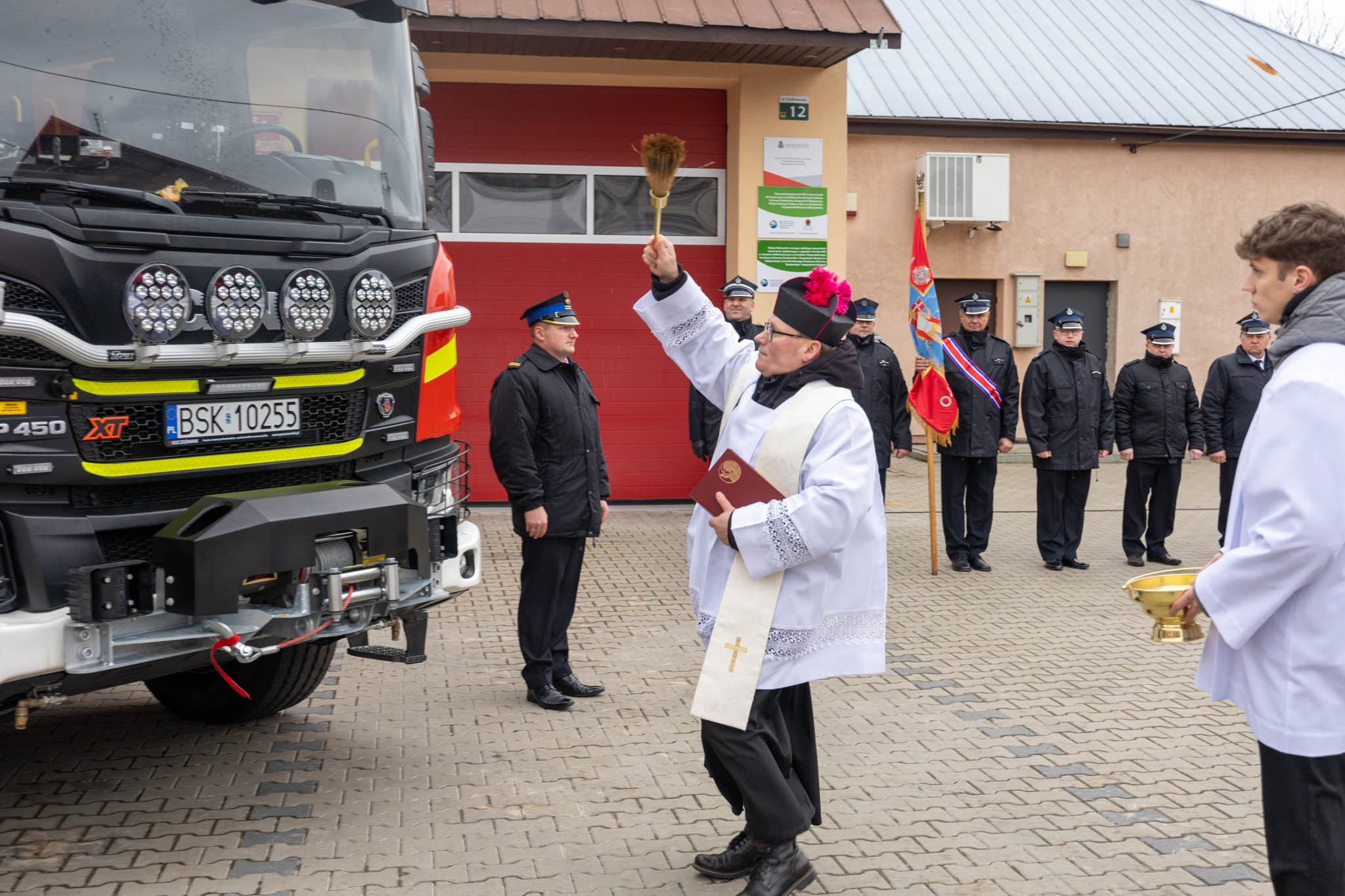 Przekazanie samochodu ratowniczo – gaśniczego jednostce Ochotniczej Straży Pożarnej w Janowie.
