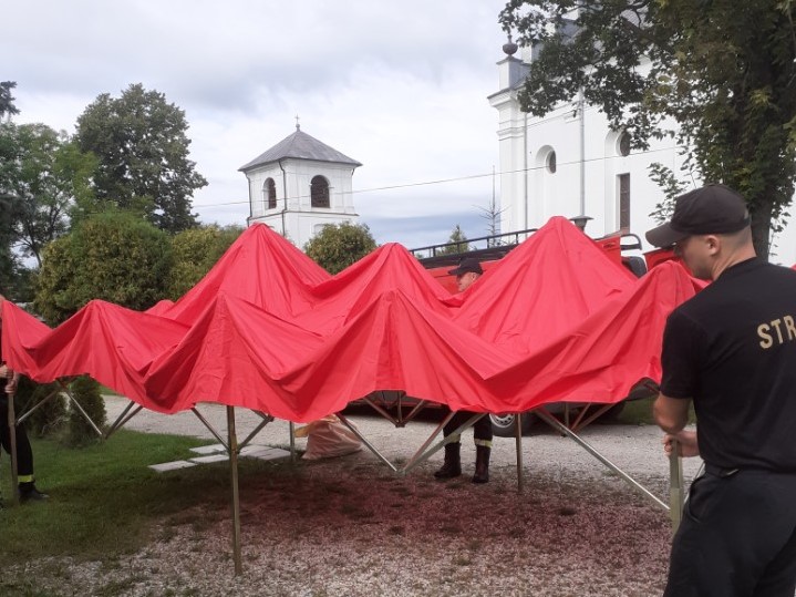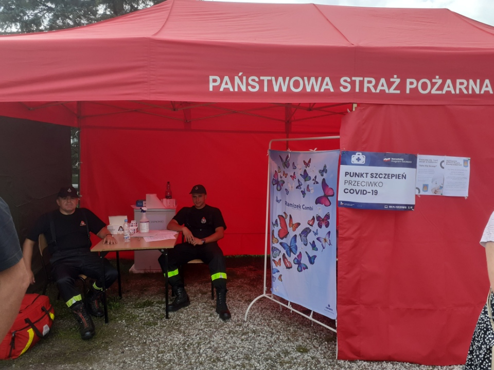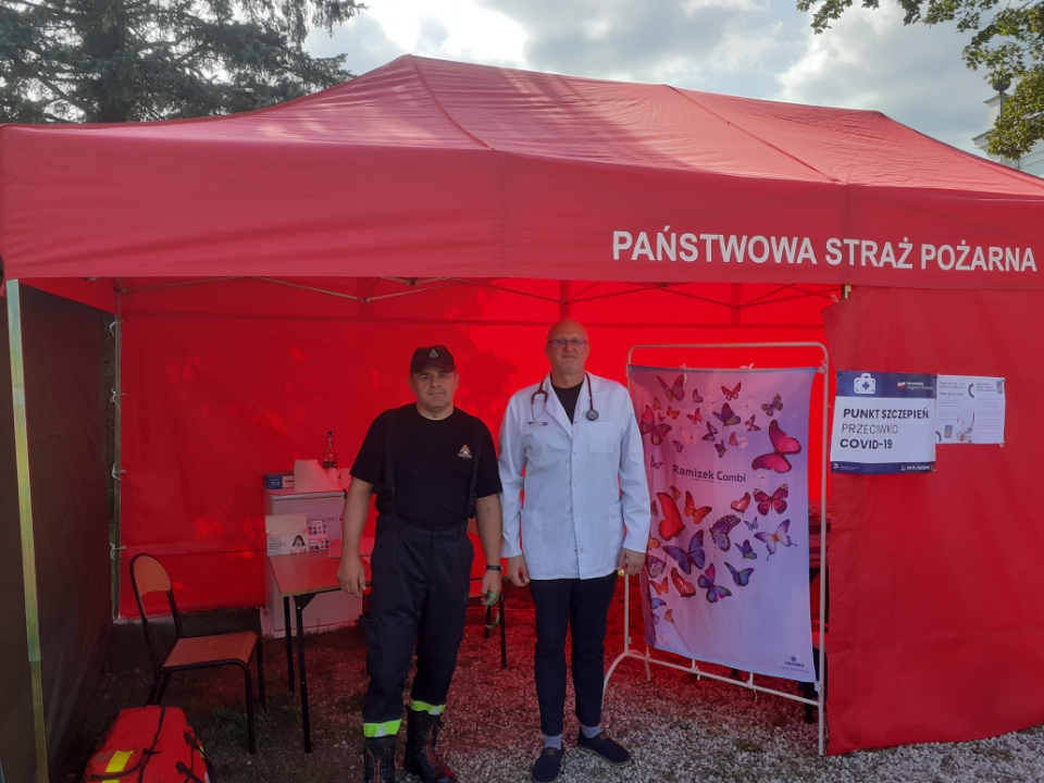 Do akcji włączyła się również Komenda Powiatowa PSP w Sokółce, która dostarczyła i pomogła rozstawić jeden z namiotów obsługujących punkt szczepień.