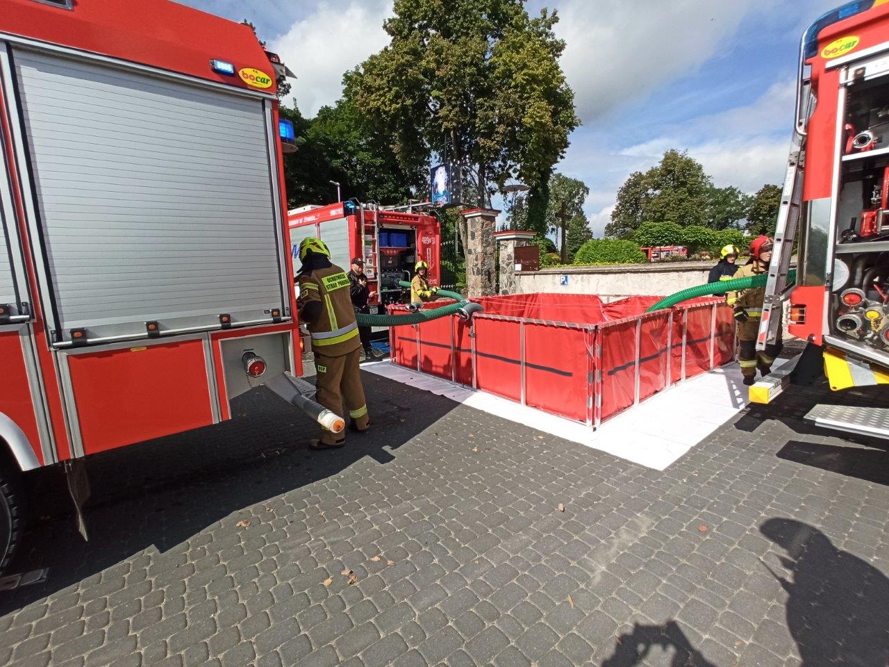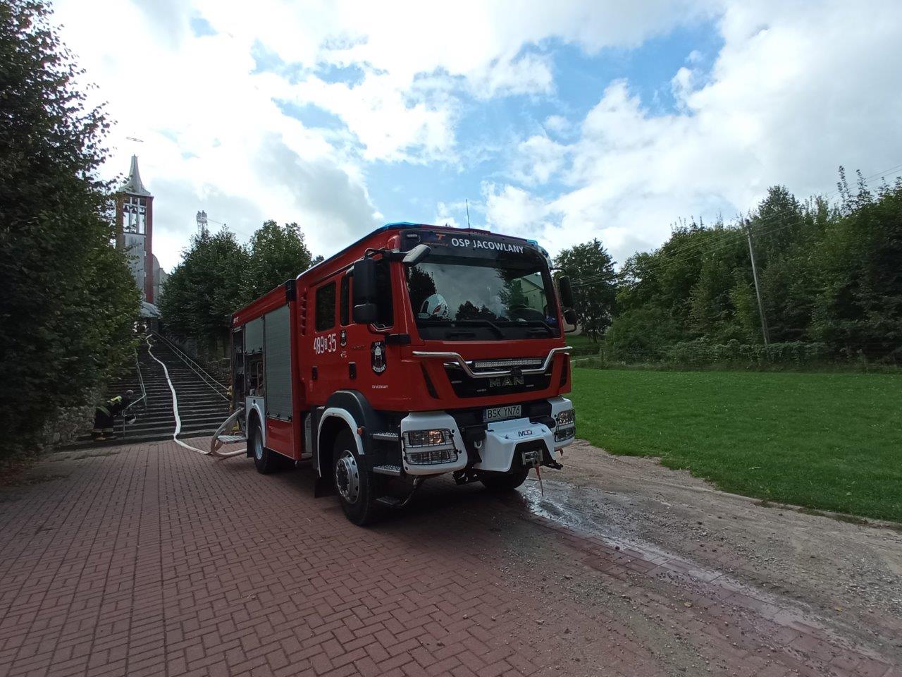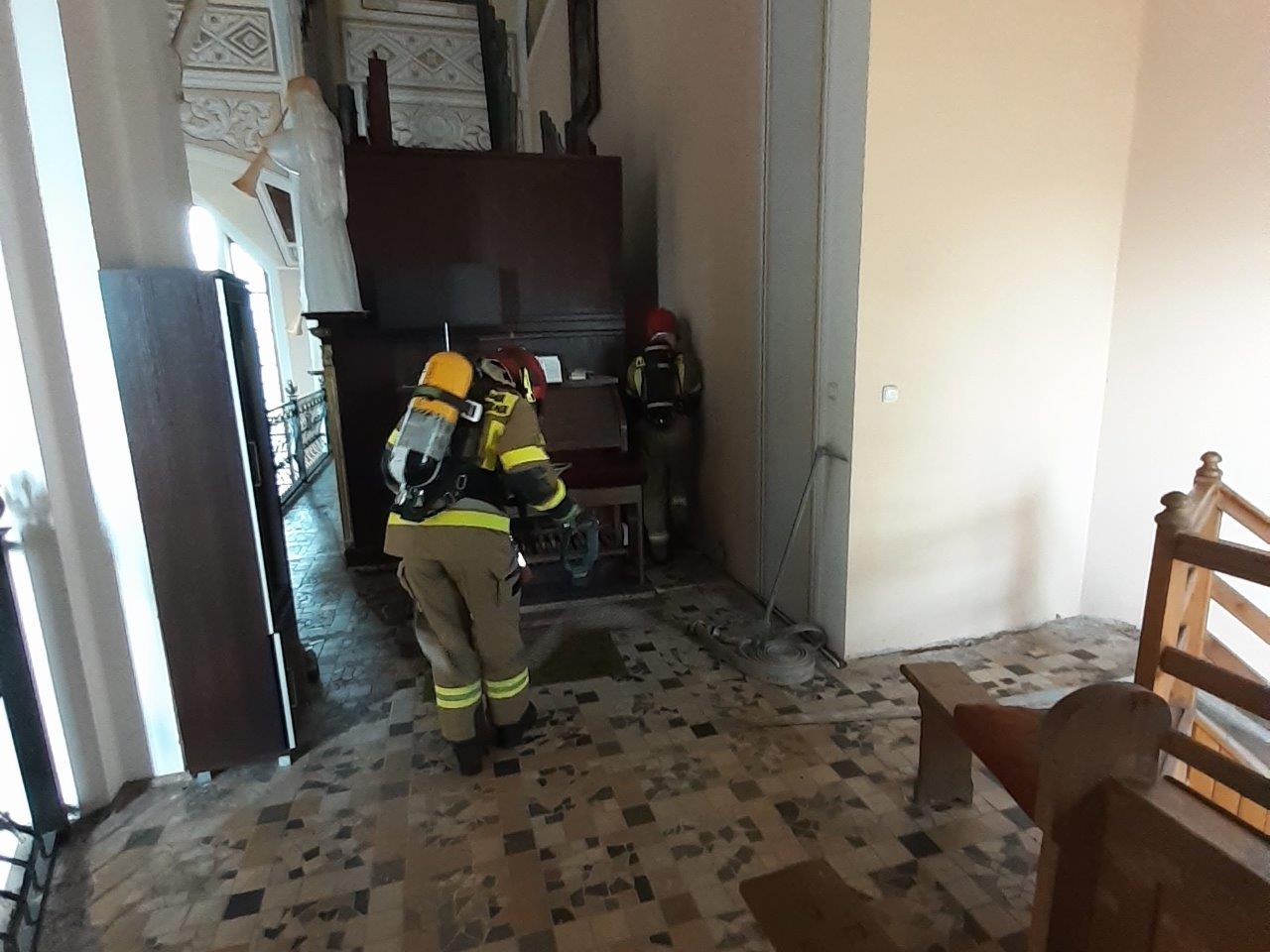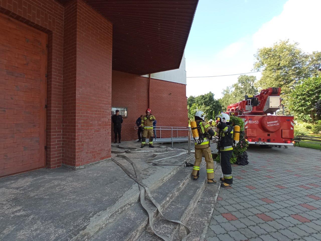 Celem praktycznych ćwiczeń taktyczno – bojowych było doskonalenie współdziałania podmiotów ratowniczych podczas akcji gaszenia pożaru w obiekcie sakralnym.