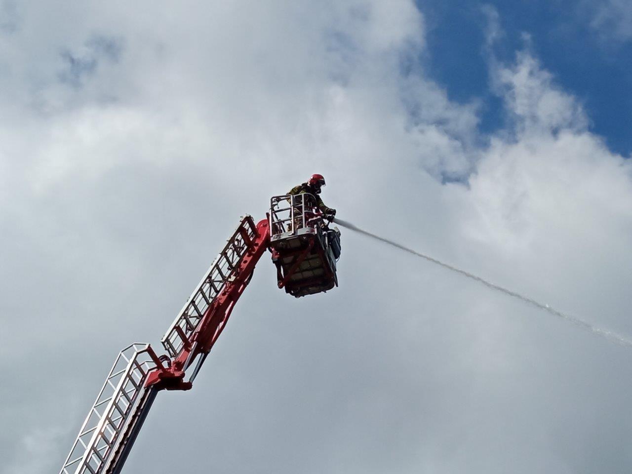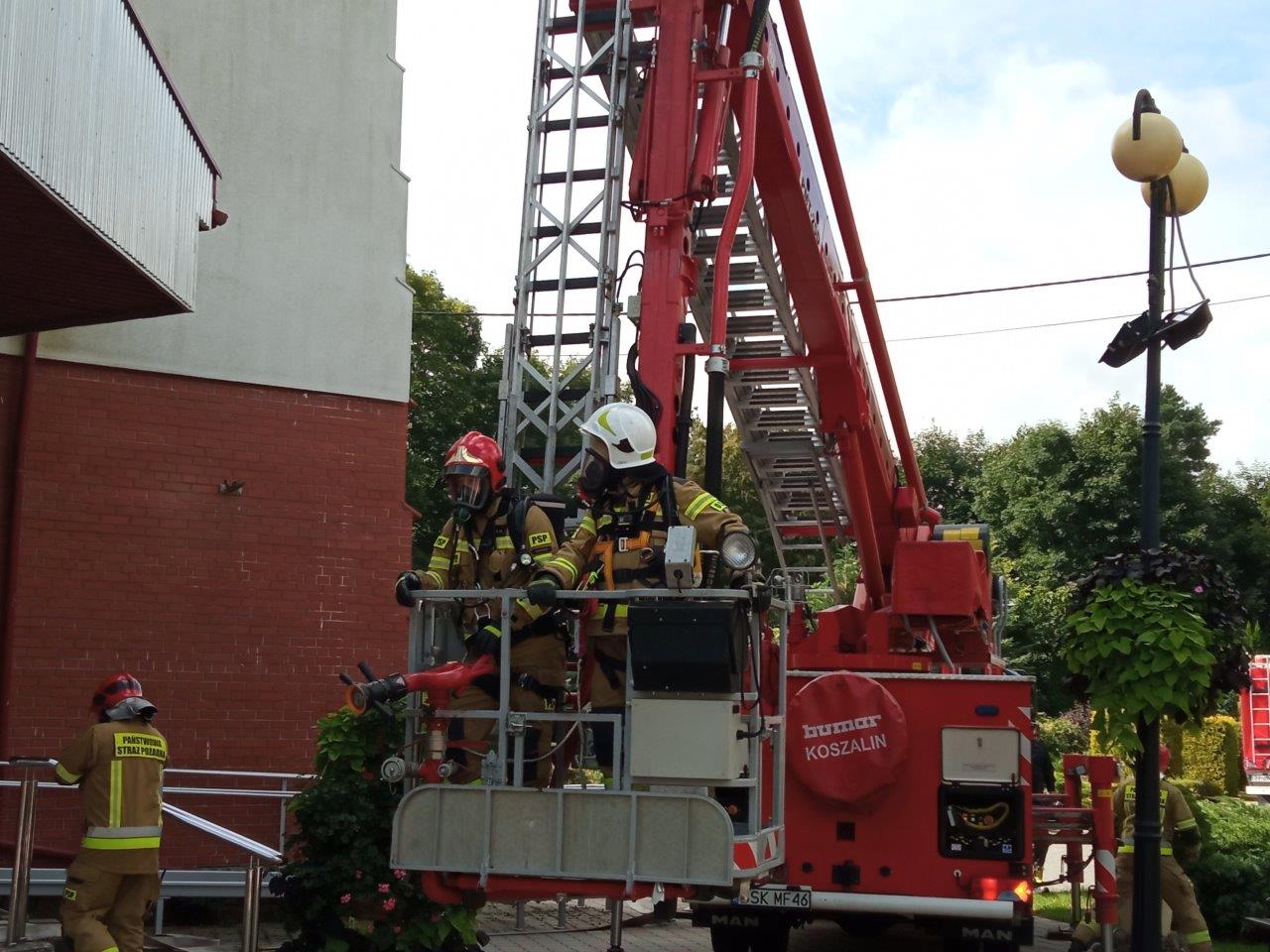 Strażacy mieli za zadanie ugasić pożar wieży wprowadzając 1 prąd wody w natarciu do wnętrza obiektu oraz podając 1 prąd wody z podnośnika, przeszukać cały obiekt, odnaleźć osobę poszkodowaną, ewakuować ją na zewnątrz i udzielić kwalifikowanej pierwszej pomocy. Ważnym zadaniem było również zorganizowanie zaopatrzenia wodnego zapewniającego ciągłość podawania wody na miejsce pożaru – zrealizowano to w oparciu o najbliższe hydranty rozwijając 2 linie zasilające na znaczną odległość oraz dowożąc wodę do utworzonego w oparciu o przenośny zbiornik TANKER bufor wodny.