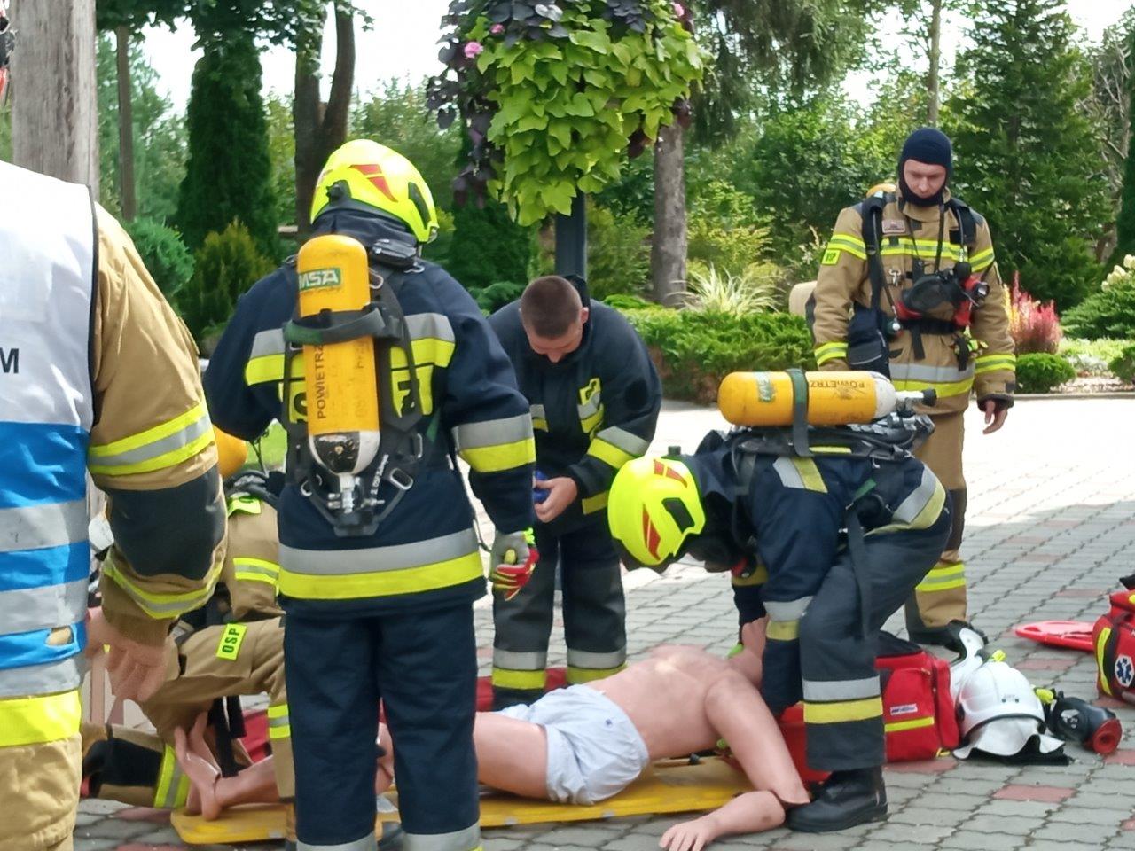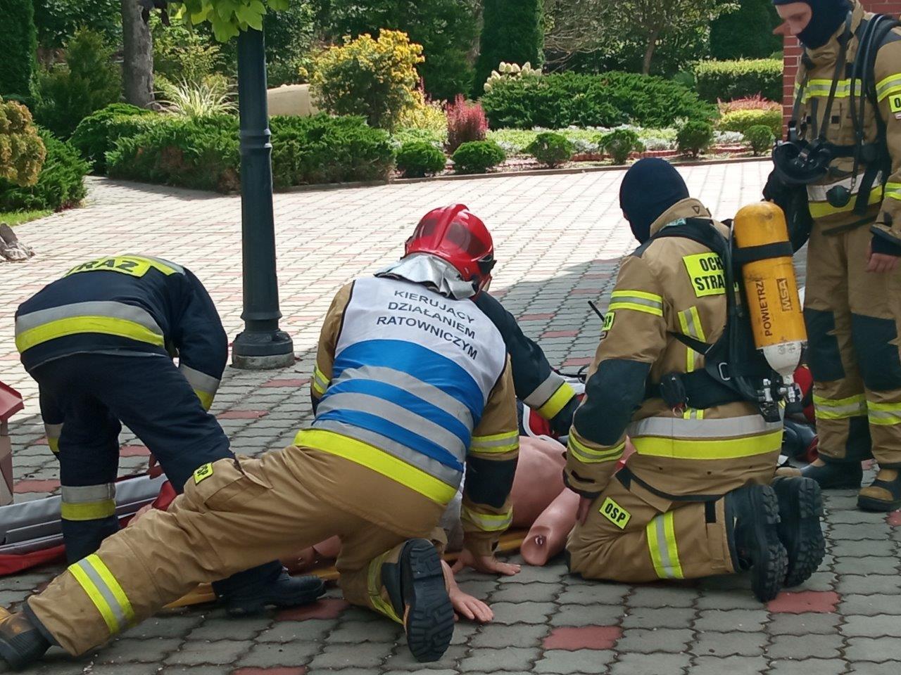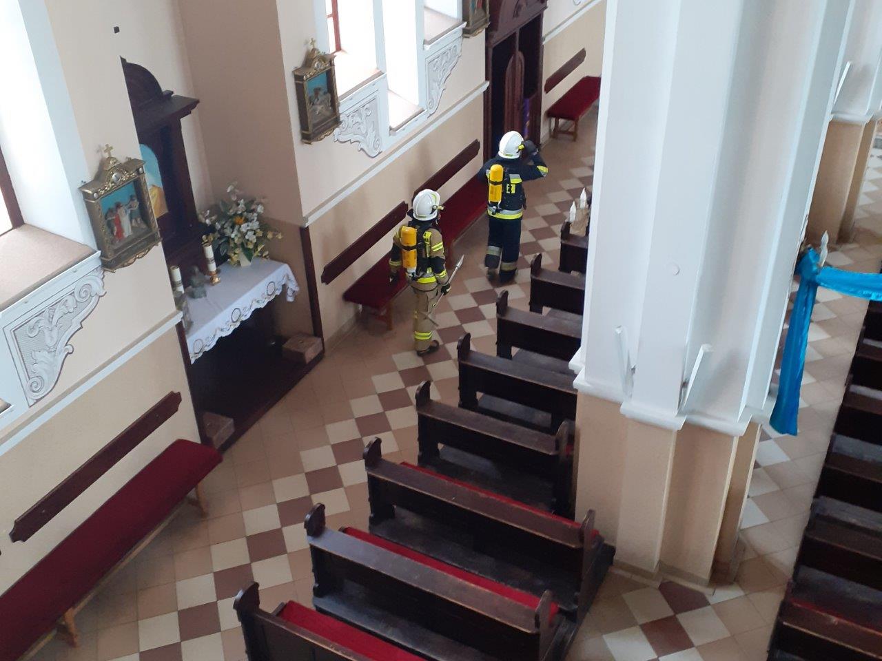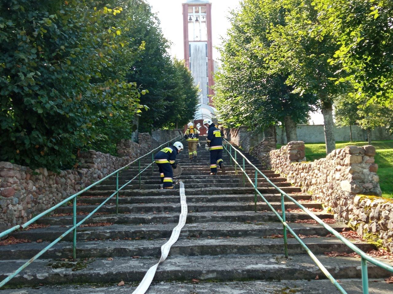 Scenariusz ćwiczeń zakładał, że na wieży kościoła wybuchł pożar, który rozprzestrzeniając się stwarzał zagrożenie dla pozostałej części obiektu. Wewnątrz kościoła panuje duże zadymienie – istnieje duże prawdopodobieństwo, że w strefie zagrożenia znajduje się 1 osoba.