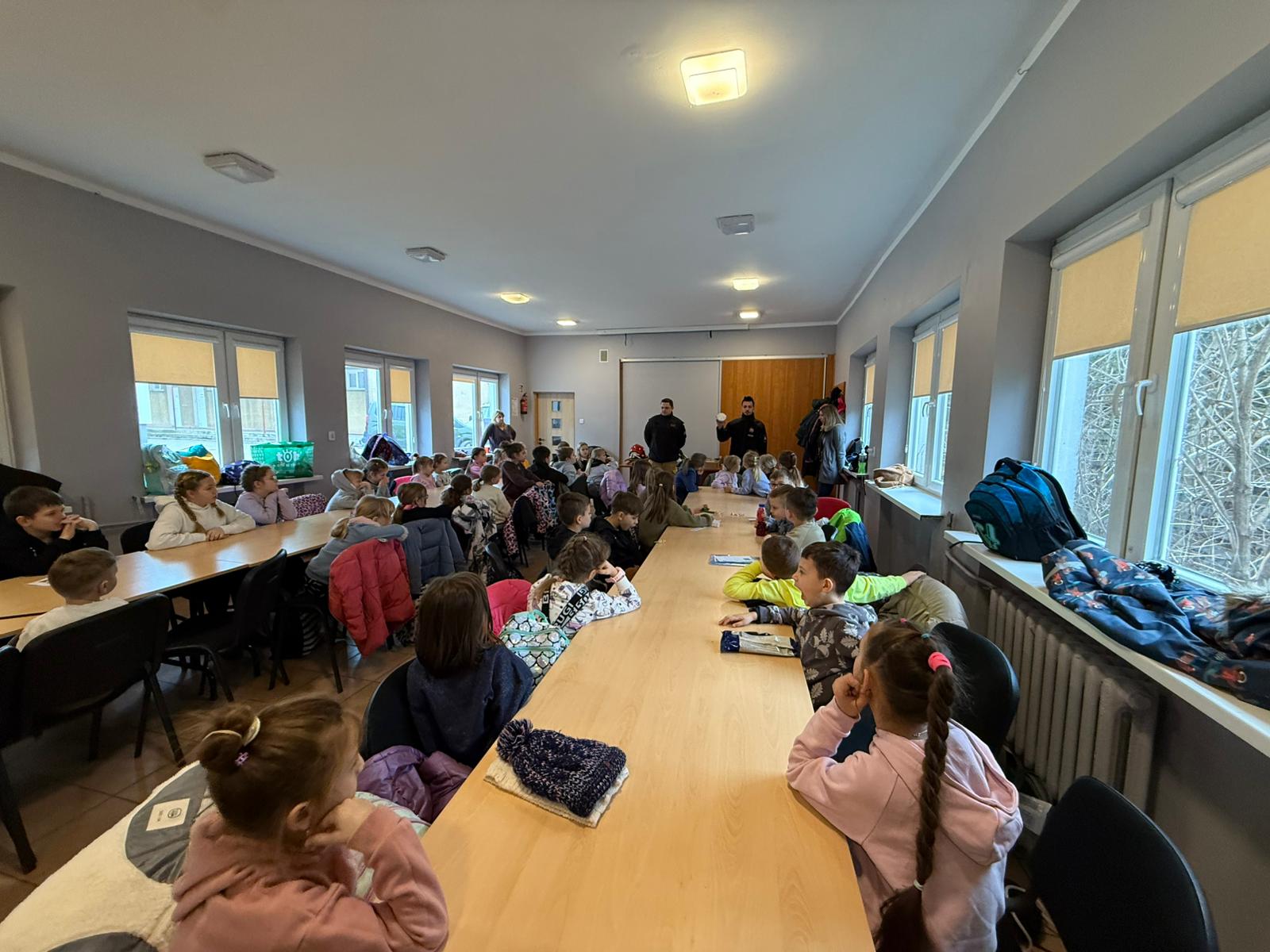 3 lutego 2025 r. strażacy Komendy Powiatowej PSP spotkali się z dziećmi uczestniczącymi w drugim turnusie półkolonii „Ferie w Mieście 2025” zorganizowanym przez Ośrodek Sportu i Rekreacji w Sokółce.