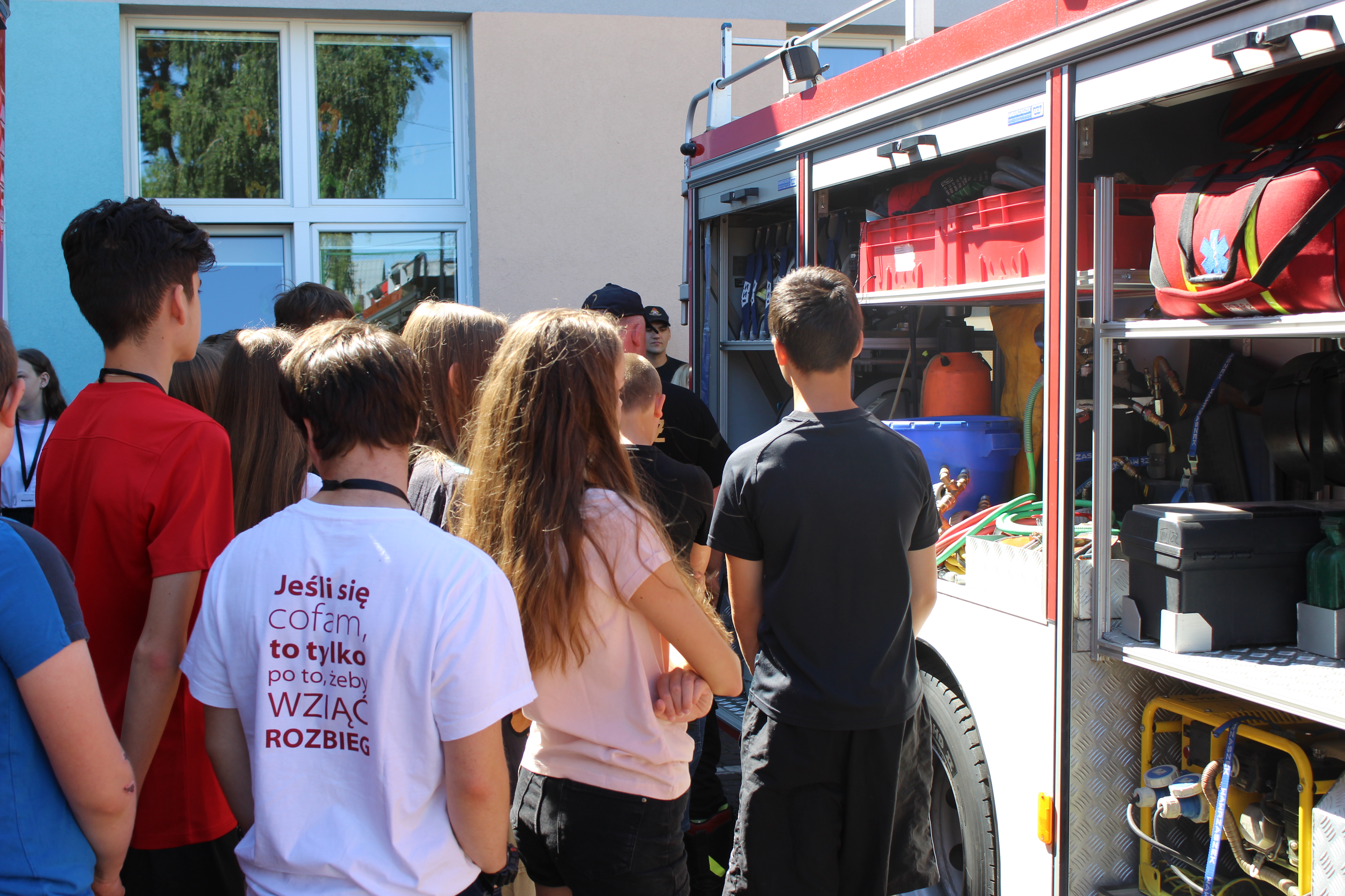 Na terenie Szkoły Podstawowej Nr 2 w Sokółce strażacy Jednostki Ratowniczo – Gaśniczej w Sokółce przeprowadzili pogadankę, podczas której poinstruowali uczestników, jak zachować się w obliczu różnego rodzaju niebezpieczeństw występujących podczas wakacji, w tym również sposobów zachowania podczas wypoczynku nad wodą. Następnie zaprezentowano i omówiono sprzęt znajdujący się na wyposażeniu wozów bojowych, zapoznano dzieci i młodzież ze specyfiką pracy strażaka, jego rolą w systemie bezpieczeństwa oraz profilaktyką w zakresie bezpieczeństwa pożarowego w życiu codziennym.