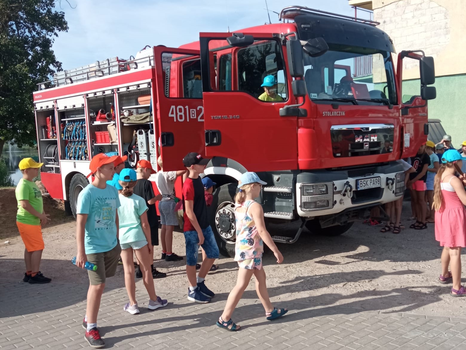 3 sierpnia 2022 r. strażacy Komendy Powiatowej PSP spotkali się z dziećmi uczestniczącymi w drugim turnusie półkolonii „Wakacje w Mieście 2022” zorganizowanym przez Ośrodek Sportu i Rekreacji w Sokółce.