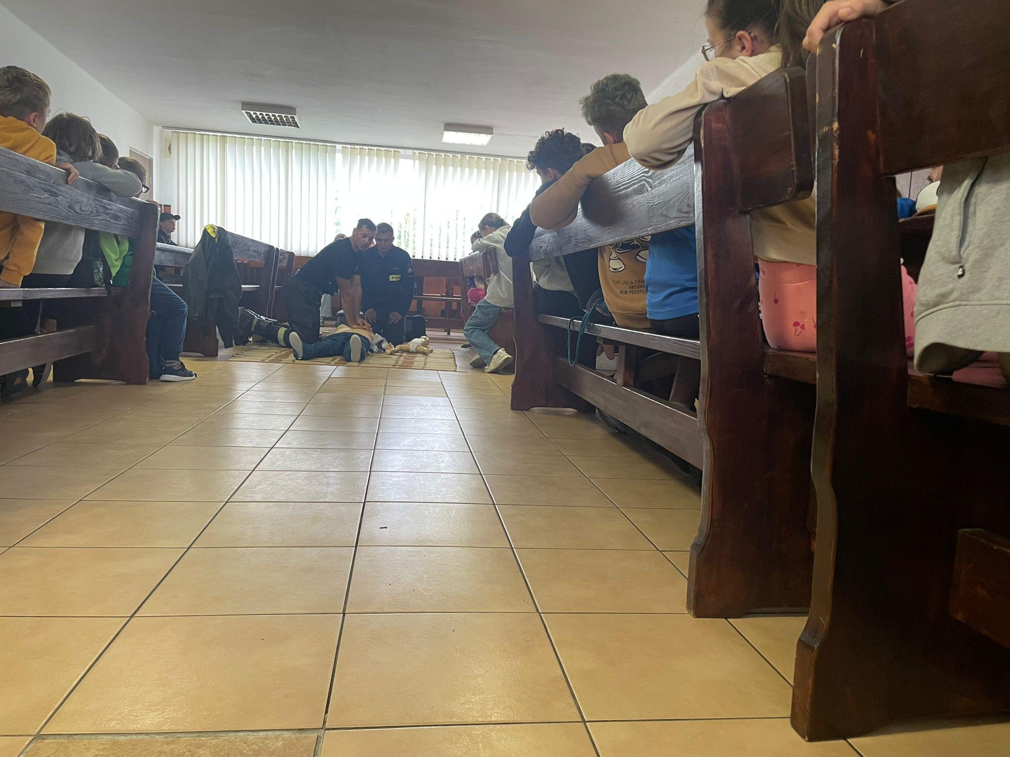 Nad zalewem wodnym w Sokółce strażacy Jednostki Ratowniczo – Gaśniczej w Sokółce wspólnie z funkcjonariuszami Komendy Powiatowej Policji w Sokółce przeprowadzili pogadankę, podczas której poinstruowali dzieci jak zachować się w obliczu różnego rodzaju niebezpieczeństw występujących podczas wakacji. Z uwagi na miejsce spotkania skupiono się na omówieniu sposobów bezpiecznego zachowania podczas wypoczynku nad wodą. Następnie z uwagi na warunki atmosferyczne, w budynku OSiR zaprezentowano zasady udzielania pierwszej pomocy medycznej, zapoznano dzieci ze specyfiką pracy strażaka, jego rolą w systemie bezpieczeństwa oraz profilaktyką w zakresie bezpieczeństwa pożarowego w życiu codziennym.