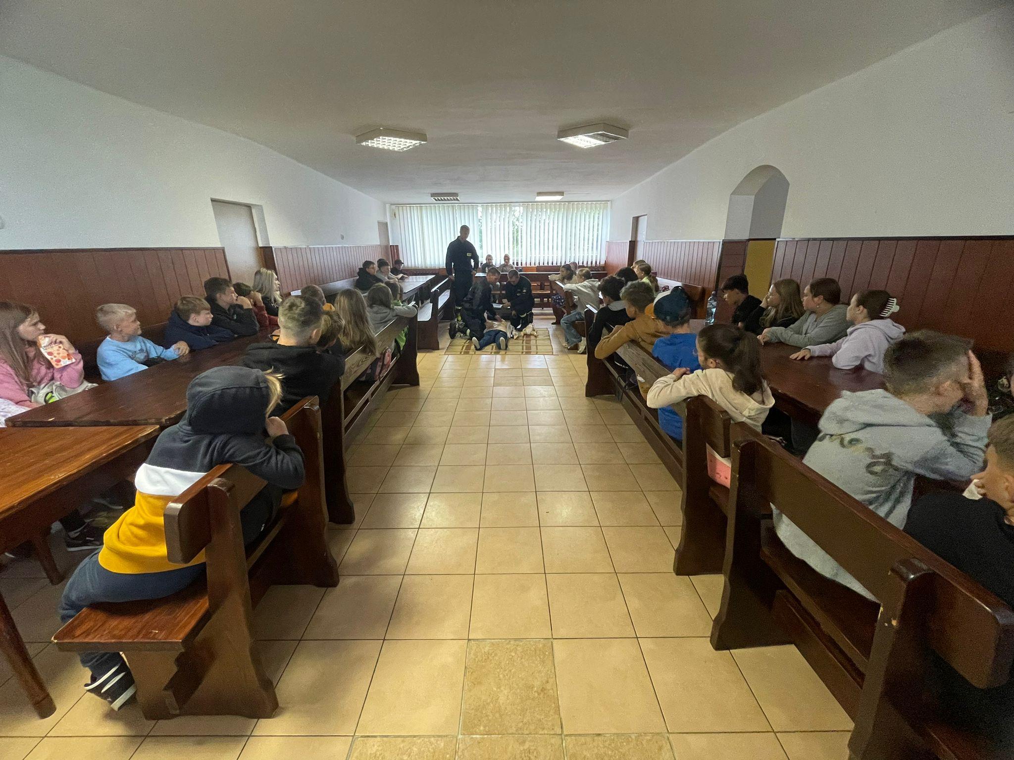 29 lipca 2024 r. strażacy Komendy Powiatowej PSP spotkali się z dziećmi uczestniczącymi w I turnusie półkolonii „Wakacje w Mieście 2024” zorganizowanym przez Ośrodek Sportu i Rekreacji w Sokółce.