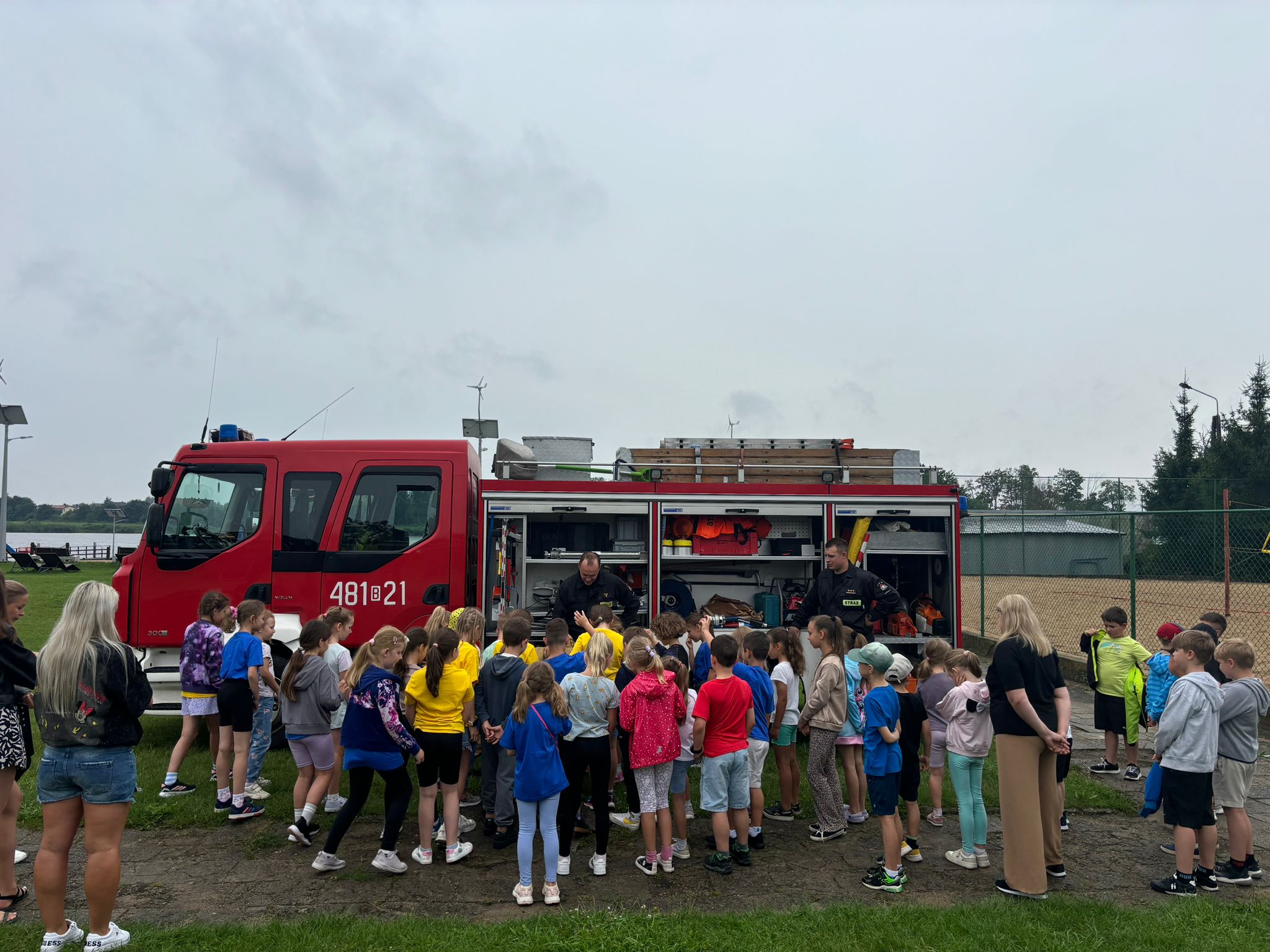 Jednak z uwagi na panujące niekorzystne warunki atmosferyczne, tym razem nie udało się przeprowadzić organizowanych corocznie praktycznych pokazów i zajęć z zakresu ratownictwa wodnego - przeprowadzono jednak pokazy sprzętu znajdującego się na wyposażeniu samochodu strażackiego.