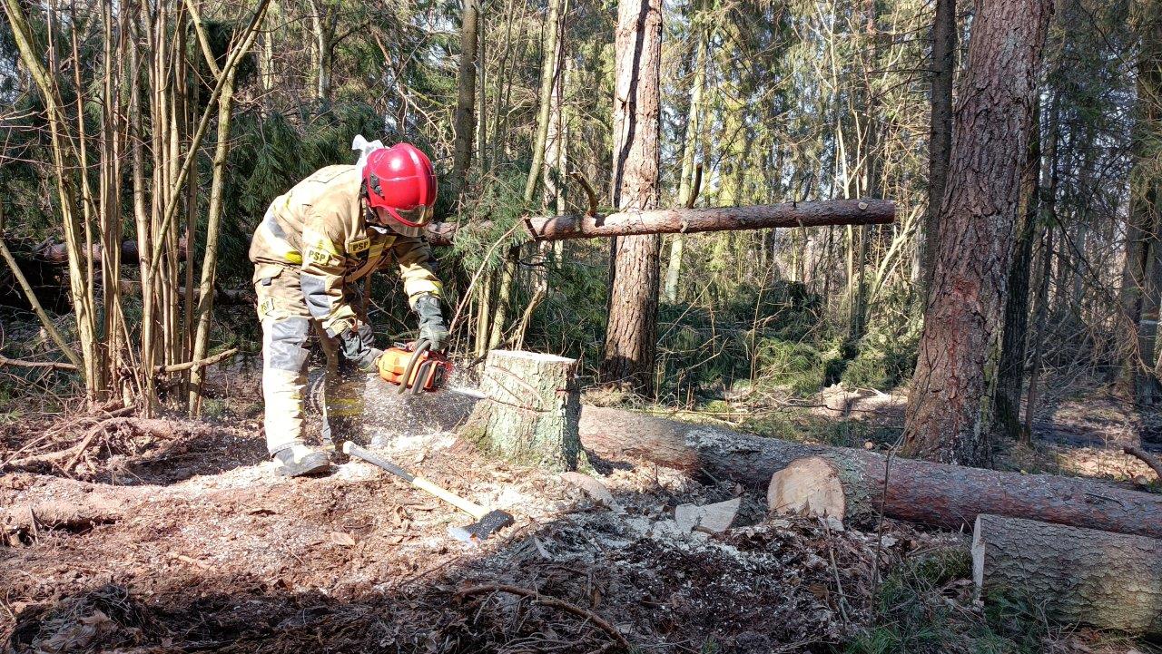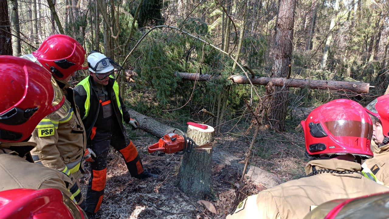 Szkolenie doskonalące strażaków PSP z zakresu usuwania wiatrołomów.