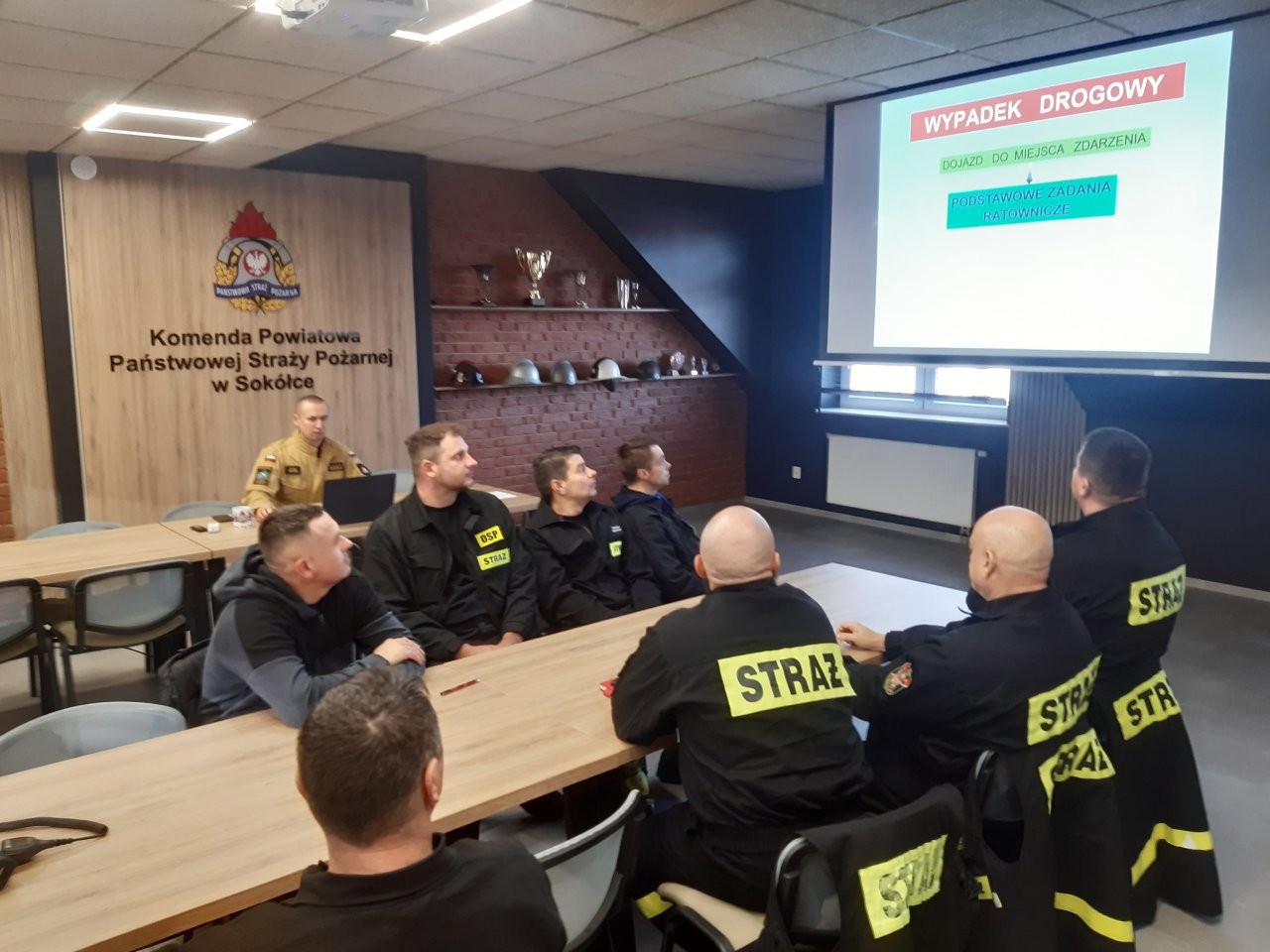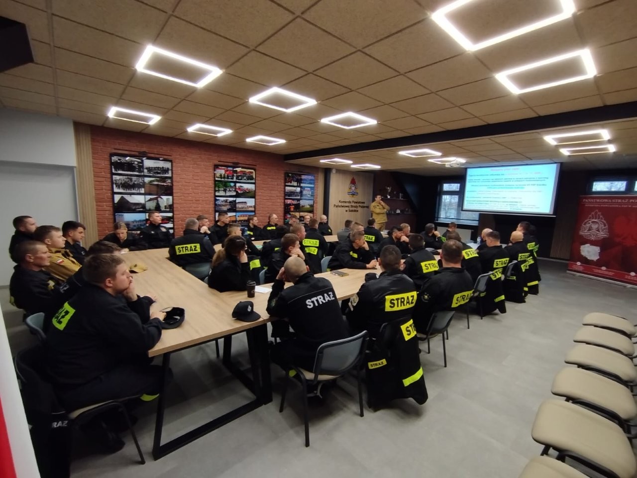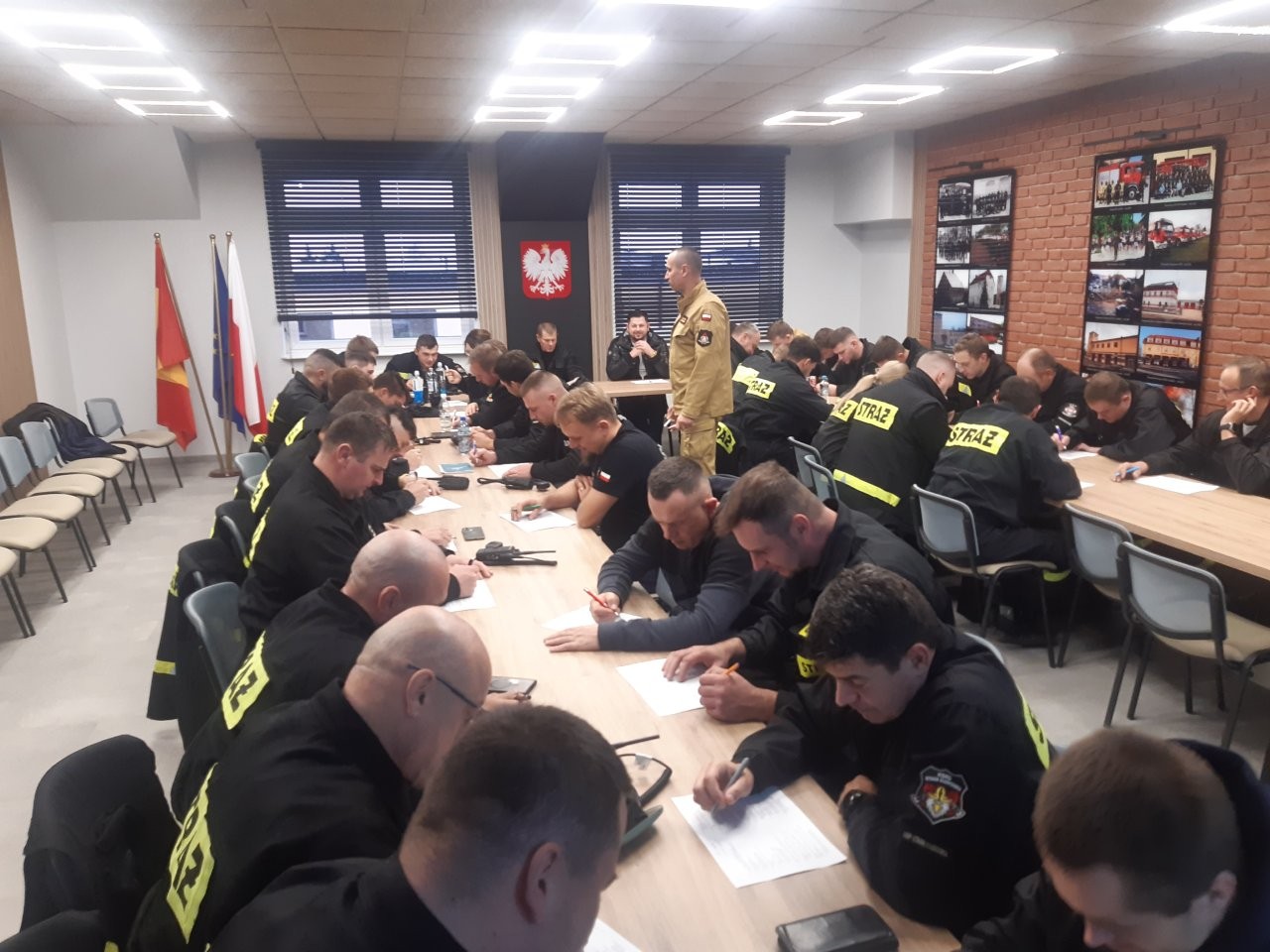16 listopada 2025 roku egzaminem teoretycznym zakończyło się szkolenie kierującego działaniem ratowniczym (dowódcy OSP) dla strażaków ratowników Ochotniczych Straży Pożarnych z terenu powiatu sokólskiego.