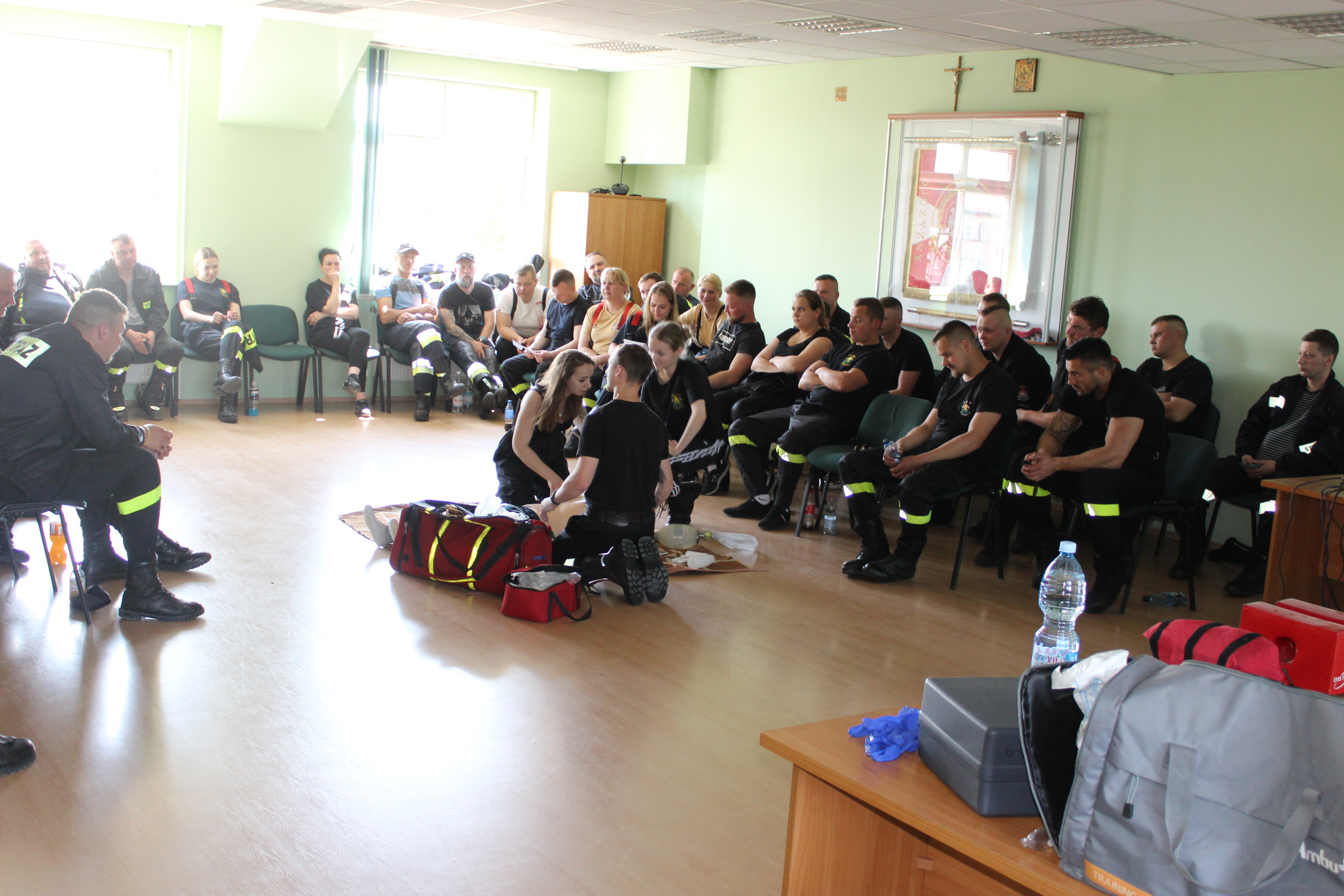 Przeprowadzono również szkolenie podstawowe abonentów sieci radiowej ochrony przeciwpożarowej jednostek Ochotniczych Straży Pożarnych, szkolenie z zakresu udzielania pomocy medycznej, oraz szkolenie dotyczące zasad współdziałania ze śmigłowcami Lotniczego Pogotowia Ratunkowego.