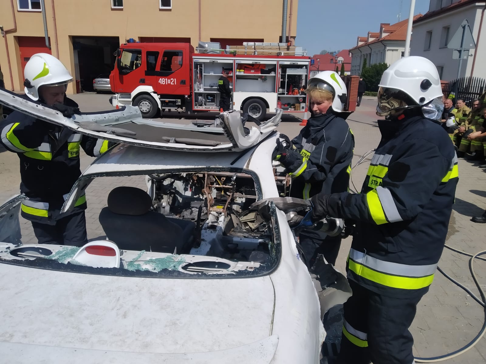 Natomiast podczas zajęć z zakresu ratownictwa technicznego zapoznano się z zasadami pracy zestawami hydraulicznymi i pneumatycznymi, taktyką prowadzenia działań ratowniczych podczas wypadków komunikacyjnych oraz metodami uwalniania osób poszkodowanych, uwięzionych w rozbitych samochodach.