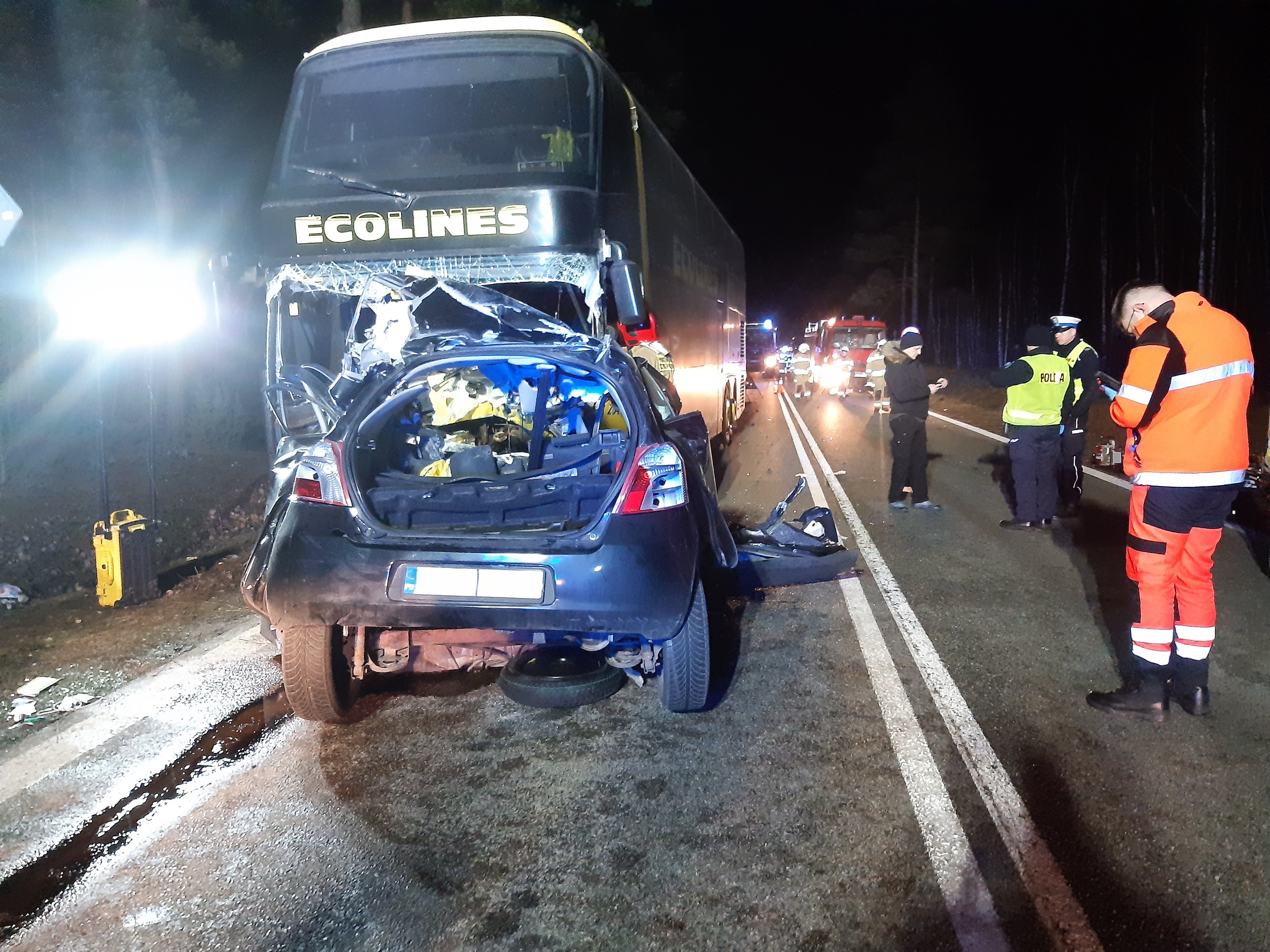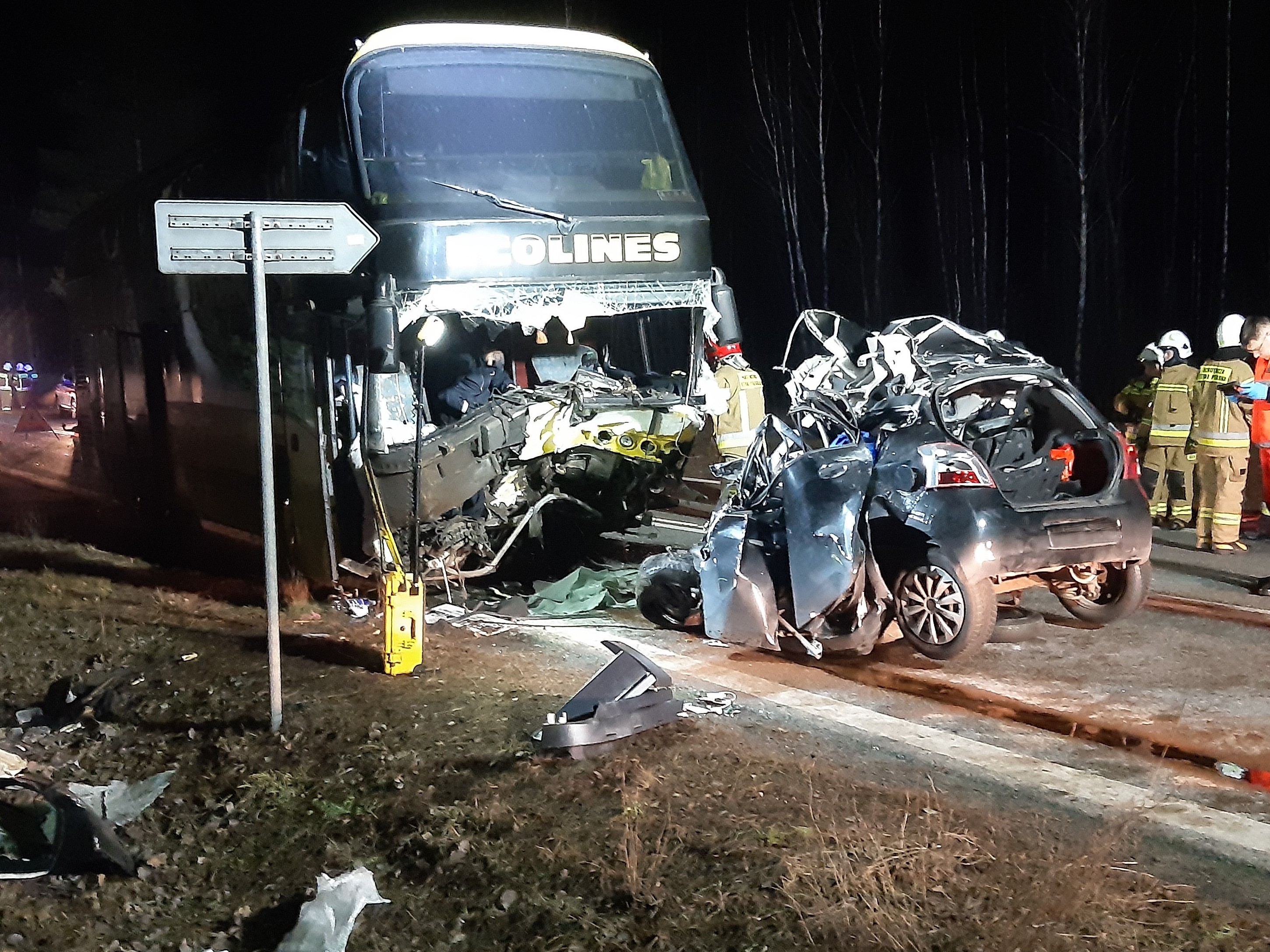 Do zdarzenia zadysponowano w pierwszym rzucie zastęp GBARt z JRG Sokółka oraz 3 zastępy z najbliższych jednostek OSP z terenu gminy Korycin. Po dojechaniu na miejsce zdarzenia stwierdzono, że doszło do czołowego zderzenia samochodu osobowego z autobusem. Kierowca podróżujący samochodem osobowym poniósł śmierć na miejscu – obecny na miejscu zdarzenia ratownik medyczny rozpoznał zgon 18 letniego mężczyzny. Natomiast autobusem podróżowało łącznie 10 osób (8 pasażerów narodowości litewskiej i łotewskiej oraz 2 kierowców) - kierowca był uwięziony wewnątrz pojazdu, a pozostałe osoby opuściły go przed przybyciem straży. Po ocenie stanu podróżnych przez Pogotowie Ratunkowe – udzielono pomocy medycznej 2 osobom, nie wymagały one jednak hospitalizacji i pozostały na miejscu zdarzenia.