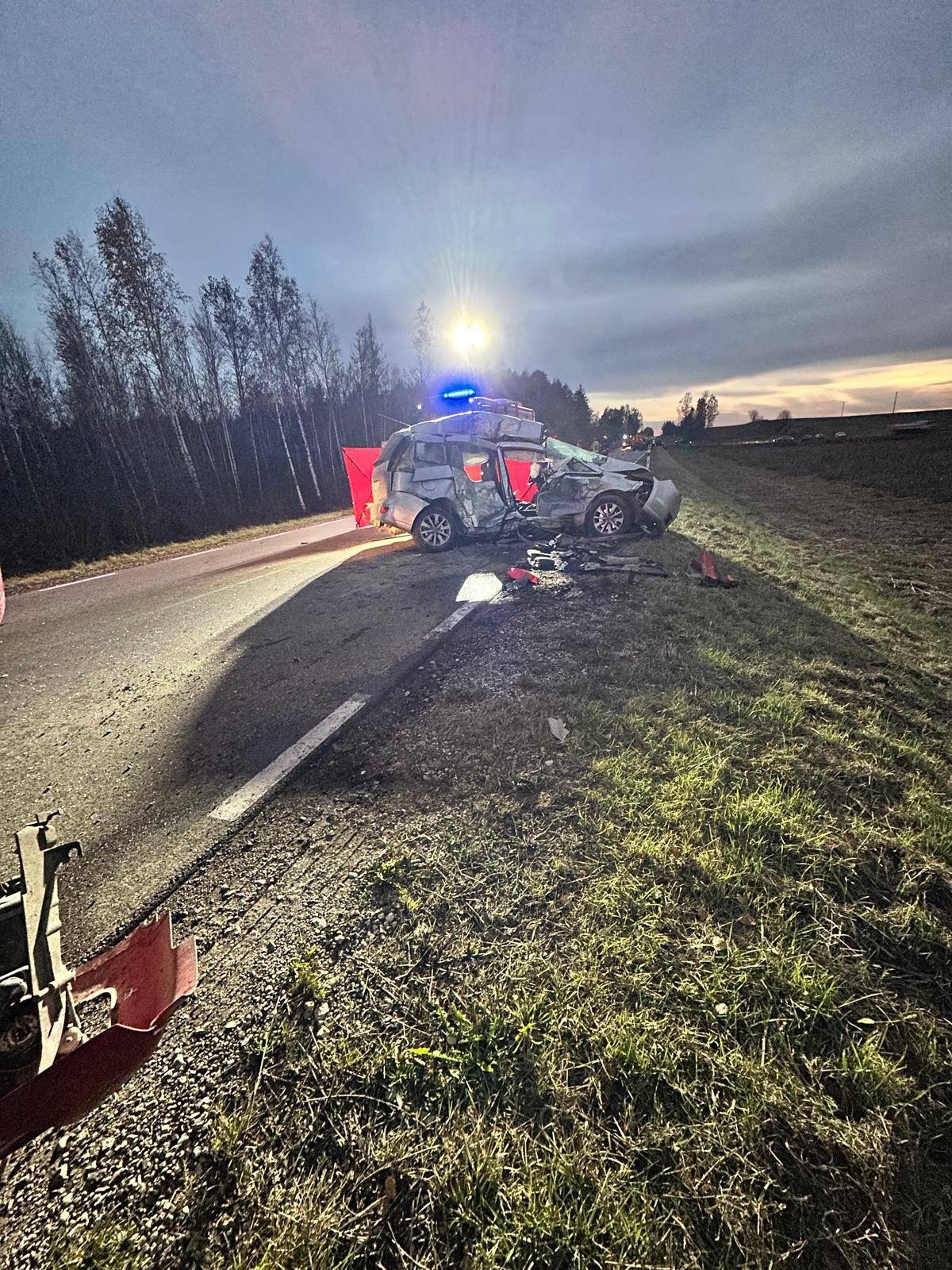 Tragiczny wypadek na drodze wojewódzkiej Nr 673 w okolicach miejscowości Szuszalewo, gm. Dąbrowa Białostocka.