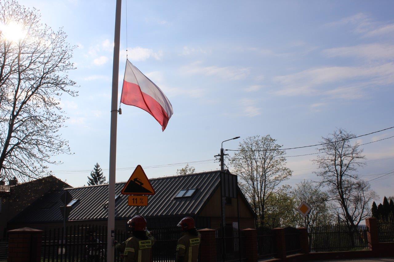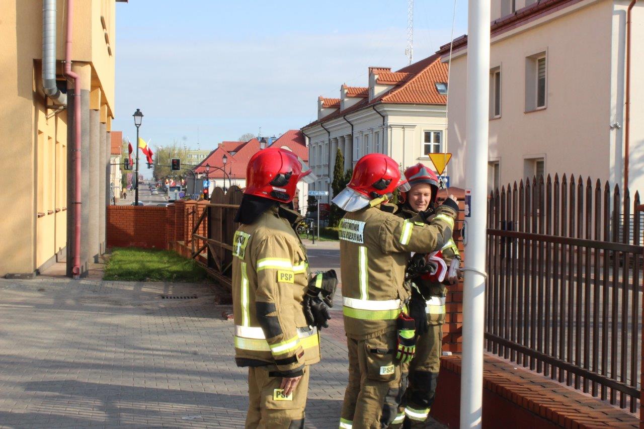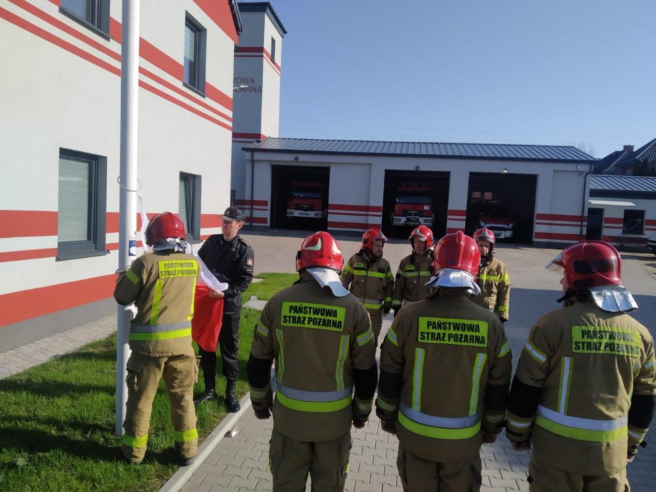 Strażacy Państwowej Straży Pożarnej uczcili w ten sposób Dzień Flagi Rzeczypospolitej Polskiej, wyrażając szacunek do symboli narodowych.