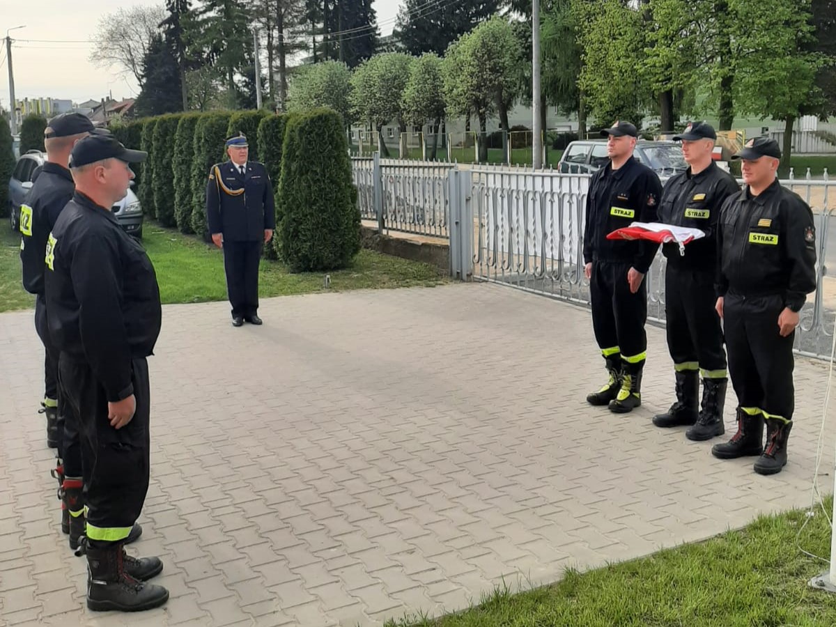 Strażacy Państwowej Straży Pożarnej uczcili w ten sposób Dzień Flagi Rzeczypospolitej Polskiej, wyrażając szacunek do symboli narodowych.