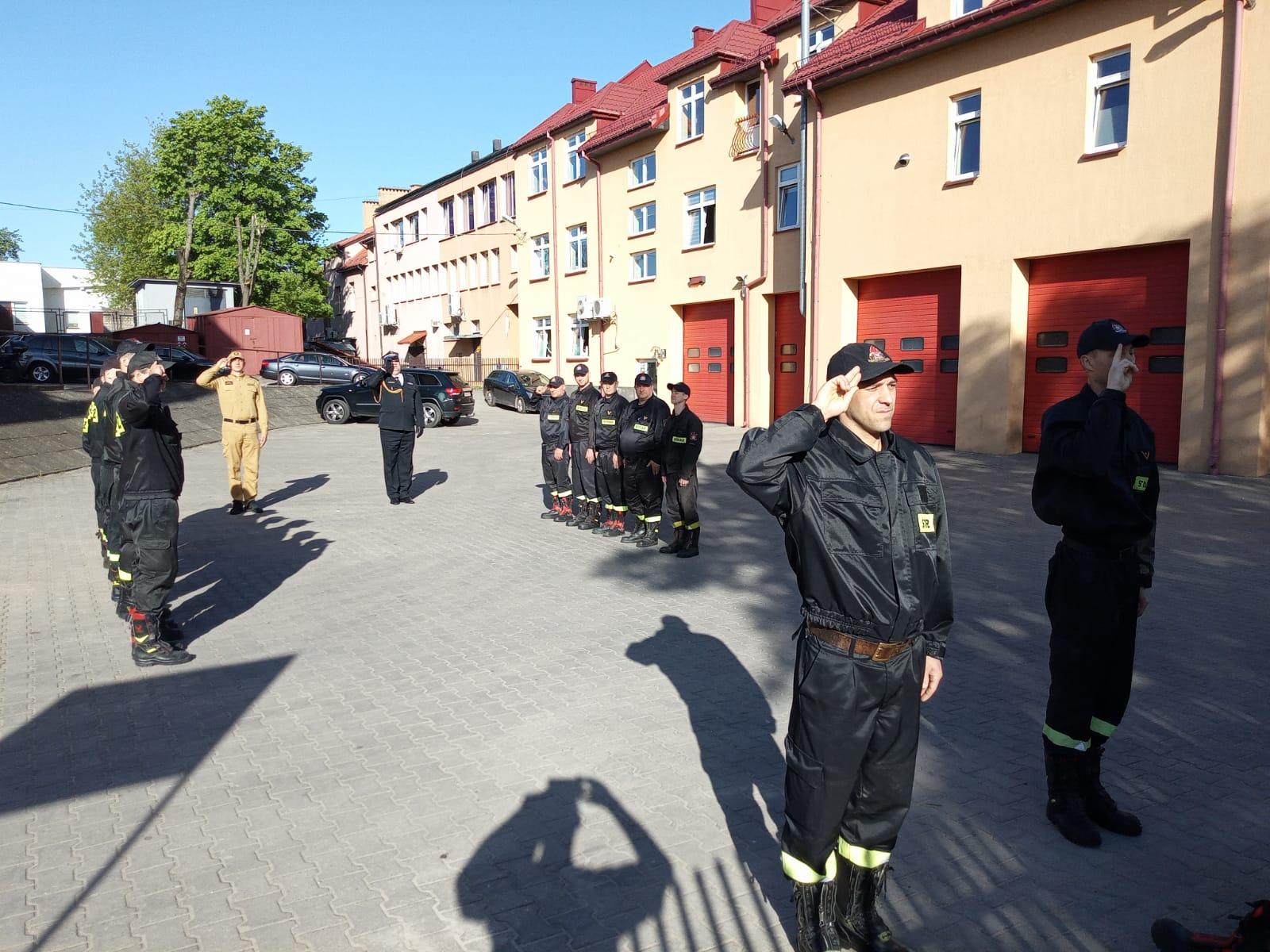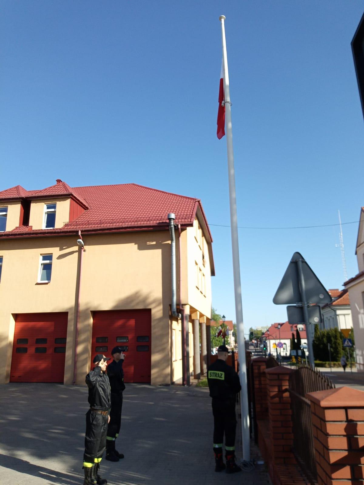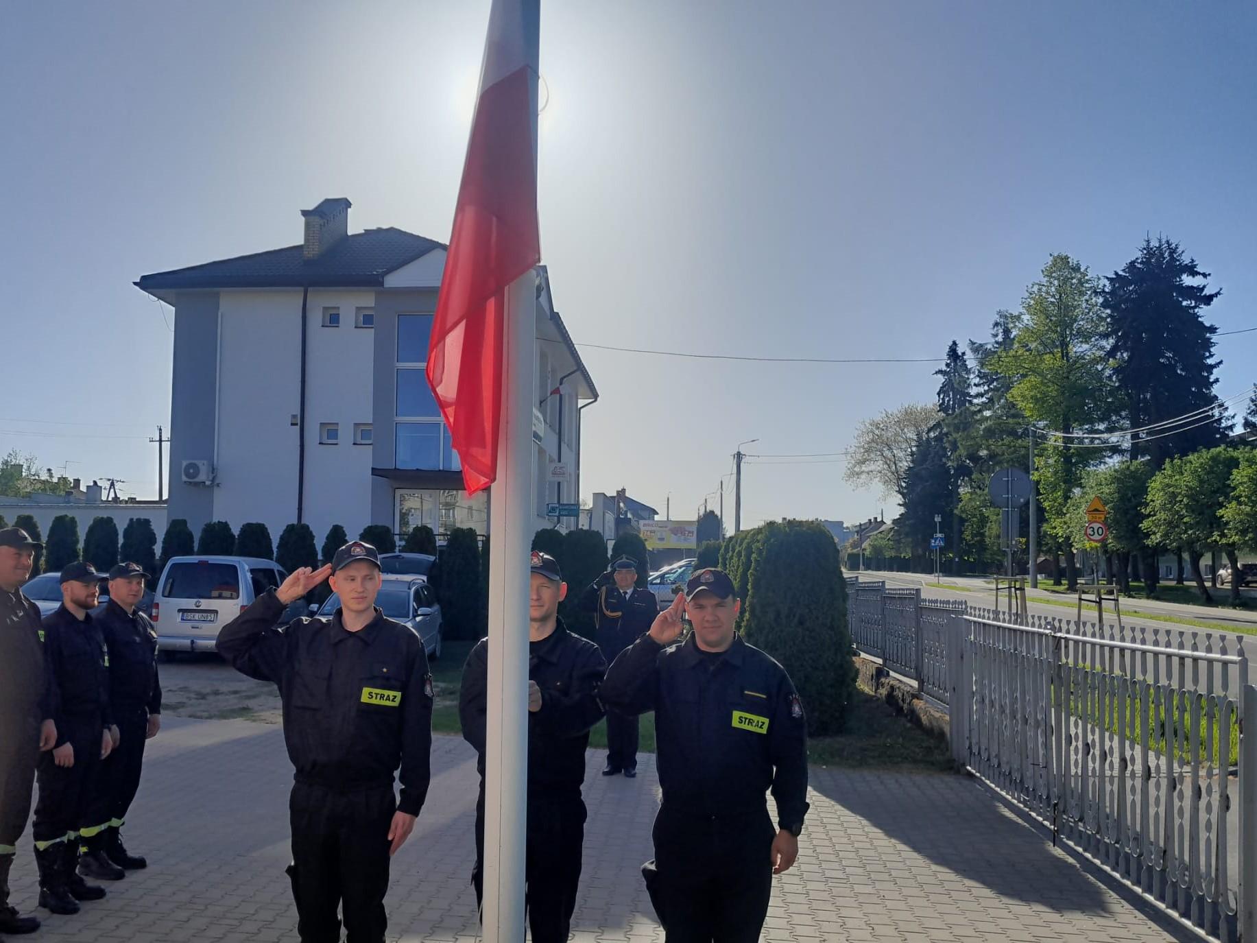 Strażacy Państwowej Straży Pożarnej uczcili w ten sposób Dzień Flagi Rzeczypospolitej Polskiej, wyrażając szacunek do symboli narodowych.