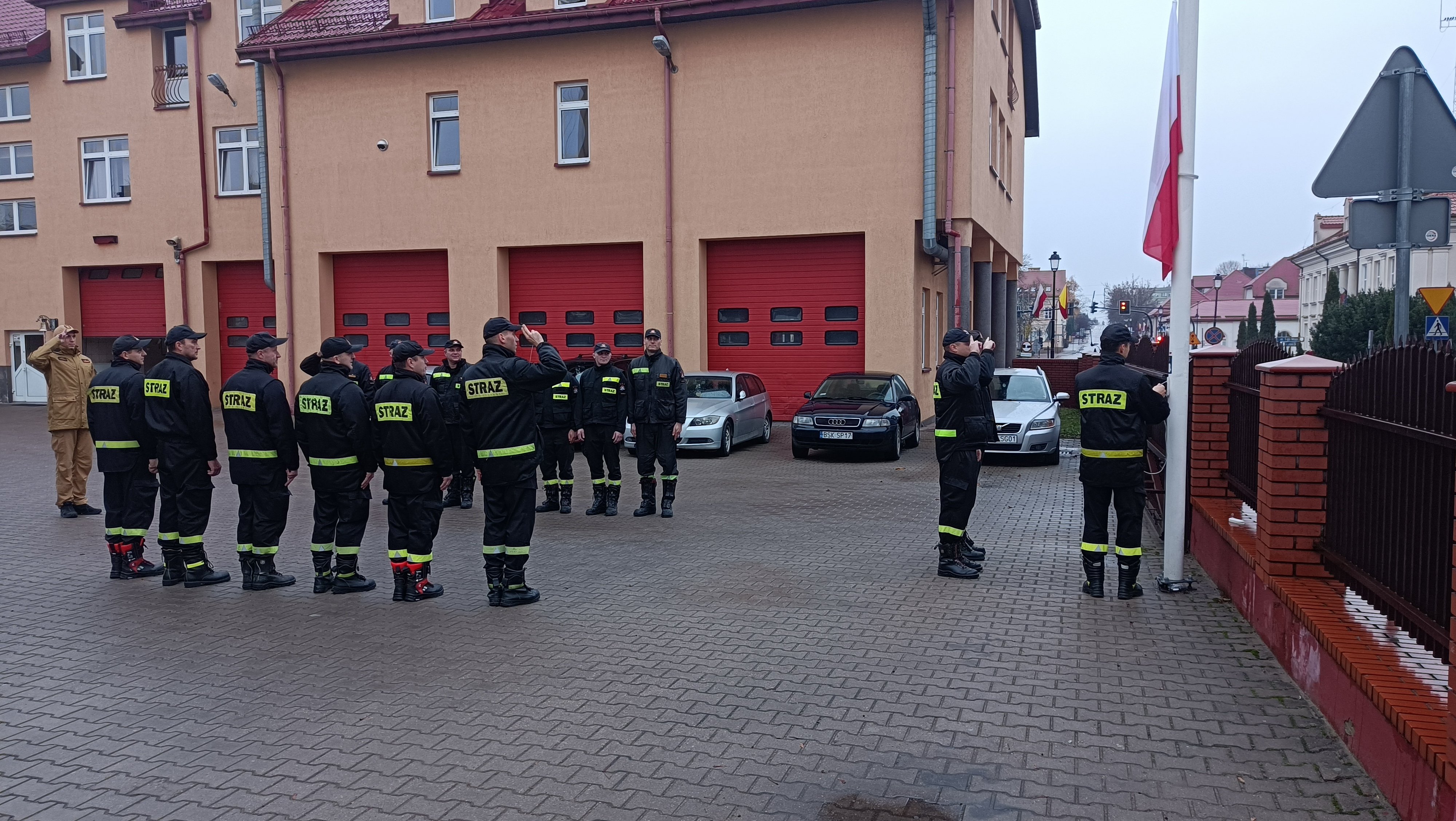 O godzinie 7.30 podczas zmiany służby w JRG Sokółka i na Posterunku w Dąbrowie Białostockiej z udziałem dowództwa JRG nastąpiło uroczyste podniesienie flagi państwowej na maszty oraz odśpiewanie hymnu państwowego.