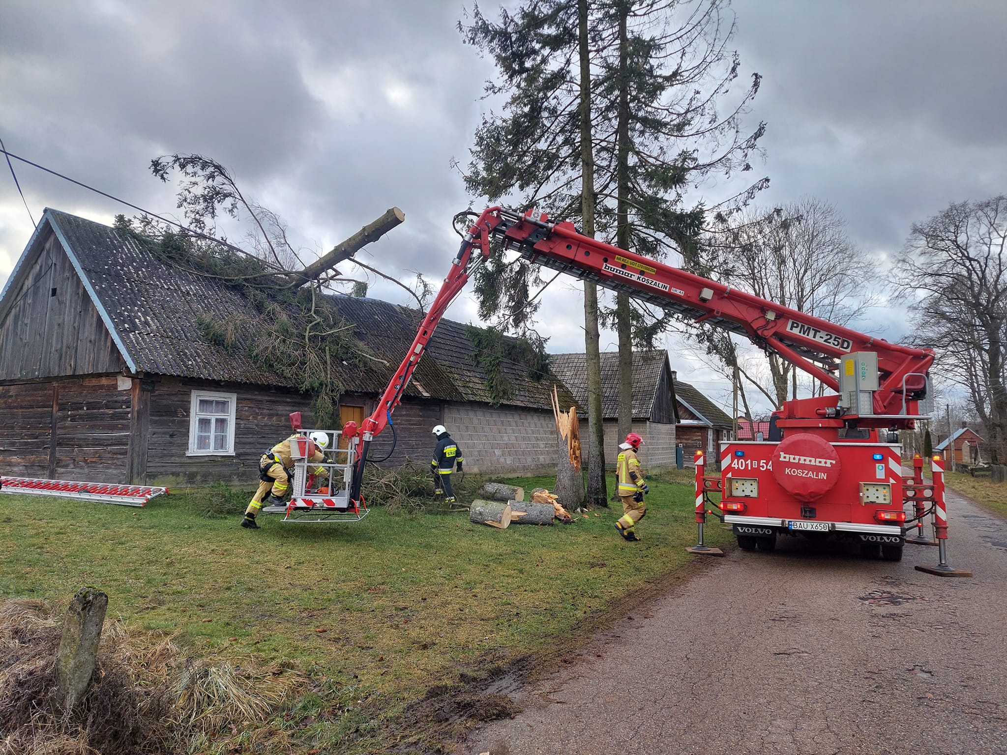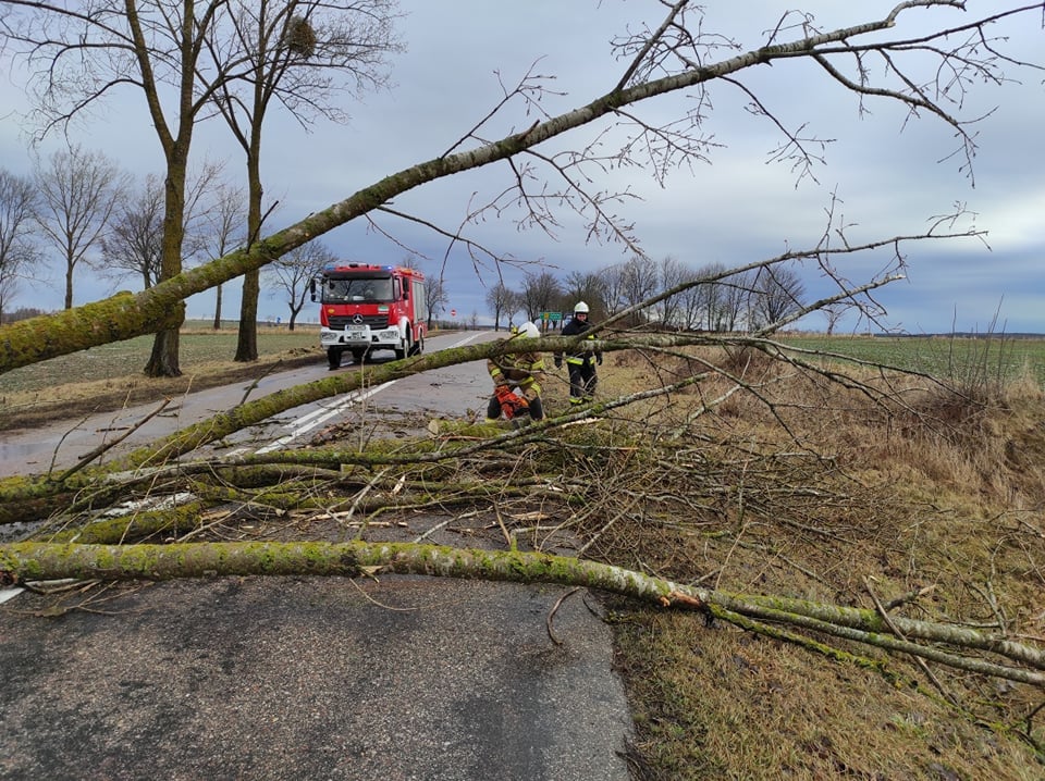 14 stycznia 2022 roku w wyniku silnego wiatru jaki przetoczył się przez teren powiatu sokólskiego jednostki ochrony przeciwpożarowej zanotowały 18 interwencji, które były podejmowane przez zastępy Państwowej Straży Pożarnej z JRG Sokółka i Posterunku w Dąbrowie Białostockiej oraz jednostki Ochotniczych Straży Pożarnych z Janowa, Starej Kamionki, Szudziałowa, Jacowlan, Sidry, Reszkowiec, Olszy, Czerwonki, Krynek, Kuźnicy, Słojnik, Domurat. Pierwsze zgłoszenia SK KP PSP w Sokółce otrzymało o godz. 11:05, a skutki zdarzeń usuwano do godzin wieczornych. Silna wichura uszkodziła dachy 4 budynków gospodarczych. Do powyższych zdarzeń doszło w miejscowościach Nierośno, Woroniany i Słojniki. W miejscowości Czerwonka drzewo spadło na budynek mieszkalny uszkadzając częściowo pokrycie dachowe, a w Sokółce uszkodziło samochód osobowy. Podmuchy uszkodziły także maszt antenowy w miejscowości Krynki. Strażacy również w jednym przypadku na terenie gminy Szudziałowo zapewnili zasilanie przy użyciu agregatu prądotwórczego koncentratora tlenu dla osoby chorej z uwagi na długotrwały zanik prądu spowodowany awarią sieci energetycznej. Pozostałe zdarzenia były związane z usuwaniem powalonych drzew i złamanych konarów, które tarasowały przejazd drogami. Spadające drzewa zrywały również linie energetyczne. Na szczęście w tych wszystkich zdarzeniach nie było osób poszkodowanych. W działaniach udział brało 90 strażaków z 14 jednostek ochrony przeciwpożarowej powiatu sokólskiego.