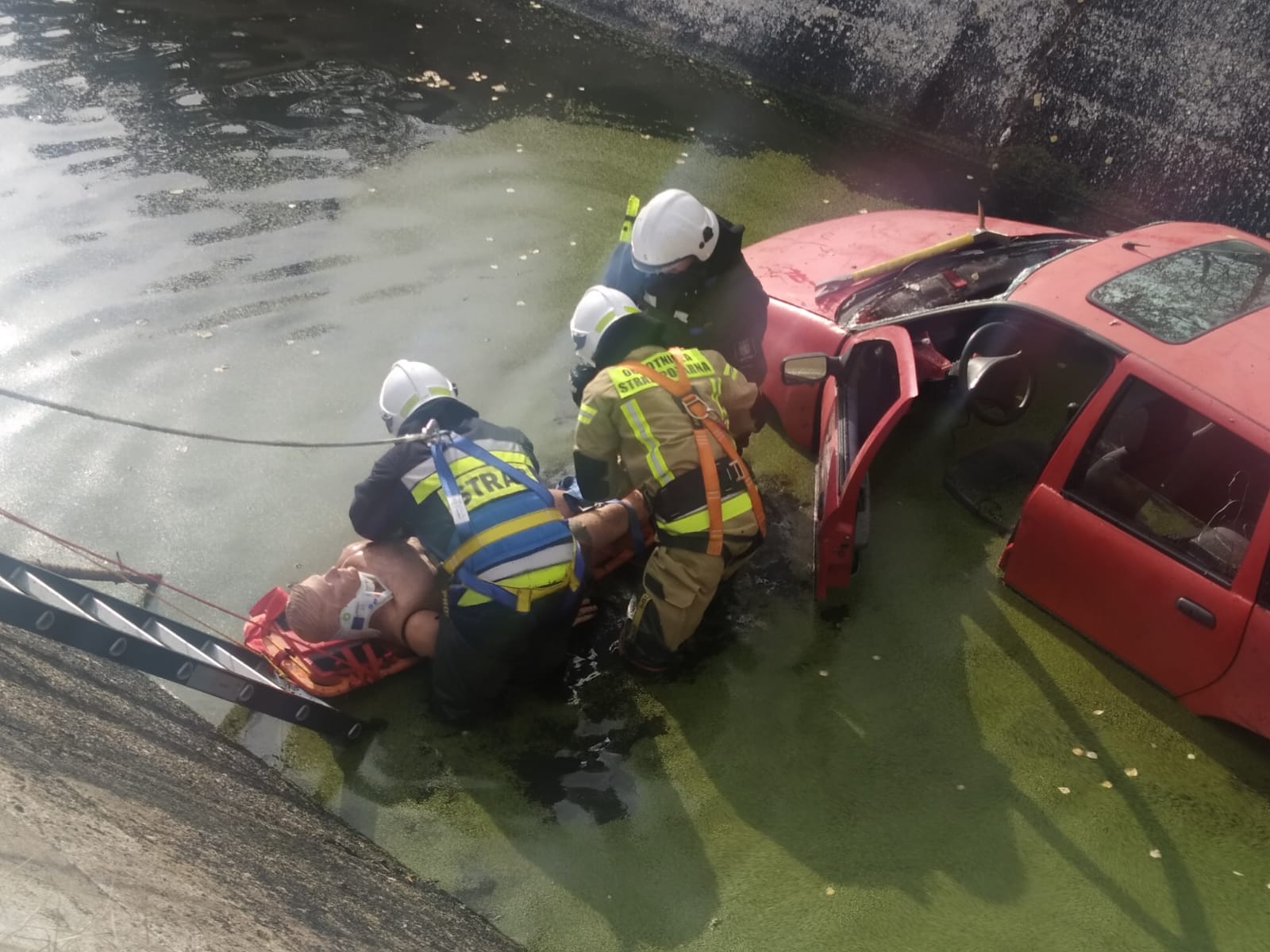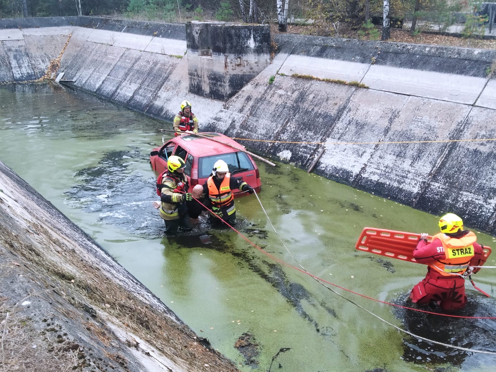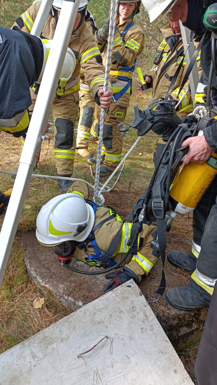 Pierwszy epizod pk. „ZBIORNIK” zakładał, że podczas przejażdżki offroadowej na terenie obszarów leśnych w pobliżu Sokółki – w wyniku nadmiernej prędkości oraz nieuwagi dochodzi do zderzenia pojazdu typu UTV ze znajdującą się tam konstrukcją betonowego zbiornika wodnego. W wyniku zdarzenia pojazd z impetem wpada do głębokiego basenu i stoi kołami na dnie. Głębokość wody wynosi około 0,5 metra. Wewnątrz pojazdu zostaje uwięziony kierowca – nie może opuścić kabiny z uwagi na zablokowane drzwi, zostaje poszkodowany w wyniku zdarzenia. Na miejscu zdarzenia znajduje się świadek (grzybiarz), który nie jest w stanie pomóc osobie poszkodowanej z uwagi na strome ściany zbiornika i brak możliwości zejścia do wody – powiadamia o zdarzeniu służby ratownicze. Nawiązuje również kontakt z półprzytomnym kierowcą i otrzymuje informację, że pojazdem podróżowała jeszcze jedna osoba – po zdarzeniu nie ma jej w kabinie. Z chwilą przybycia sił i środków JOP na miejsce zdarzenia - świadek wskazuje miejsce wpadnięcia pojazdu do wody, nie jest w stanie powiedzieć, gdzie znajduje się pasażer pojazdu. Zadaniem przybyłych na miejsce zdarzenia zespołów było bezpieczne dotarcie ratowników na dno zbiornika, dostarczenie tam niezbędnego sprzętu ratowniczego, wykonanie dostępu do poszkodowanego w pojeździe poprzez otwarcie drzwi za pomocą sprzętu specjalistycznego, przeszukanie okolic miejsca zdarzenia i dna zbiornika w celu lokalizacji zaginionego pasażera pojazdu, ewakuacja kierowcy z wnętrza pojazdu, a następnie poszkodowanych z dna zbiornika poza strefę zagrożenia po drabinach lub za pomocą technik wysokościowych z zabezpieczeniem poszkodowanych i ratowników przed upadkiem, a także udzielenie kwalifikowanej pierwszej pomocy medycznej.