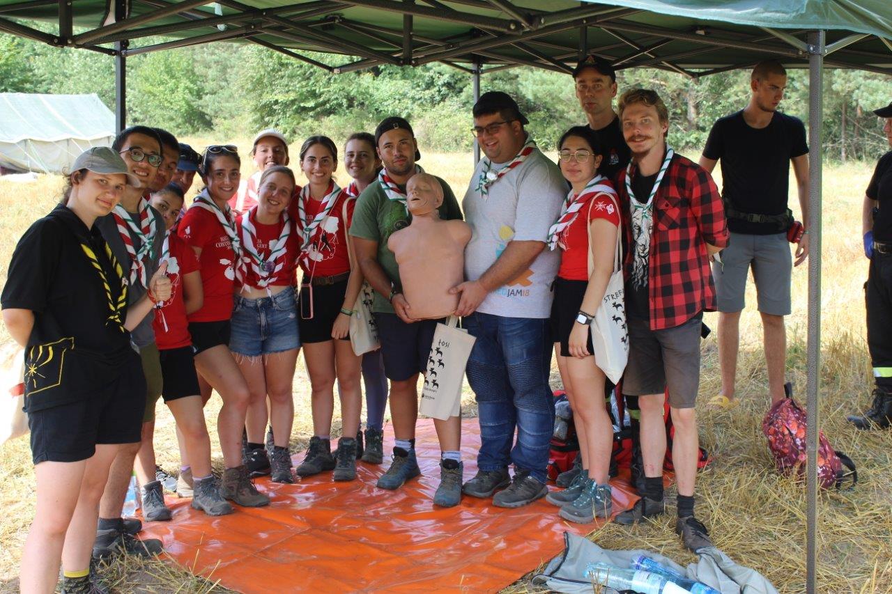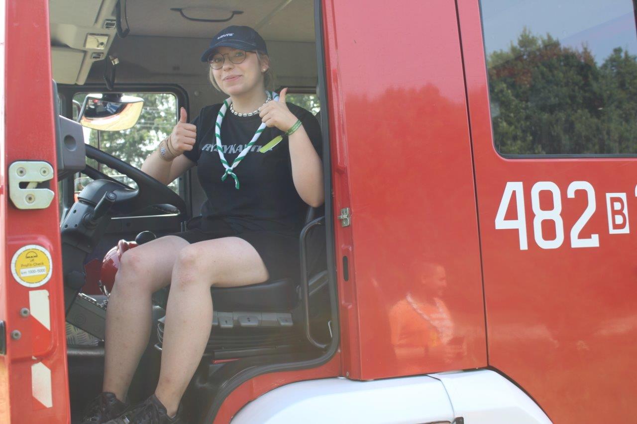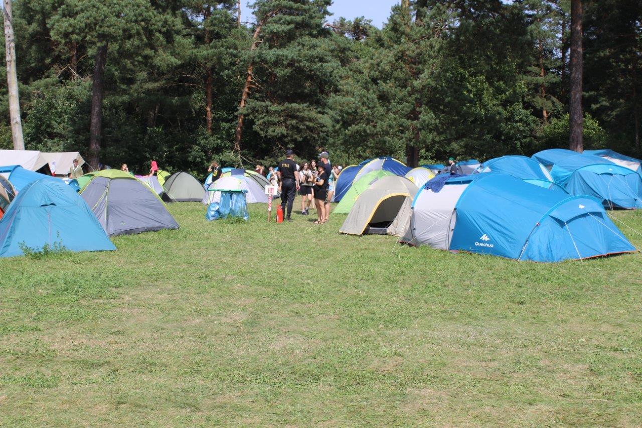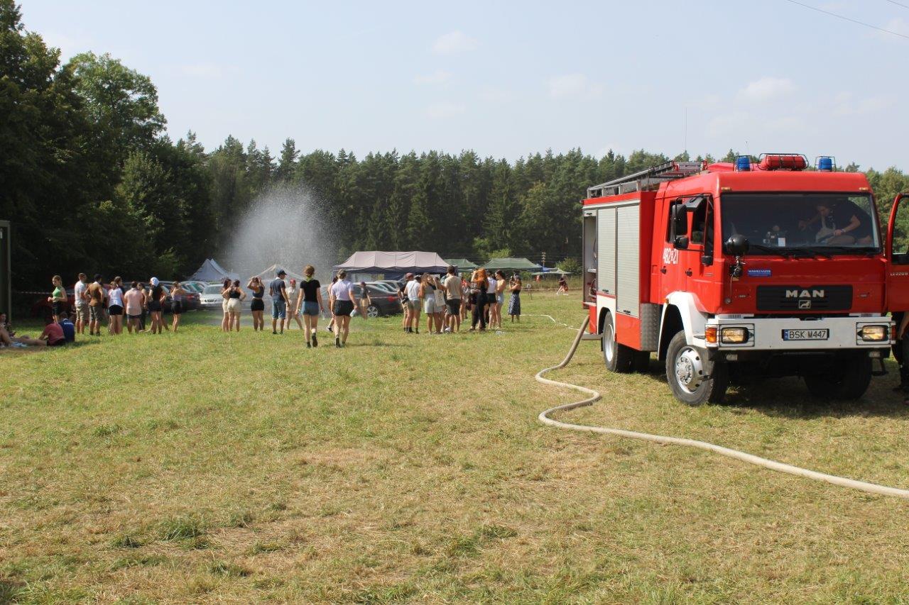 24 sierpnia 2022 r. strażacy Wydziału Operacyjnego i Przeciwdziałania Zagrożeniom Komendy Powiatowej PSP w Sokółce oraz Posterunku JRG Sokółka w Dąbrowie Białostockiej wraz z funkcjonariuszami Policji przeprowadzili wizytację obozu harcerskiego w Kamiennej Nowej.