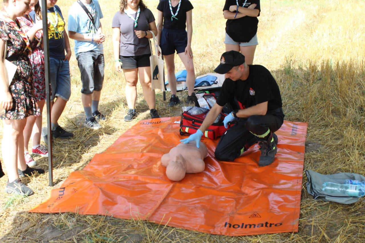 Realizując działania edukacyjne w ramach prewencji społecznej, strażacy PSP zorganizowali pokazy z zakresu udzielania pomocy medycznej, przeprowadzili również pogadankę dotyczącą zasad bezpieczeństwa podczas letniego wypoczynku nad wodą i w lesie, omówili zasady postępowania na wypadek powstania pożaru lub innego miejscowego zagrożenia na terenie obozu ze szczególnym uwzględnieniem niebezpiecznych zjawisk atmosferycznych, użycia podręcznego sprzętu gaśniczego i alarmowania służb przy wykorzystaniu numeru alarmowego 112. Zaprezentowano i omówiono również sprzęt znajdujący się na wyposażeniu wozu bojowego Posterunku JRG Sokółka w Dąbrowie Białostockiej.