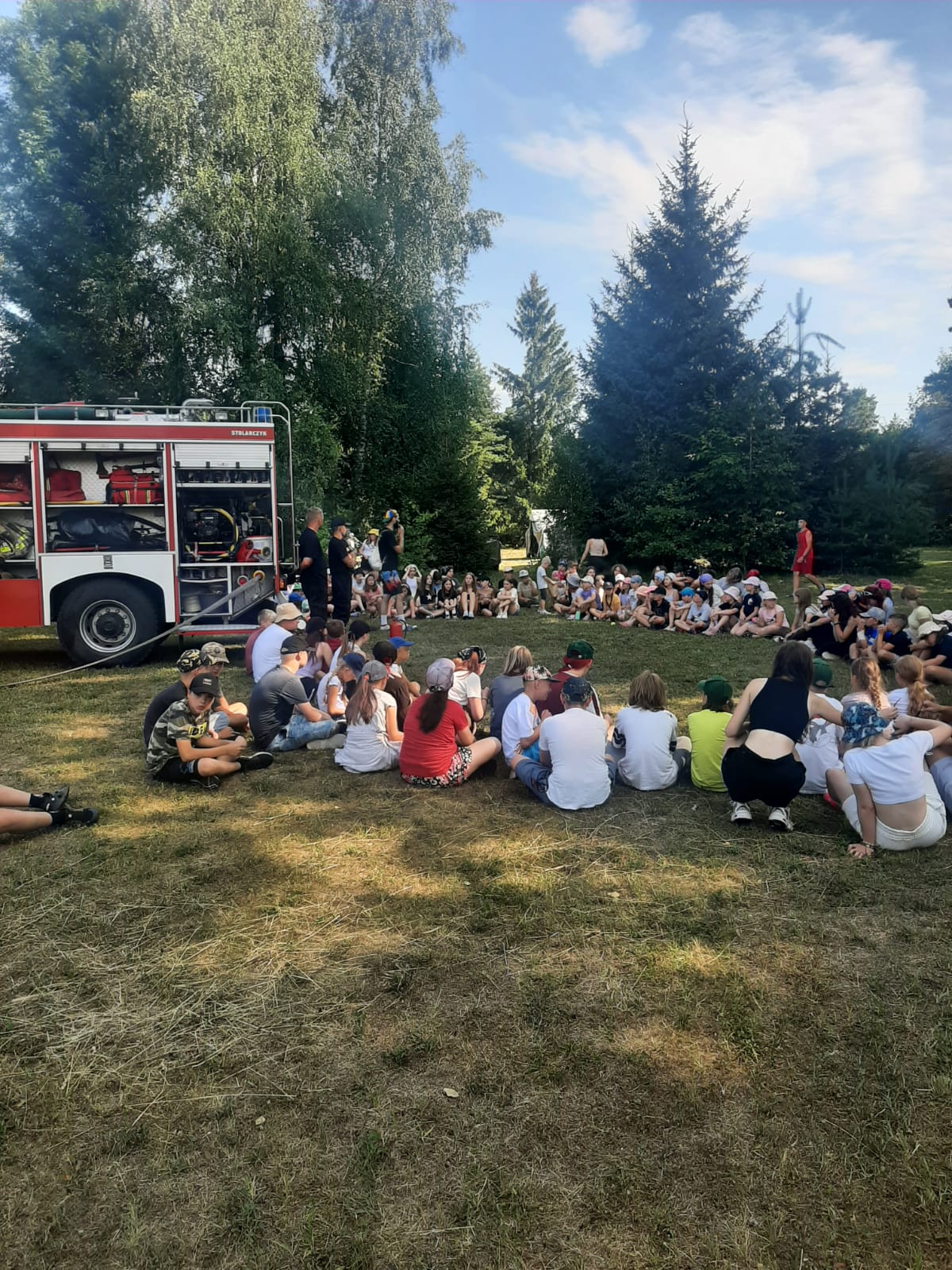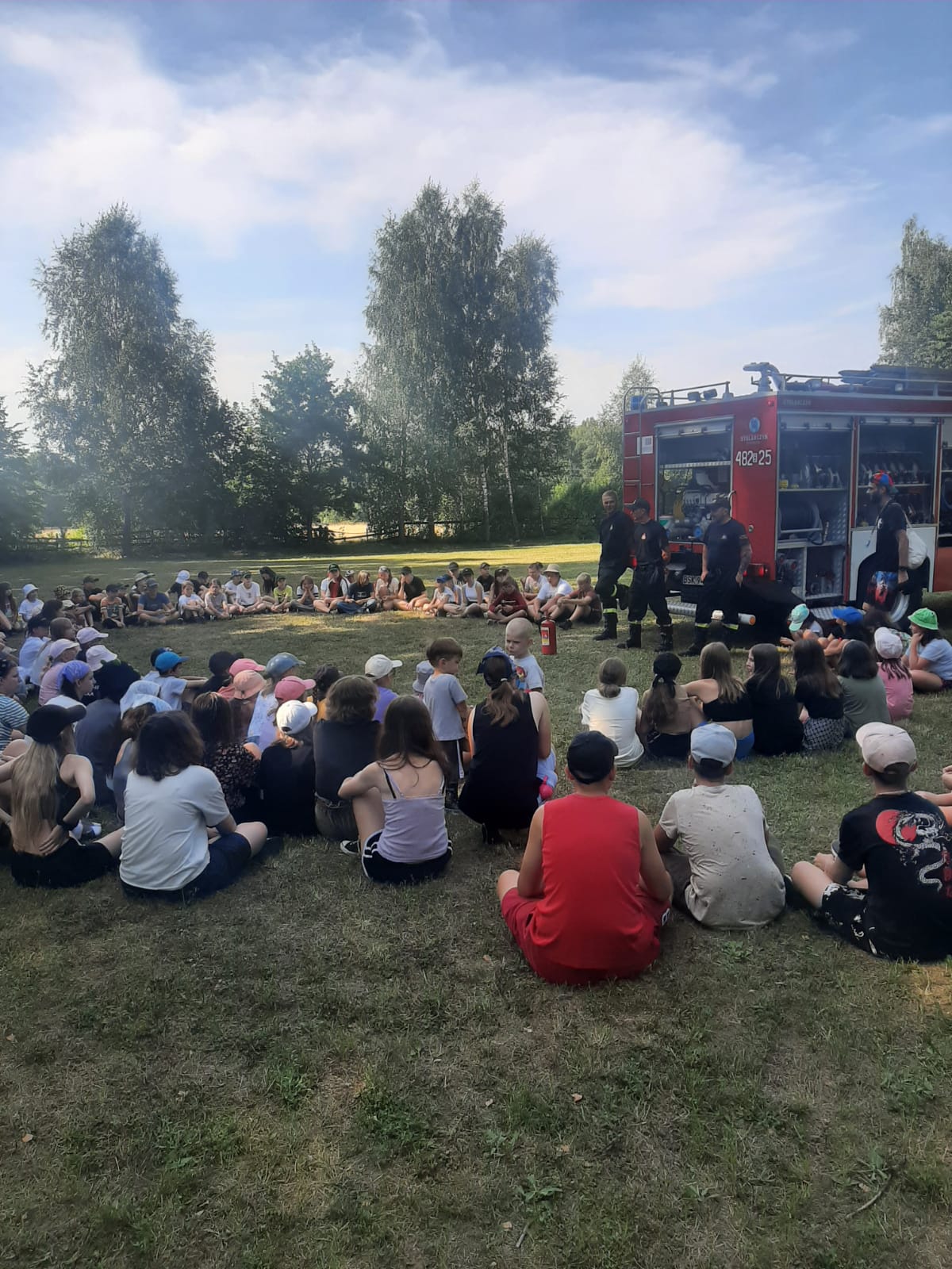 Realizując działania edukacyjne w ramach prewencji społecznej, strażacy PSP przeprowadzili również pogadankę dotyczącą zasad bezpieczeństwa podczas letniego wypoczynku nad wodą i w lesie, omówili zasady postępowania na wypadek powstania pożaru lub innego miejscowego zagrożenia na terenie obozu ze szczególnym uwzględnieniem niebezpiecznych zjawisk atmosferycznych, użycia podręcznego sprzętu gaśniczego i alarmowania służb przy wykorzystaniu numeru alarmowego 112. Zaprezentowano i omówiono również sprzęt znajdujący się na wyposażeniu wozu bojowego Posterunku JRG Sokółka w Dąbrowie Białostockiej.
