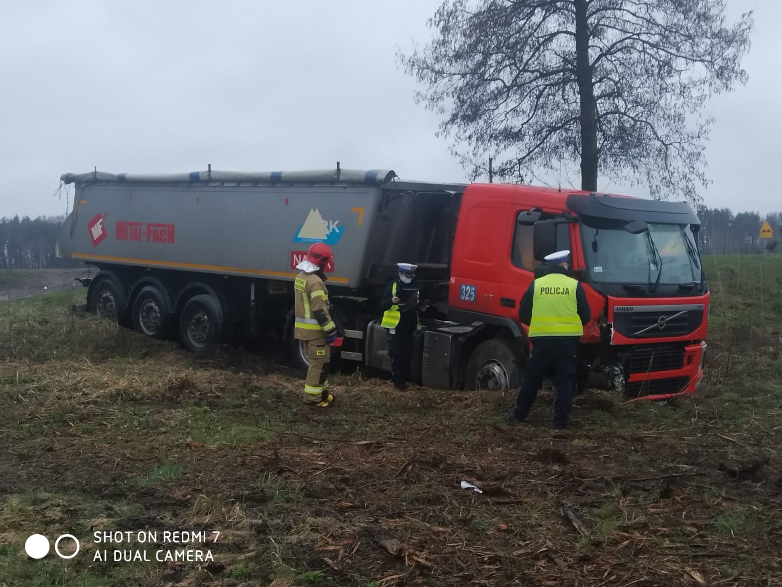Po przybyciu na miejsce zdarzenia pierwszego zastępu (OSP Sztabin) stwierdzono że doszło do zderzenia dwóch pojazdów – samochodu osobowego Opel Astra i samochodu ciężarowego Volvo z naczepą. Samochód osobowy znajdował się na poboczu drogi. Na siedzeniu kierowcy pozostawał nieprzytomny mężczyzna. Samochód ciężarowy znajdował się w na pobliskiej łące. Kierowca ciężarówki wydostał się o własnych siłach z pojazdu.