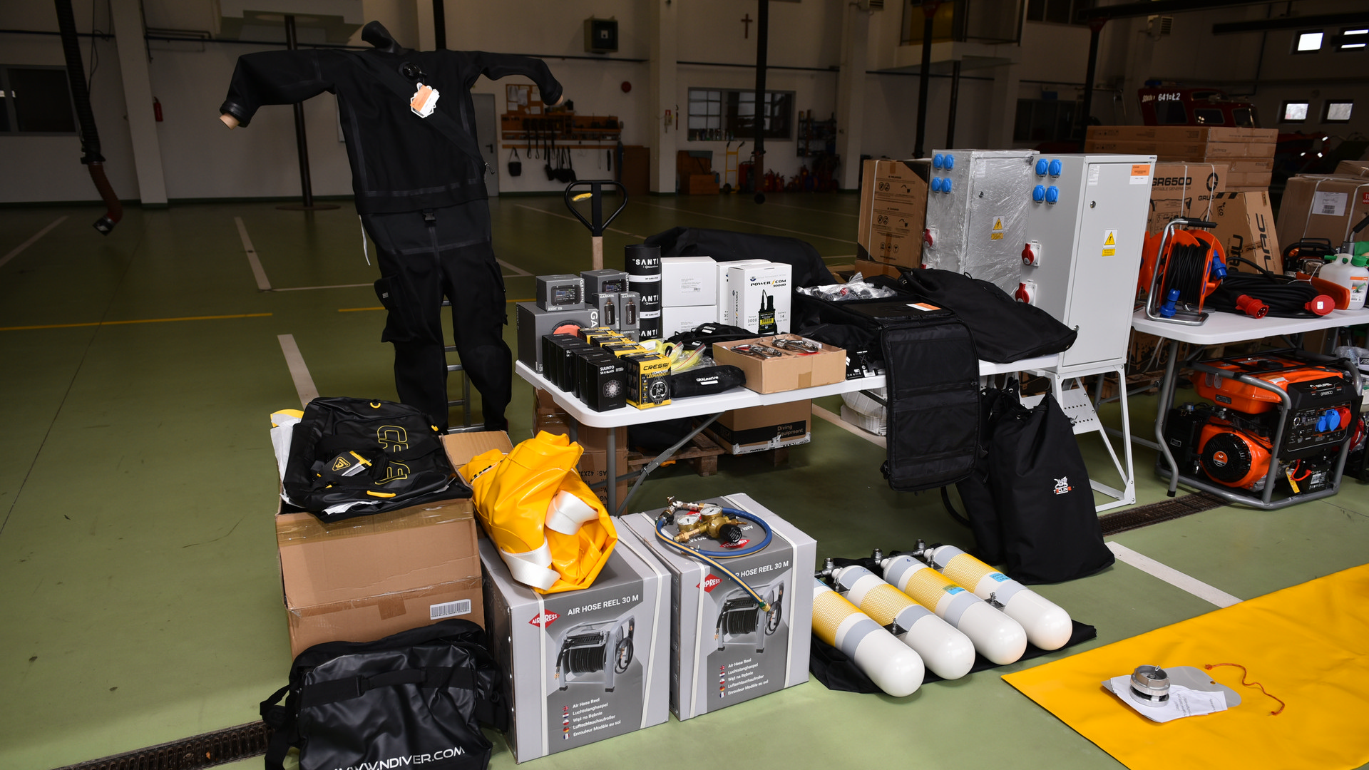(m. in.: skafandrów suchych, zestawu bezprzewodowej łączności podwodnej).,