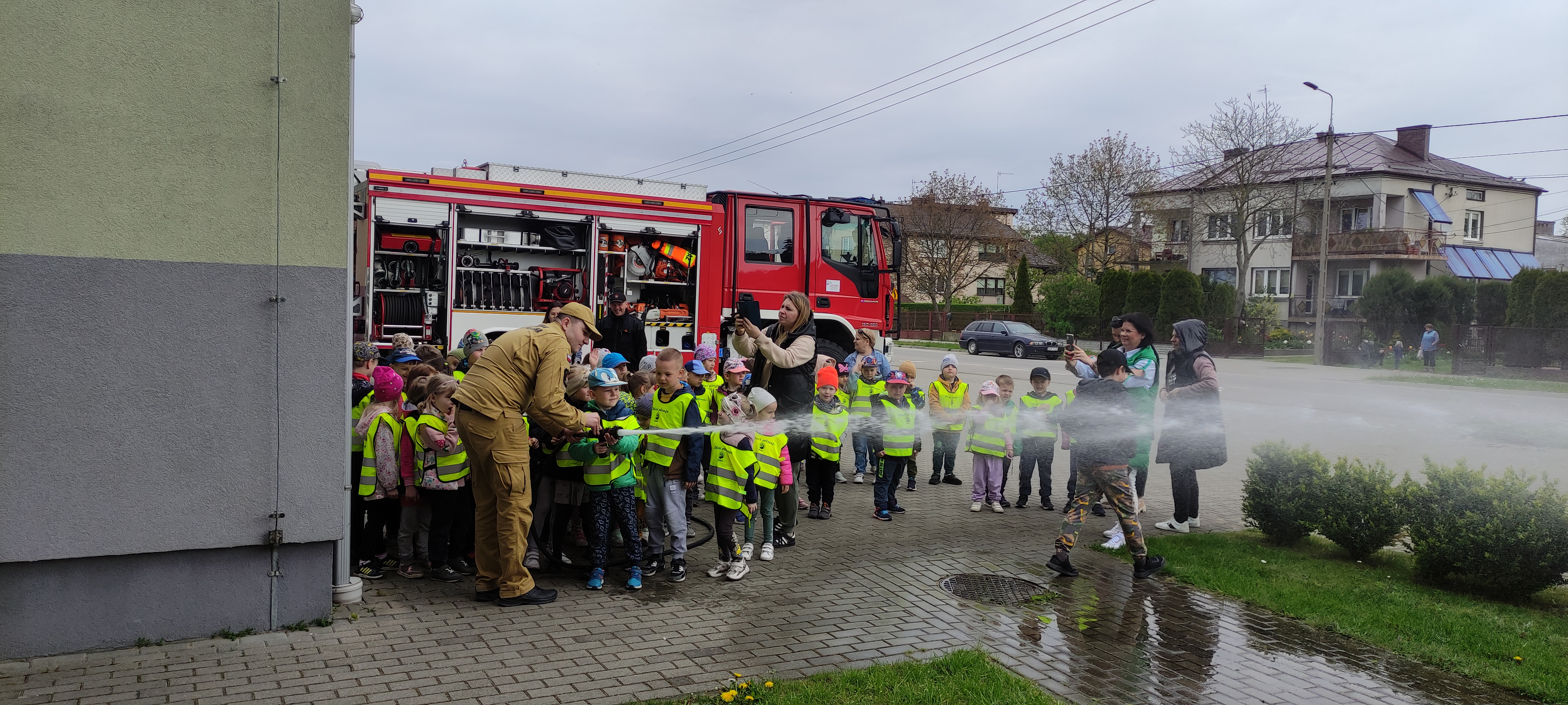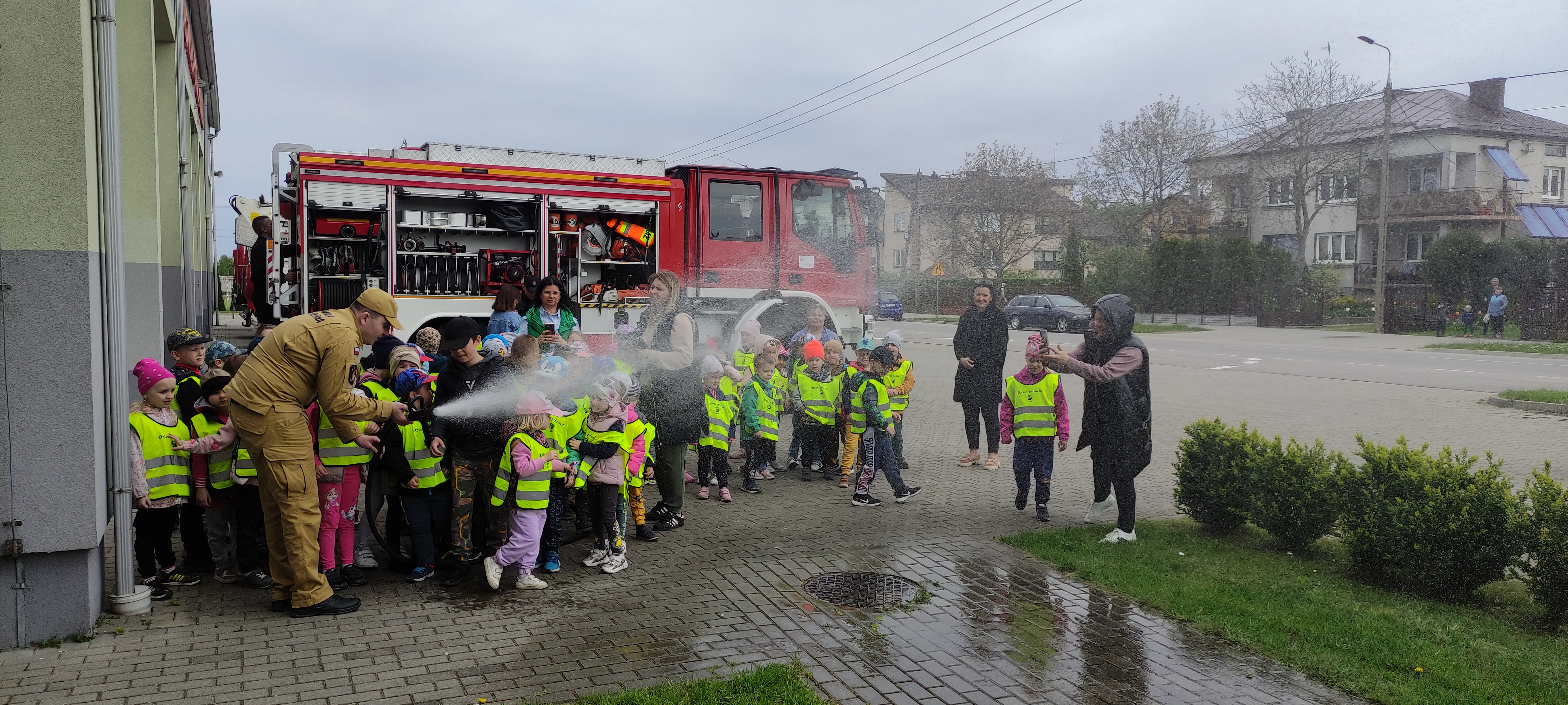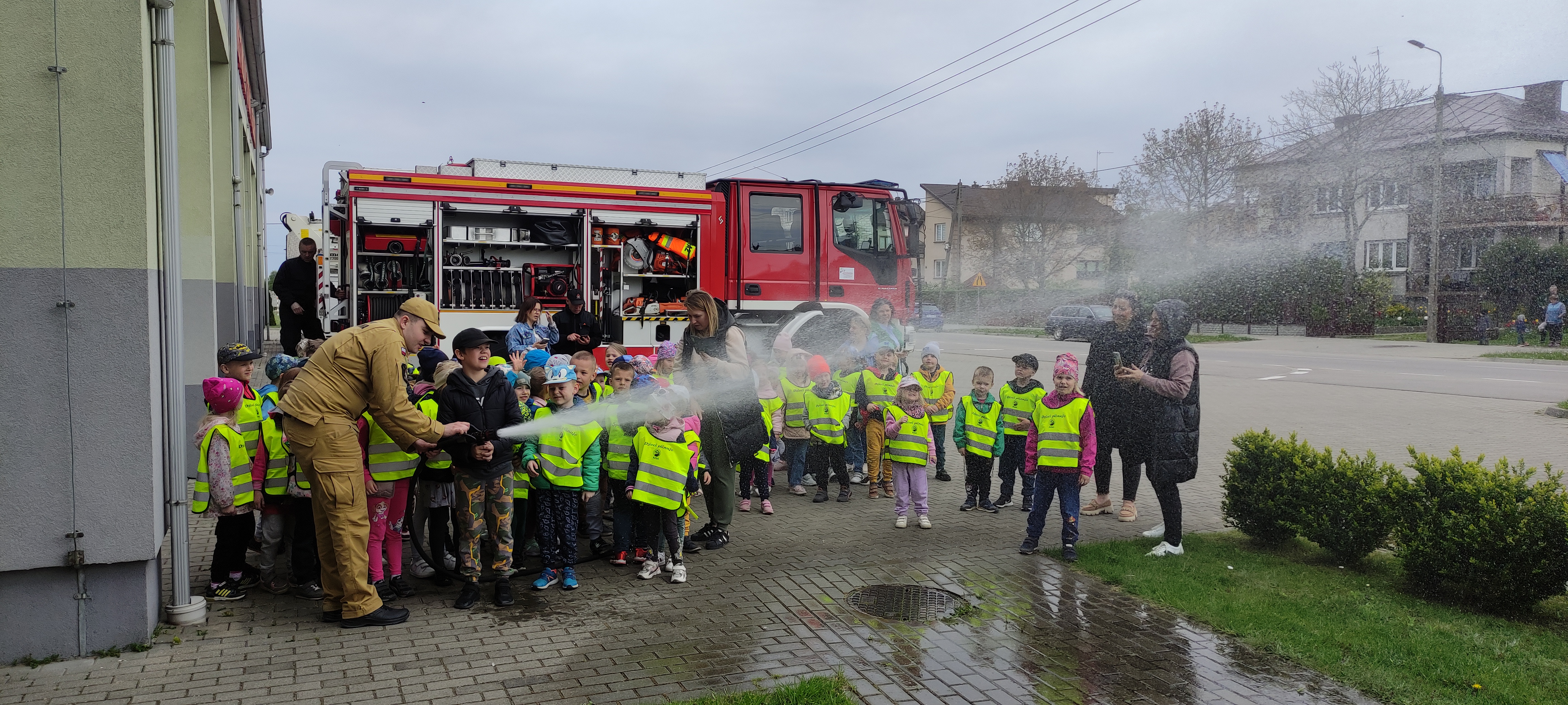W dniu 5.05.2023 r. w ramach akcji „Odwiedź strażnicę i salę edukacyjną typu Ognik” w naszej strażnicy przebywali dzieci i opiekunowie z Miejskiego Przedszkola nr 4 „Leśna Kraina”. Dzieci poznały codzienną służbę strażaka, wyposażenie pojazdów pożarniczych, procedury przyjmowania zgłoszeń o zdarzeniu, zasady alarmowania i postępowania na wypadek pożaru i innego zagrożenia. Uwagę dzieci zwrócono na bezpieczeństwo w szkole i w domu oraz na zachowanie się w sytuacjach zagrożenia, a na zakończenie "polano wodą" ze strażackiego węża.