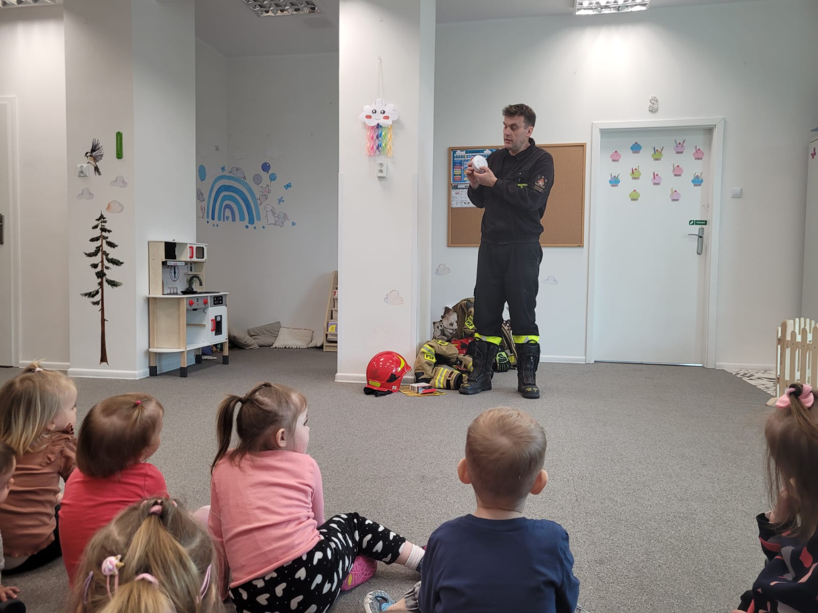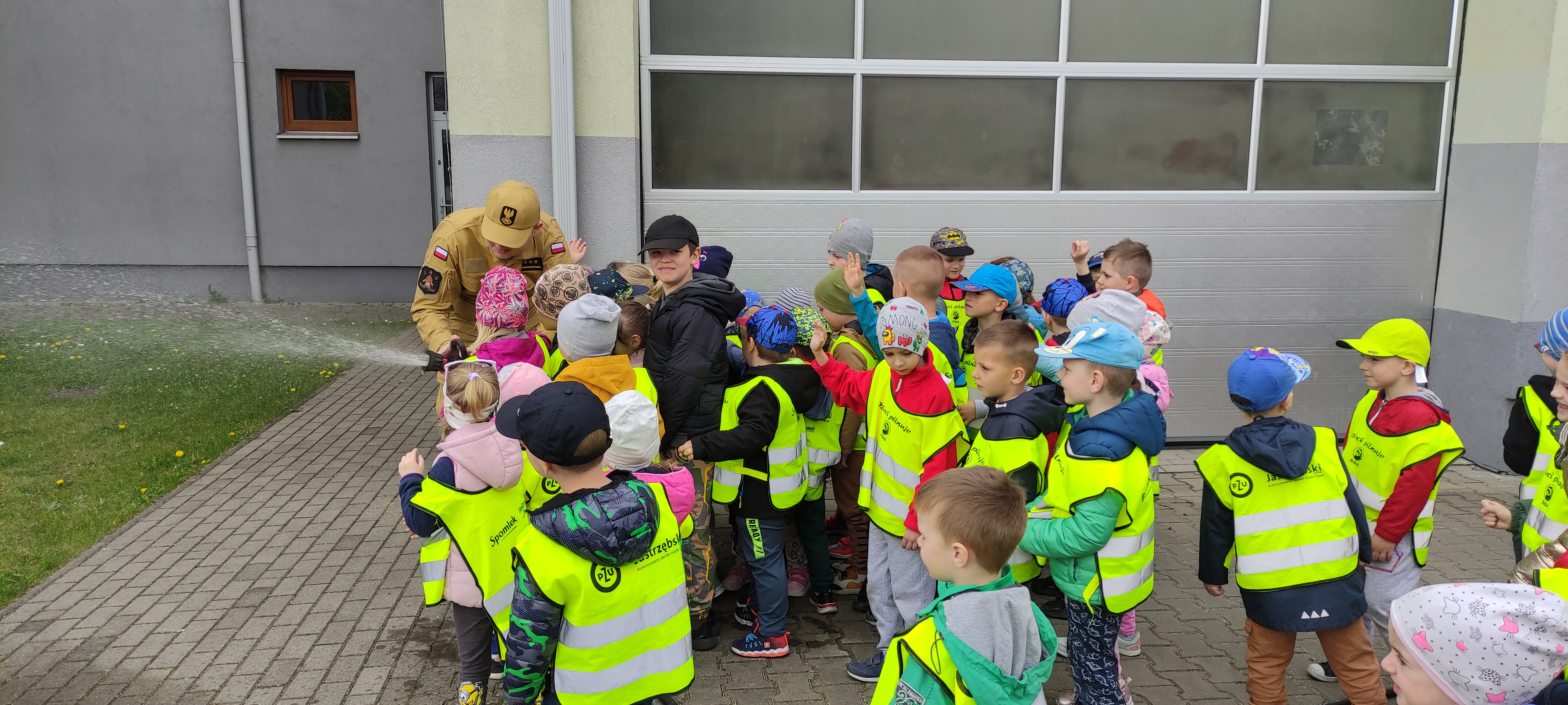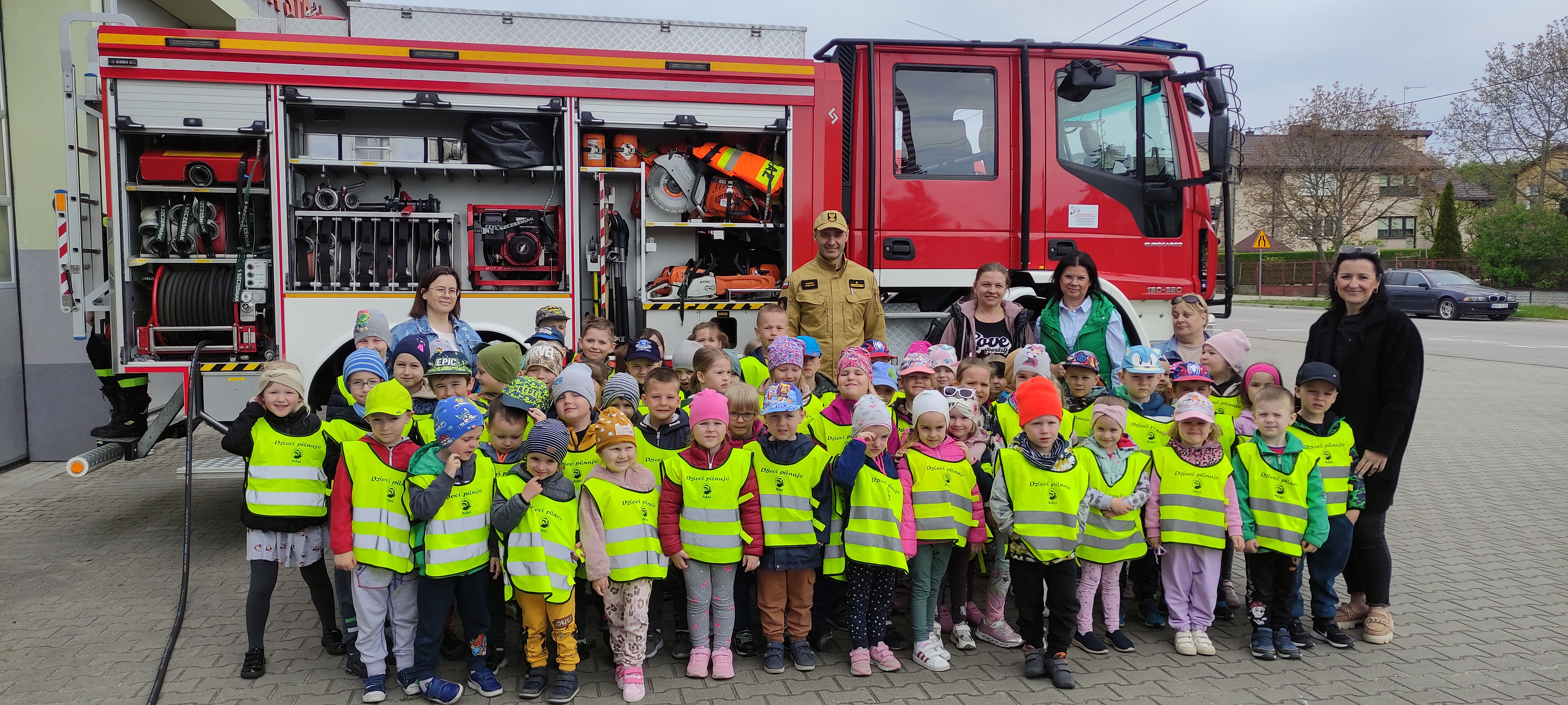W dniu 5.05.2023 r. w ramach akcji „Odwiedź strażnicę i salę edukacyjną typu Ognik” w naszej strażnicy przebywali dzieci i opiekunowie z Miejskiego Przedszkola nr 4 „Leśna Kraina”. Dzieci poznały codzienną służbę strażaka, wyposażenie pojazdów pożarniczych, procedury przyjmowania zgłoszeń o zdarzeniu, zasady alarmowania i postępowania na wypadek pożaru i innego zagrożenia. Uwagę dzieci zwrócono na bezpieczeństwo w szkole i w domu oraz na zachowanie się w sytuacjach zagrożenia, a na zakończenie "polano wodą" ze strażackiego węża.