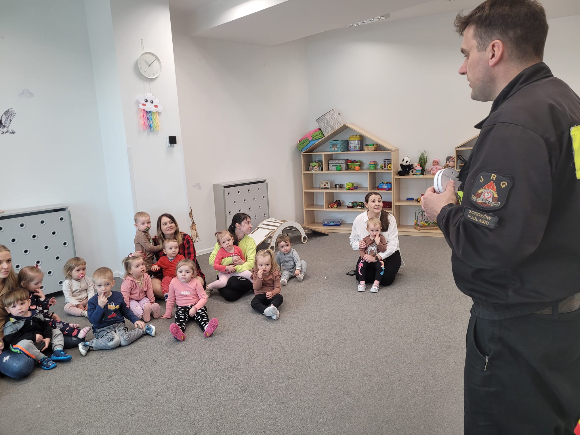 Tego samego dnia strażacy z KP PSP w Sokołowie Podlaskim odwiedzili dzieci z klubu dziecięcego Wioskolandia w Sokołowie Podlaskim. Dzieci miały okazje założyć hełm strażacki, przymierzyć ubranie ochronne, zobaczyć z bliska samochód pożarniczy- mogli poczuć się przez chwilę jak strażacy!