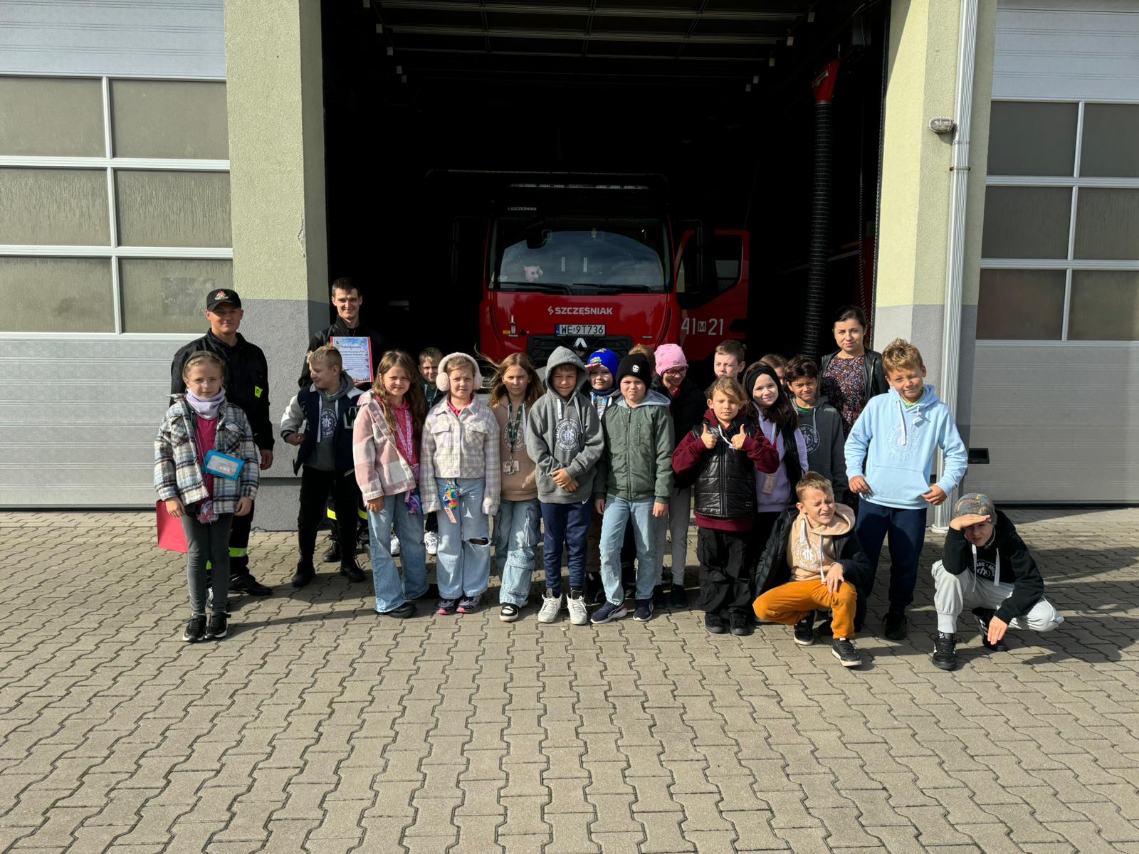 Dzieci z wizytą w sokołowskiej strażnicy PSP
