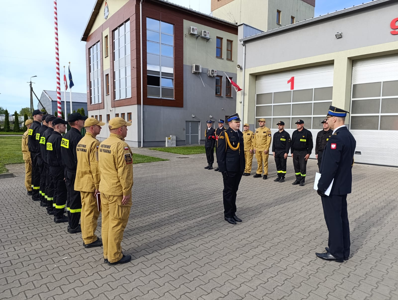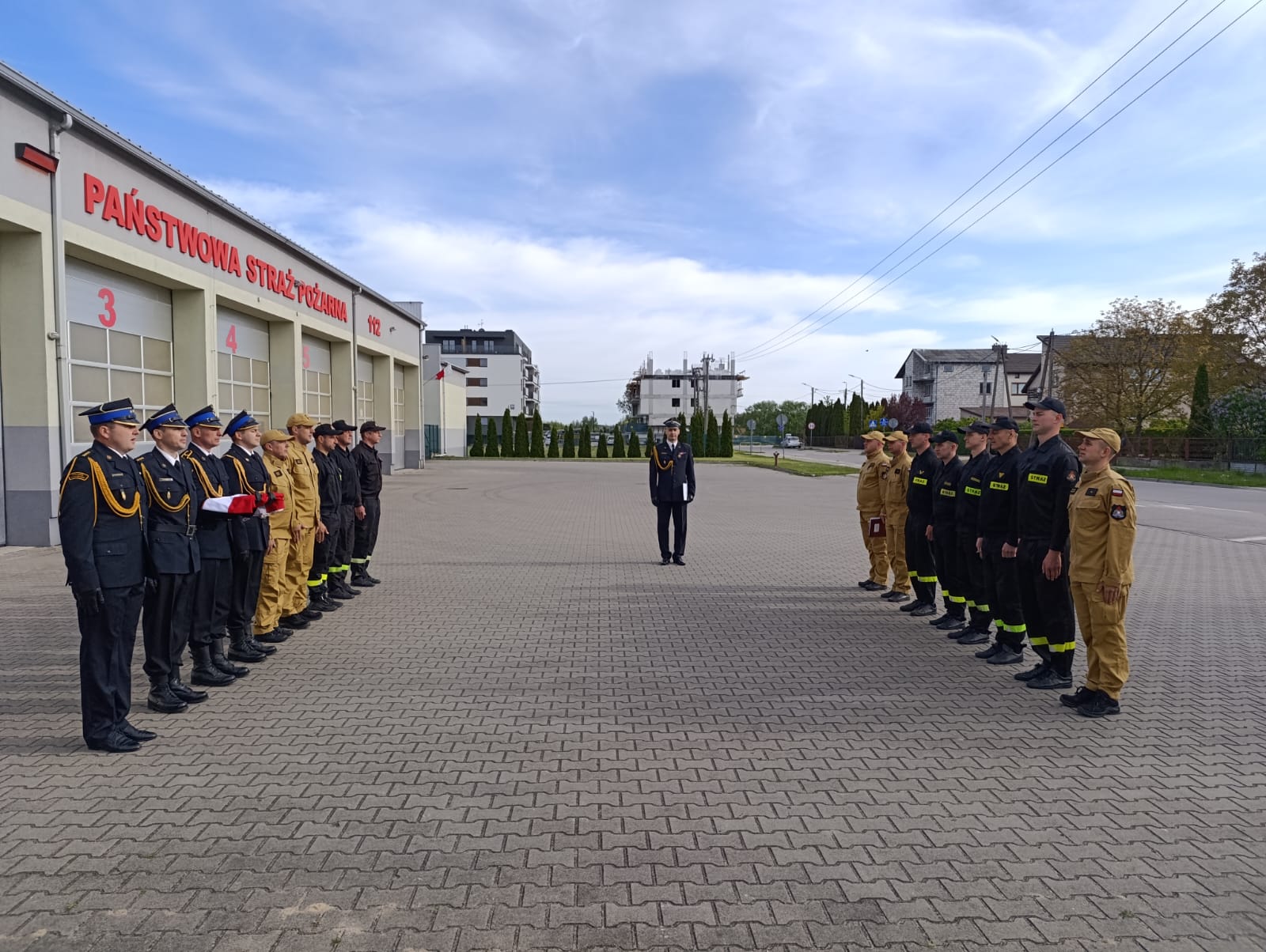 W dniu 2 maja 2025 r. podczas zmiany służby, o godz. 08.00 na placu Komendy Powiatowej Państwowej Straży Pożarnej w Sokołowie Podlaskim miał miejsce uroczysty apel z okazji Dnia Flagi Rzeczypospolitej Polskiej.