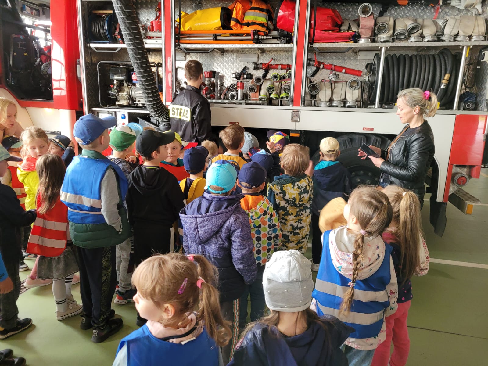 W dniu 16 maja 2023 r. w ramach akcji „Odwiedź strażnicę i salę edukacyjną typu Ognik” w naszej strażnicy przebywali dzieci i opiekunowie z Niepublicznego Przedszkola Sióstr Salezjanek w Sokołowie Podlaskim. Dzieci poznały codzienną służbę strażaka, wyposażenie pojazdów pożarniczych, procedury przyjmowania zgłoszeń o zdarzeniu, zasady alarmowania i postępowania na wypadek pożaru i innego zagrożenia. Uwagę dzieci zwrócono na bezpieczeństwo w szkole, w drodze do szkoły i w domu oraz na zachowanie się w sytuacjach zagrożenia.