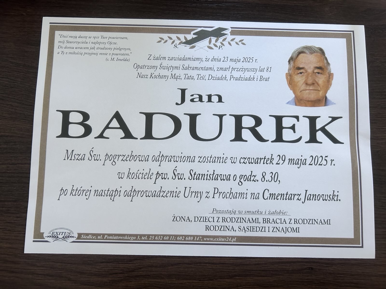 Z przykrością informujemy że 23 maja 2025 r. zmarł st. bryg. w st. spocz. Jan Badurek Komendant Powiatowy w Sokołowie Podlaskim w latach 1968-1983.