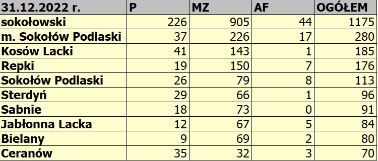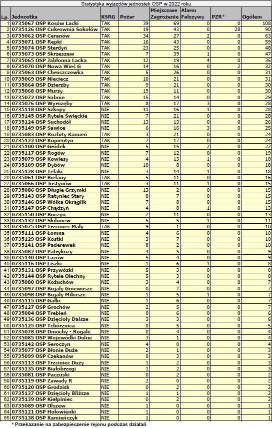 Podsumowanie zdarzeń oraz wyjazdów jednostek OSP w powiecie sokołowskim w 2022 roku.