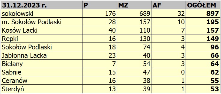 Podsumowanie zdarzeń oraz wyjazdów jednostek OSP w powiecie sokołowskim w 2023 roku.