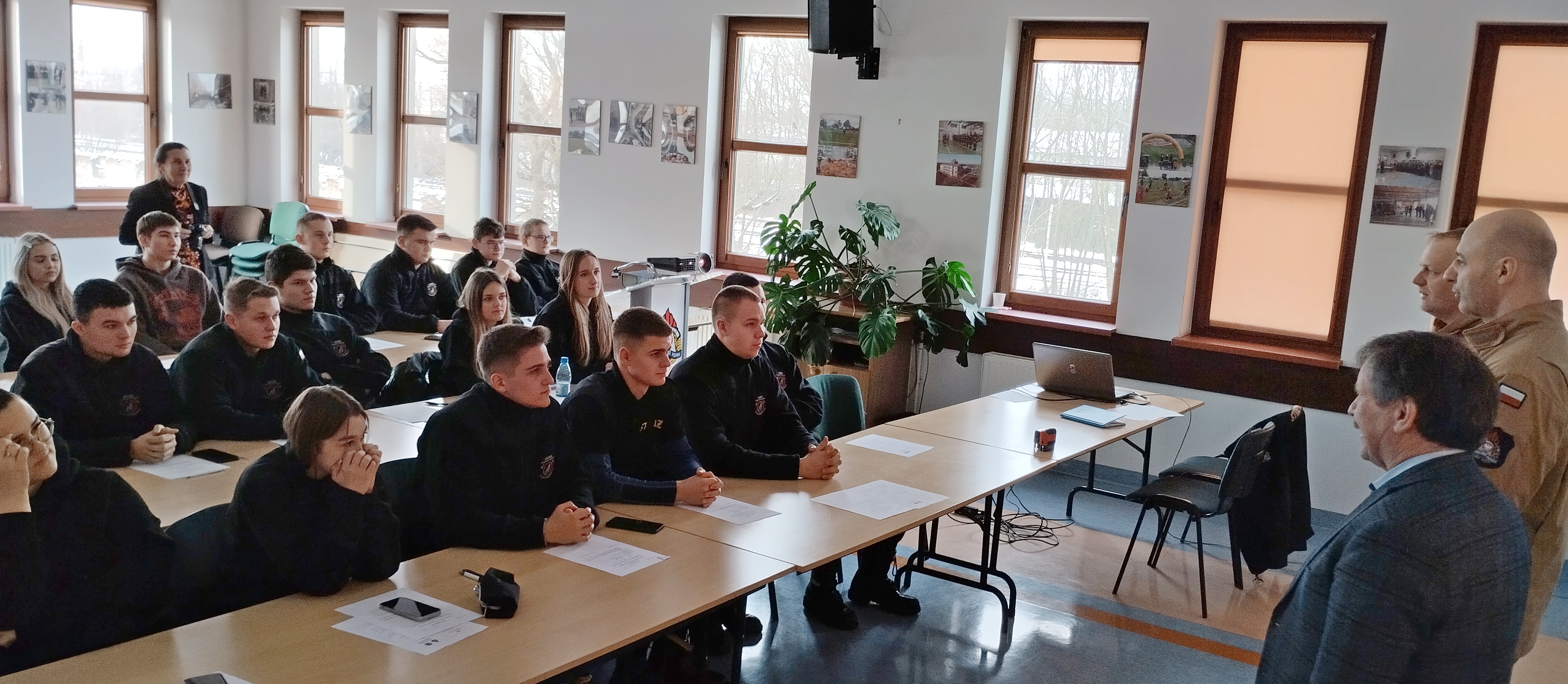 W dniu 14 stycznia 2025 roku w Komendzie Powiatowej Państwowej Straży Pożarnej w Sokołowie Podlaskim miało miejsce rozpoczęcie szkolenia podstawowego strażaków ratowników Ochotniczych Straży Pożarnych dla uczniów z klasy 4 technikum kształcącego w zawodzie technik agrobiznesu - klasy mundurowej strażackiej. Uroczystego otwarcia spotkania dokonali wspólnie Komendant Powiatowy bryg. Marcin Tomczuk oraz Wicedyrektor Zespołu Szkół Centrum Kształcenia Rolniczego im. Władysława Stanisława Reymonta w Sokołowie Podlaskim Kazimierz Tarkowski. W trakcie spotkania prowadzący szkolenie mł. kpt. Robert Golatowski przekazał szczegółowe informacje odnośnie rozpoczynającego się szkolenia. Uczestnicy szkolenia do 24 czerwca 2025 roku będą zdobywać wiedzę teoretyczną i praktyczną potrzebną do ukończenia szkolenia zakończonego egzaminem przed komisją powołaną przez Komendanta Powiatowego PSP. Po zaliczeniu egzaminu uczestnik kursu otrzymuje zaświadczenie, które uprawnia do udziału w akcjach ratowniczych w jednostkach OSP.
